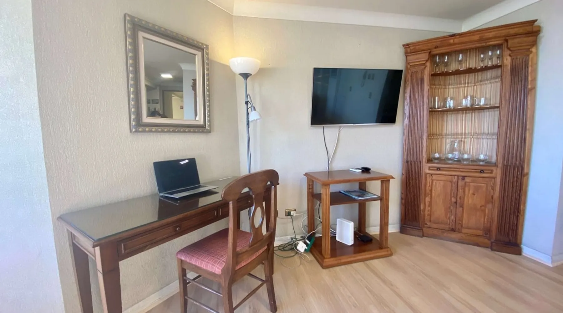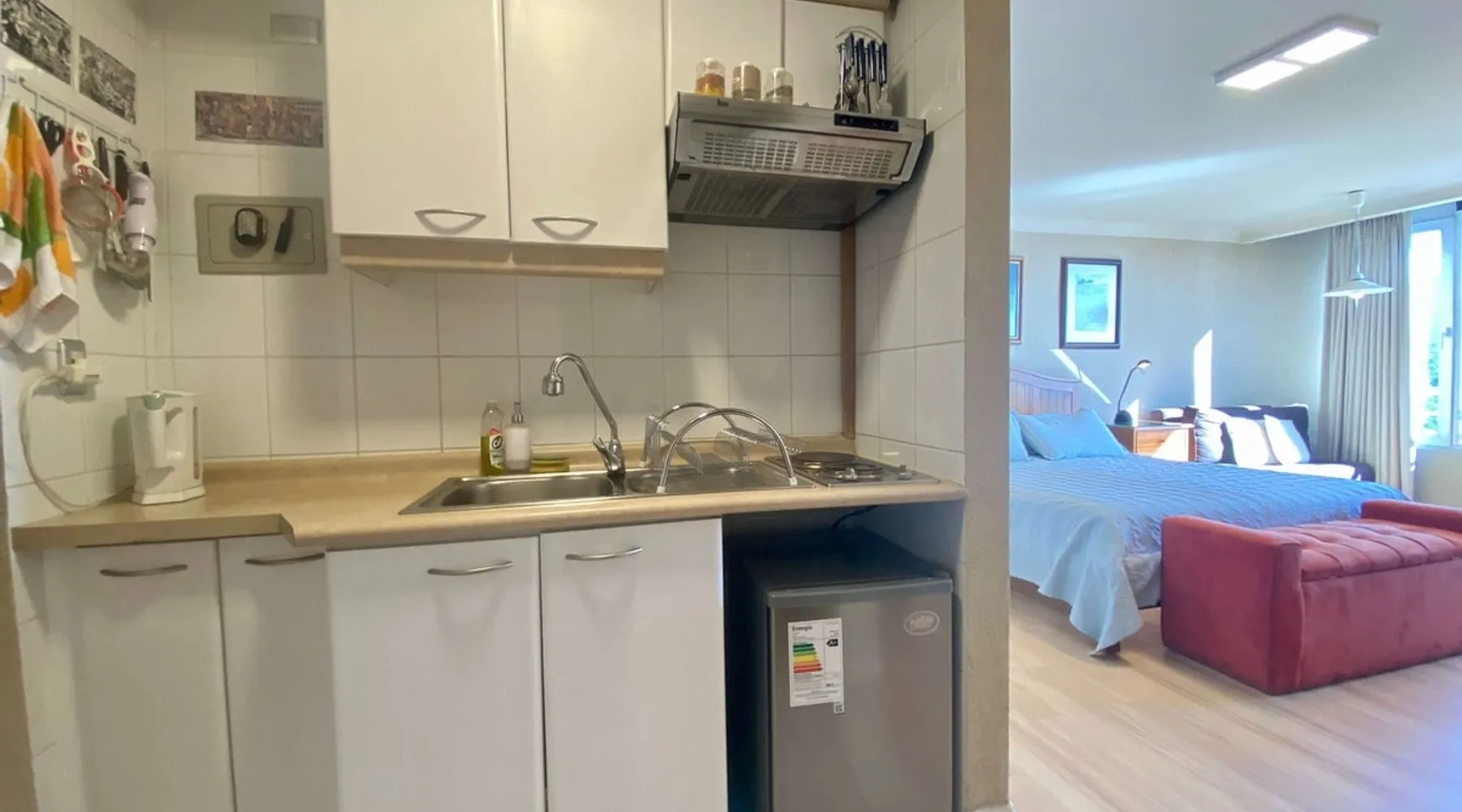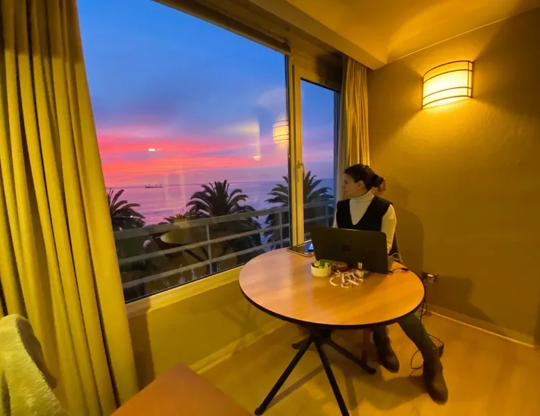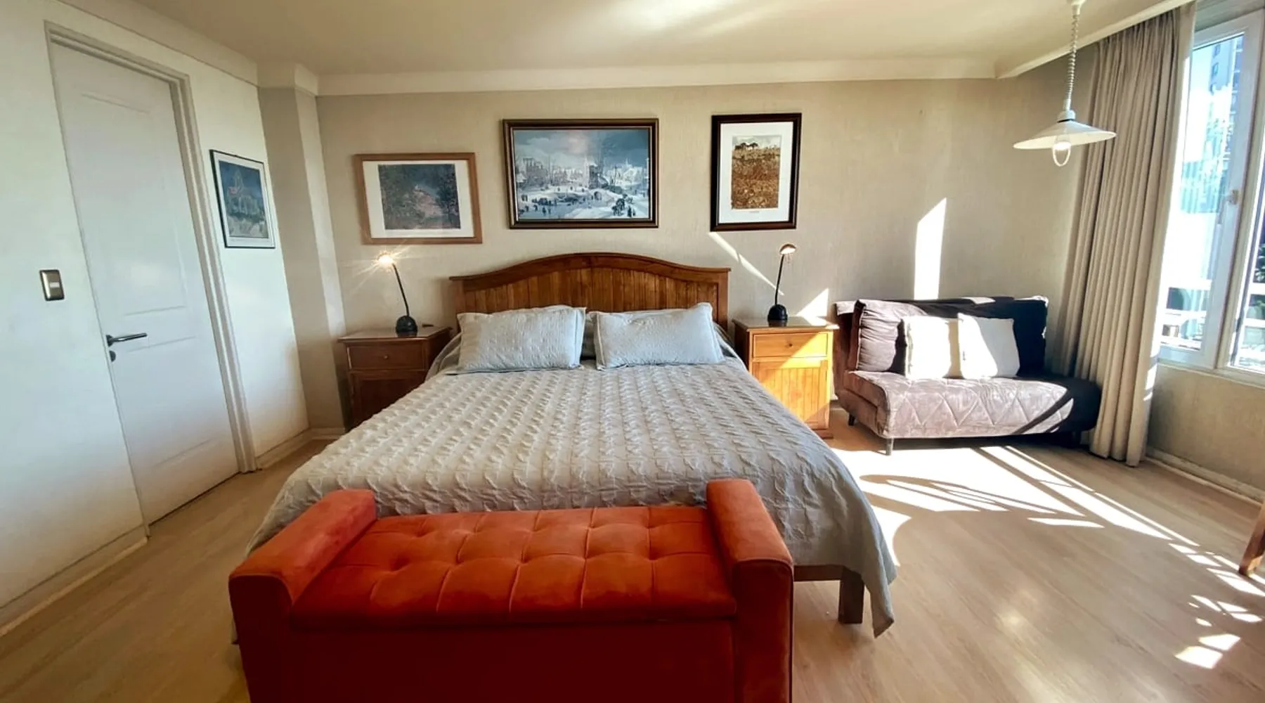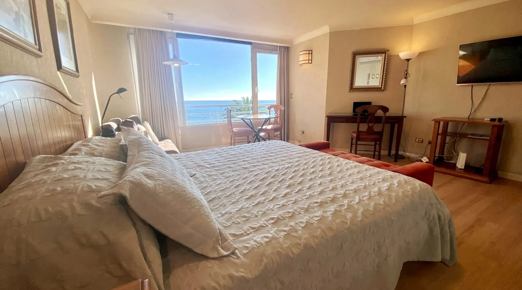 ⛵ Enjoy a unique stay in our bright studio with a stunning ocean view. Located in Cerro Castillo, minutes from the center of Viña del Mar and the beach. Perfect for taking a break and also for working. 🖥️ Ideal for digital nomads, couples looking for a getaway, and small vacation families. The space 🟢 King bed 🟢 Sofa bed 🟢 Full bathroom 🟢 Fully Equipped Kitchen 🟢 Desk 🟢 Wi-Fi (Fiber Optic 400 Mbps) 🟢 Free parking, 1 reserved space 🟢 Laundry in the building (additional value) 🟢 Swimming pool and gymnasium shared Guest access 🔑 The property features a smart lock, 24/7 access Other things to note ♻️ We use eco-friendly, biodegradable and antibacterial cleaning products. 🧡 We take care of our home, the environment and the community. 🤗 Thank you for being a respectful guest! 📅 Book now and live an unforgettable experience in Viña del Mar!