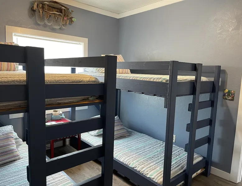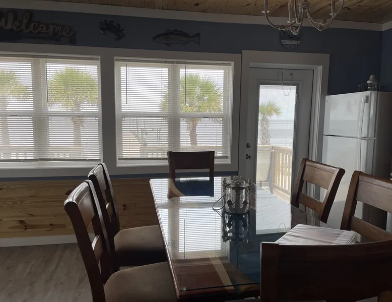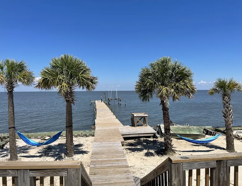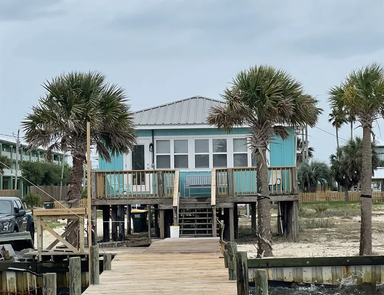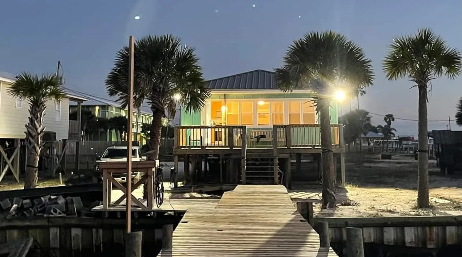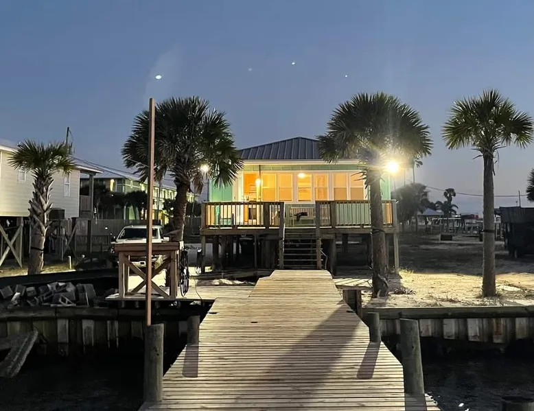 Original cabin was built in 1956, it is one of the older homes in the area. It has been updated with custom cabinets and other upgrades. In 2020 Hurricaine Sally did substancial damage to the home. We have updated and repaired but attempted to keep some of the old charm. Located on Mobile Bay with 150' private pier updated in 2022.Catch blue crab, speckled trout, red fish . Dolphins aften swim and put on spectaculur shows. The sunrises and sunsets are exceptional. AGE TO RENT IS 25 The space Original cabin was built in 1956 so it is one of the older homes in the area. It has been updated over the years with custom cabinets with a nautical style. In 2020 Hurricaine Sally did substancial damage to the home. We have updated and repaired but attempted to keep some of the old charm. Cabin is located directly on Mobile Bay. We have 150' pier was updated in 2022. You can catch blue crab, speckled trout , red fish and many others. Dolphins aften swim and put on spectaculur shows. The sunrises and sunsets are exceptional. Cabin is in a quiet, secluded area in Fort Morgan Alabama. Water-based activities dominate in a small, unincorporated gulf-front community of Gulf Shores on the southern edge of Alabama No busy commercial congestion or large condominium complexes. Relax on the deck with excellent views of Mobile bay . Spend the day just a short drive away on the uncrowded white, sandy beach. Find shells, watch for dolphins and swim in the clear blue waters of the gulf.Fort Morgan and its immediate vicinity offer many inshore or surf fishing spots. Weather permitting, you can launch a kayak at the Fort Morgan Public Boat Launch to explore the Gulf of Mexico’s near-shore waters It's a short drive to several great golf courses, or shopping in Gulf Shores and the Foley (Tanger) outlet centers. At the west end of the island peninsula are the remains of Fort Morgan. One of the two forts that protected mobile during the battle of mobile bay, the fort dates from 1812. After touring the fort, there are opportunities to stroll the white beaches, swim, fish or crab, shell hunt, and sunbathe. This spot is a favorite with birdwatchers, who have been known to make rare sightings of migratory birds. A marina, golf course, and extra lodging are all nearby. Only 20 minutes from Gulf Shores, AL MINIMUM AGE TO RENT IS 25 ( NO EXCEPTIONS) 5 DAY MINUMUM (IF YOU ARE WANTING LESS THAN MINUMUM DAYS REQUIRED PLEASE SEND MESSAGE TO REQUEST I CAN MAKE EXCEPTIONS FOR LAST MINUTE BOOKINGS) PLEASE REMEMBER TO CHECK IN YOUR SPAM BOX FOR E-MAILS FROM US OUR EMAIL IS MSERENTALS. THANK YOU FOR YOUR INTEREST IN OUR VACATION HOMEa. Guest access Effortless check-in with keyless entry. We'll send you the door code by email before your arrival, once you've completed the full payment. On-site parking is free, with space for up to 3 vehicles in the driveway. There's also room to park a boat. Please note the home has one flight of stairs to enter and exit and both the front and back of the home. Other things to note •2 Bedrooms- 1queen bed, 2 bunk bed •Short drive to the Beach, •Great Views of Mobile Bay •Wi-Fi, High Speed Wireless Internet •Fully Equipped Kitchen with Washer/Dryer • Smart TV's •Carpet free house