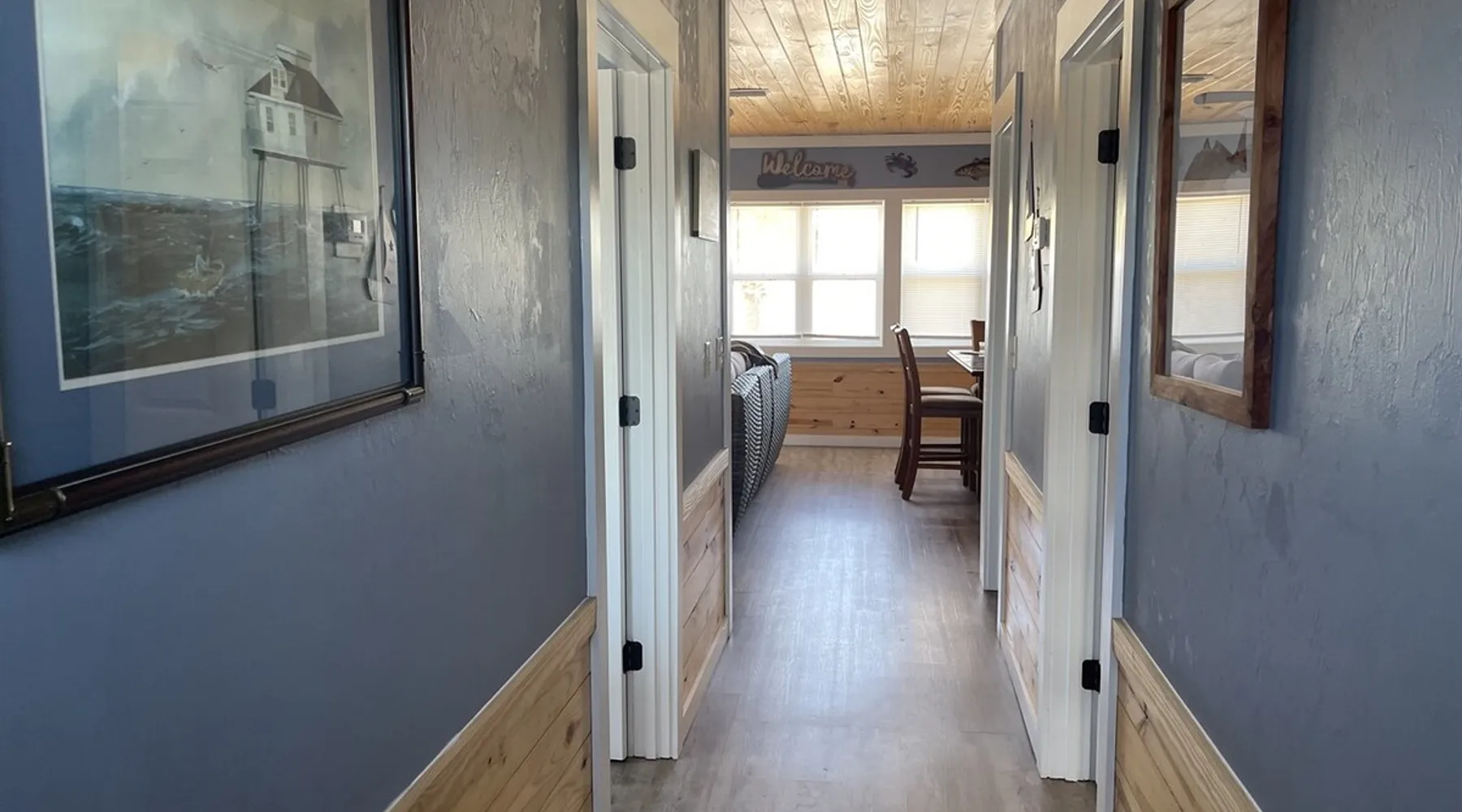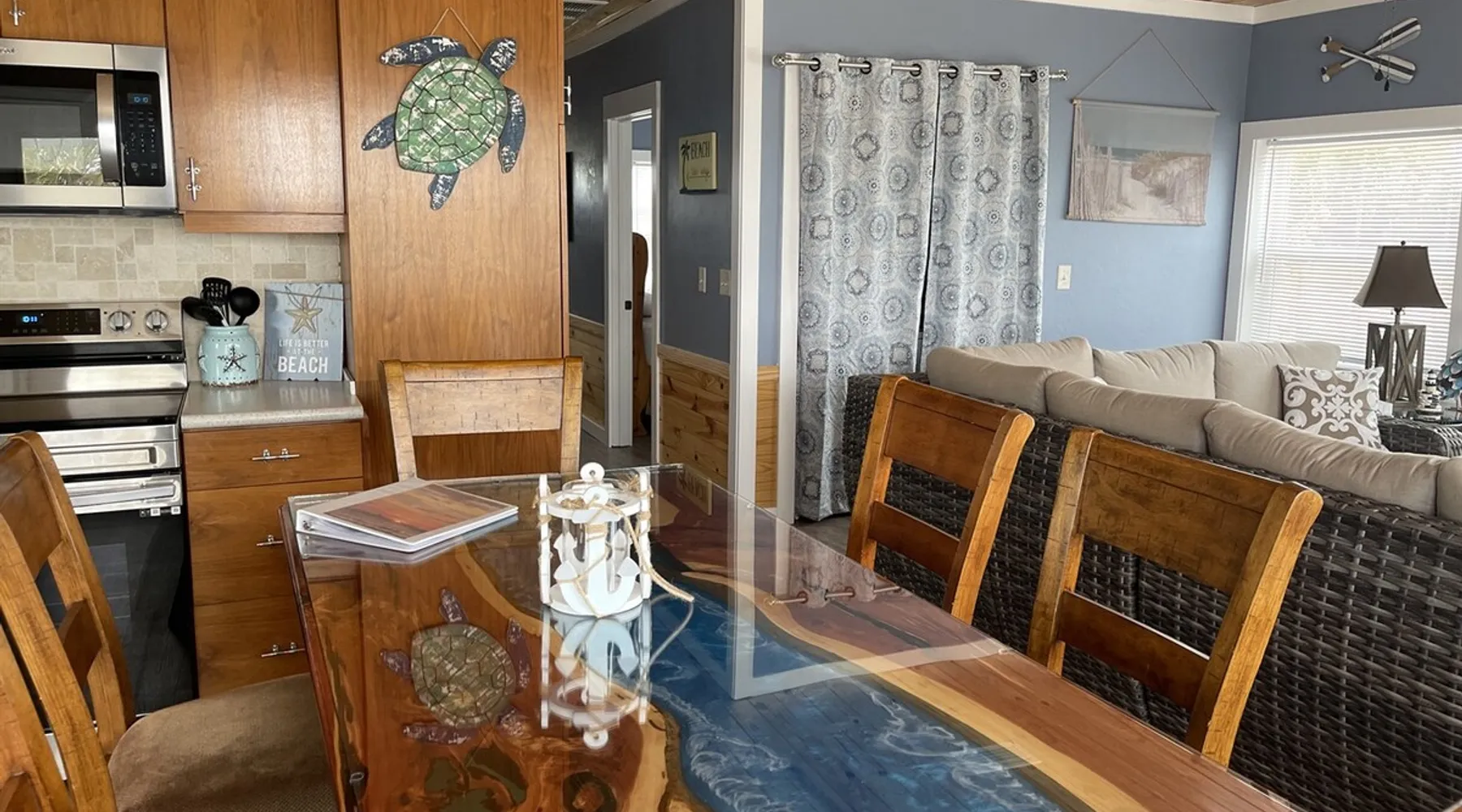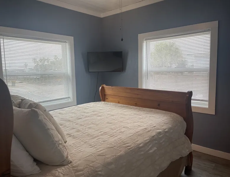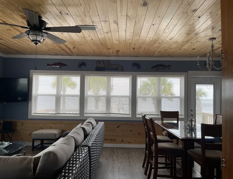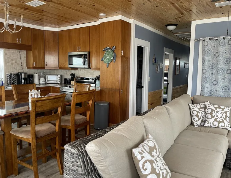 Original cabin was built in 1956, it is one of the older homes in the area. It has been updated with custom cabinets and other upgrades. In 2020 Hurricaine Sally did substancial damage to the home. We have updated and repaired but attempted to keep some of the old charm. Located on Mobile Bay with 150' private pier updated in 2022.Catch blue crab, speckled trout, red fish . Dolphins aften swim and put on spectaculur shows. The sunrises and sunsets are exceptional. AGE TO RENT IS 25 The space Original cabin was built in 1956 so it is one of the older homes in the area. It has been updated over the years with custom cabinets with a nautical style. In 2020 Hurricaine Sally did substancial damage to the home. We have updated and repaired but attempted to keep some of the old charm. Cabin is located directly on Mobile Bay. We have 150' pier was updated in 2022. You can catch blue crab, speckled trout , red fish and many others. Dolphins aften swim and put on spectaculur shows. The sunrises and sunsets are exceptional. Cabin is in a quiet, secluded area in Fort Morgan Alabama. Water-based activities dominate in a small, unincorporated gulf-front community of Gulf Shores on the southern edge of Alabama No busy commercial congestion or large condominium complexes. Relax on the deck with excellent views of Mobile bay . Spend the day just a short drive away on the uncrowded white, sandy beach. Find shells, watch for dolphins and swim in the clear blue waters of the gulf.Fort Morgan and its immediate vicinity offer many inshore or surf fishing spots. Weather permitting, you can launch a kayak at the Fort Morgan Public Boat Launch to explore the Gulf of Mexico’s near-shore waters It's a short drive to several great golf courses, or shopping in Gulf Shores and the Foley (Tanger) outlet centers. At the west end of the island peninsula are the remains of Fort Morgan. One of the two forts that protected mobile during the battle of mobile bay, the fort dates from 1812. After touring the fort, there are opportunities to stroll the white beaches, swim, fish or crab, shell hunt, and sunbathe. This spot is a favorite with birdwatchers, who have been known to make rare sightings of migratory birds. A marina, golf course, and extra lodging are all nearby. Only 20 minutes from Gulf Shores, AL MINIMUM AGE TO RENT IS 25 ( NO EXCEPTIONS) 5 DAY MINUMUM (IF YOU ARE WANTING LESS THAN MINUMUM DAYS REQUIRED PLEASE SEND MESSAGE TO REQUEST I CAN MAKE EXCEPTIONS FOR LAST MINUTE BOOKINGS) PLEASE REMEMBER TO CHECK IN YOUR SPAM BOX FOR E-MAILS FROM US OUR EMAIL IS MSERENTALS. THANK YOU FOR YOUR INTEREST IN OUR VACATION HOMEa. Guest access Effortless check-in with keyless entry. We'll send you the door code by email before your arrival, once you've completed the full payment. On-site parking is free, with space for up to 3 vehicles in the driveway. There's also room to park a boat. Please note the home has one flight of stairs to enter and exit and both the front and back of the home. Other things to note •2 Bedrooms- 1queen bed, 2 bunk bed •Short drive to the Beach, •Great Views of Mobile Bay •Wi-Fi, High Speed Wireless Internet •Fully Equipped Kitchen with Washer/Dryer • Smart TV's •Carpet free house