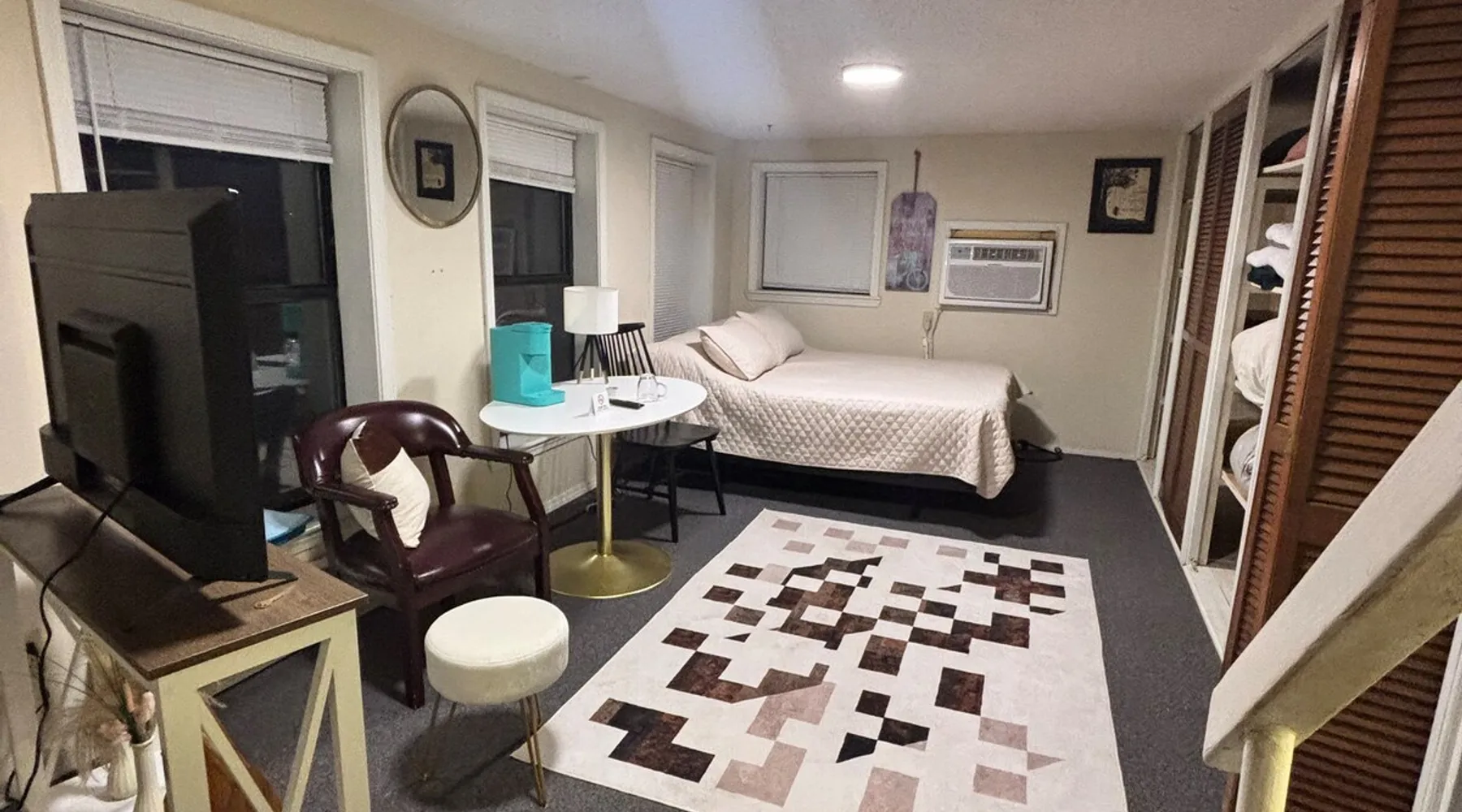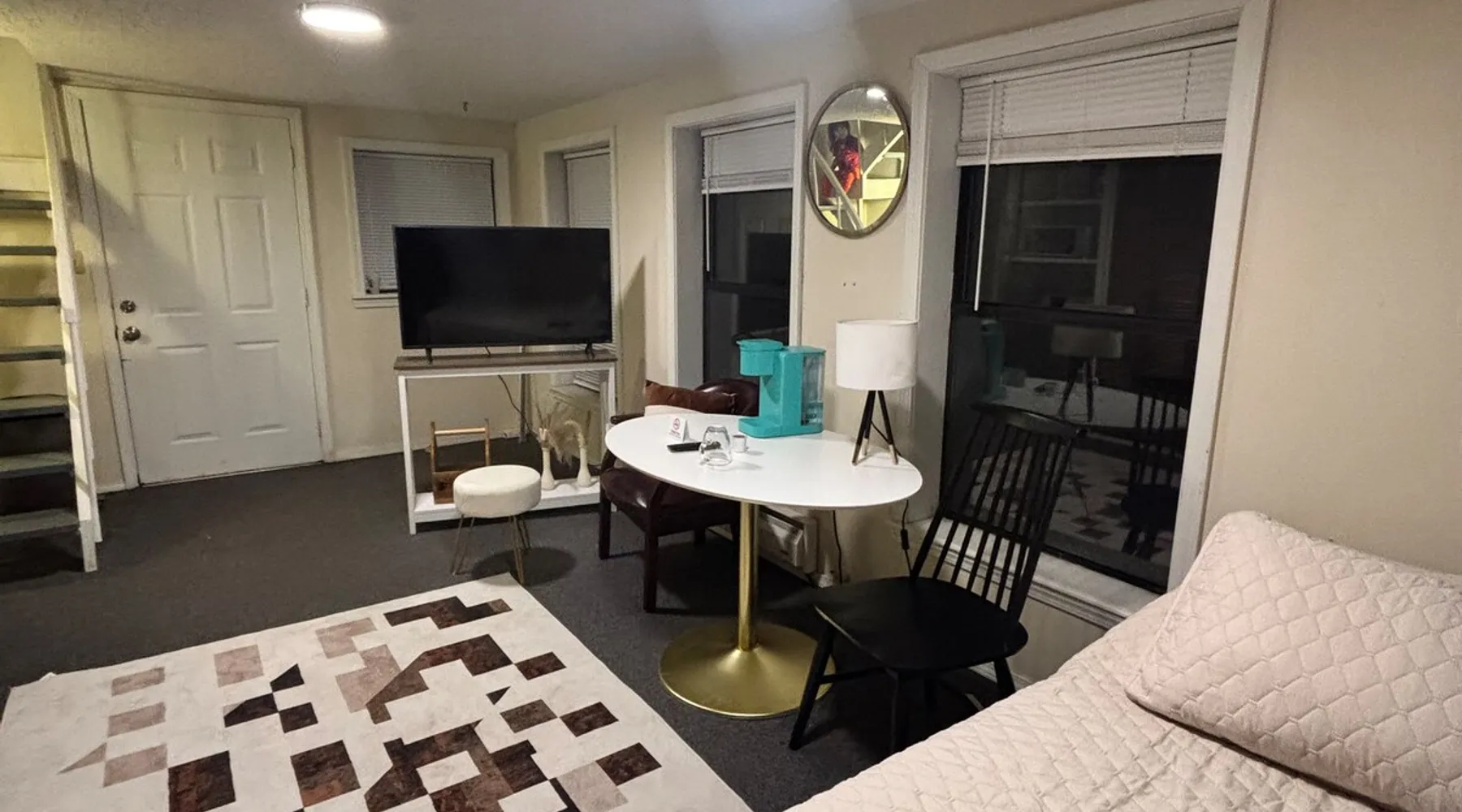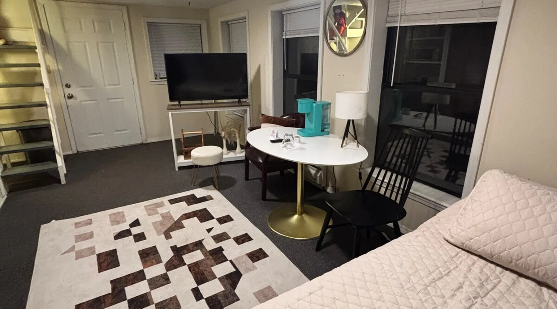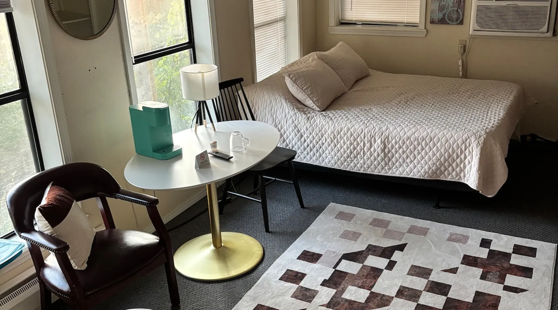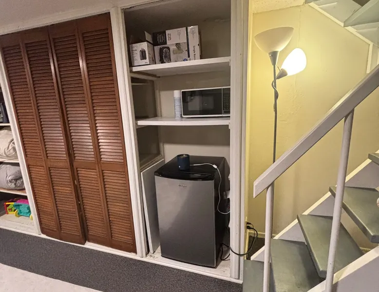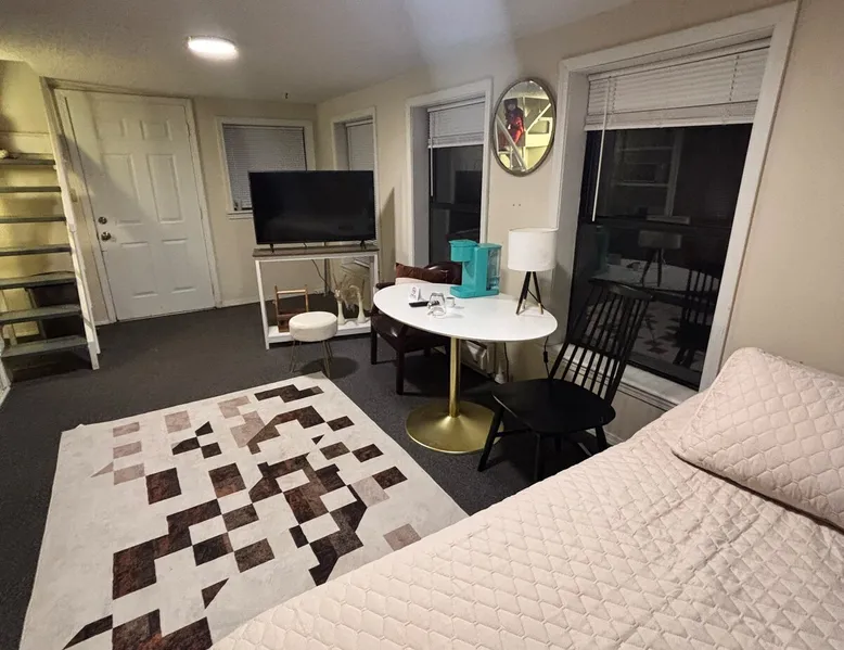 This room is an added basement apartment. The bathroom is upstairs by the kitchen. There is a small staircase leading up to the main level. Guests are welcome to use the living room, laundry room, and kitchen. This room is a basic room which is why the nightly rate is more affordable. The space The space has a nice view off the south of Crow Mountain. It is a very basic space with access to other amenities in the house. Guest access Kitchen, laundry room, living room area, bathroom. During your stay I’m usually available and willing to hangout. Other things to note The bathroom is up a small staircase.