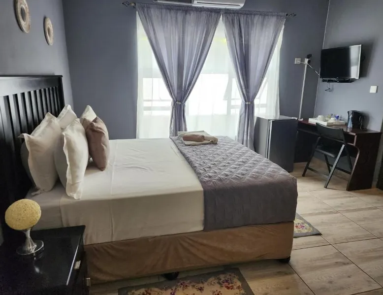 Comfortable Accommodations: Minnestay Guest House in Palapye offers comfortable rooms with air-conditioning, private bathrooms, and modern amenities. Each room includes a work desk, TV, and free WiFi, ensuring a pleasant stay. Outdoor Leisure: Guests can relax in the garden, terrace, or year-round outdoor swimming pool. The property features a lounge, outdoor dining area, and free on-site private parking, providing ample space for leisure and convenience. Dining Experience: A full English or Irish breakfast is served daily, including warm dishes, juice, pancakes, cheese, and fruits. Additional services include a paid shuttle, room service, and menus for special diets, catering to diverse guest needs. Featuring free toiletries, this double room includes a private bathroom with a bath. This air-conditioned double room comes with a dining area, a flat-screen TV with streaming services a washing machine and a terrace. The unit has 1 bed.