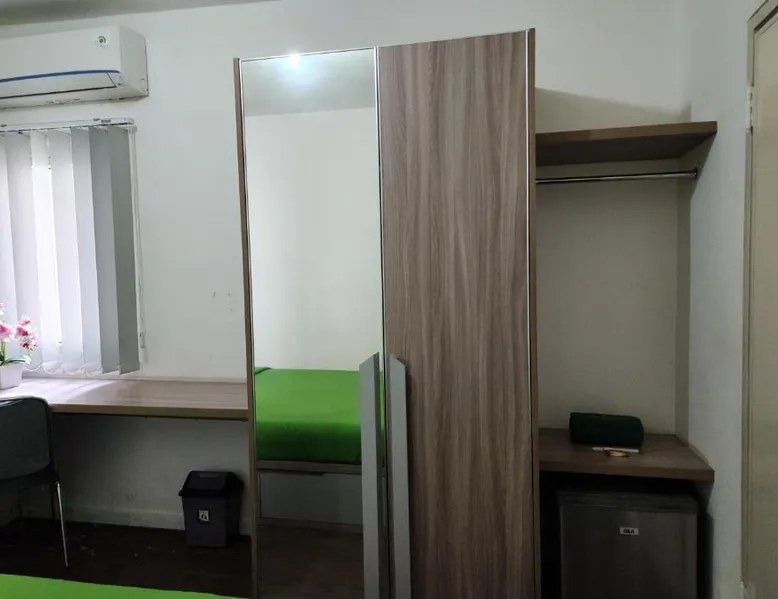 Comfortable Accommodations: Barata Hotel Near Bandara Soekarno Hatta in Kota Tangerang offers a one-bedroom apartment with a kitchenette, work desk, air-conditioning, free toiletries, shower, and TV. Essential Facilities: Guests enjoy free WiFi, a 24-hour front desk, full-day security, and luggage storage. Paid on-site private parking is available. Convenient Location: Located 1.9 mi from Soekarno-Hatta International Airport, the apartment is near attractions such as Indonesia Convention Exhibition (15 mi), Museum Bank Indonesia (16 mi), and Central Park Mall (17 mi). The apartment features 1 bedroom and 1 bathroom with a shower and free toiletries. The apartment's kitchenette is available for cooking and storing food. This apartment offers air conditioning and a flat-screen TV. The unit offers 1 bed.