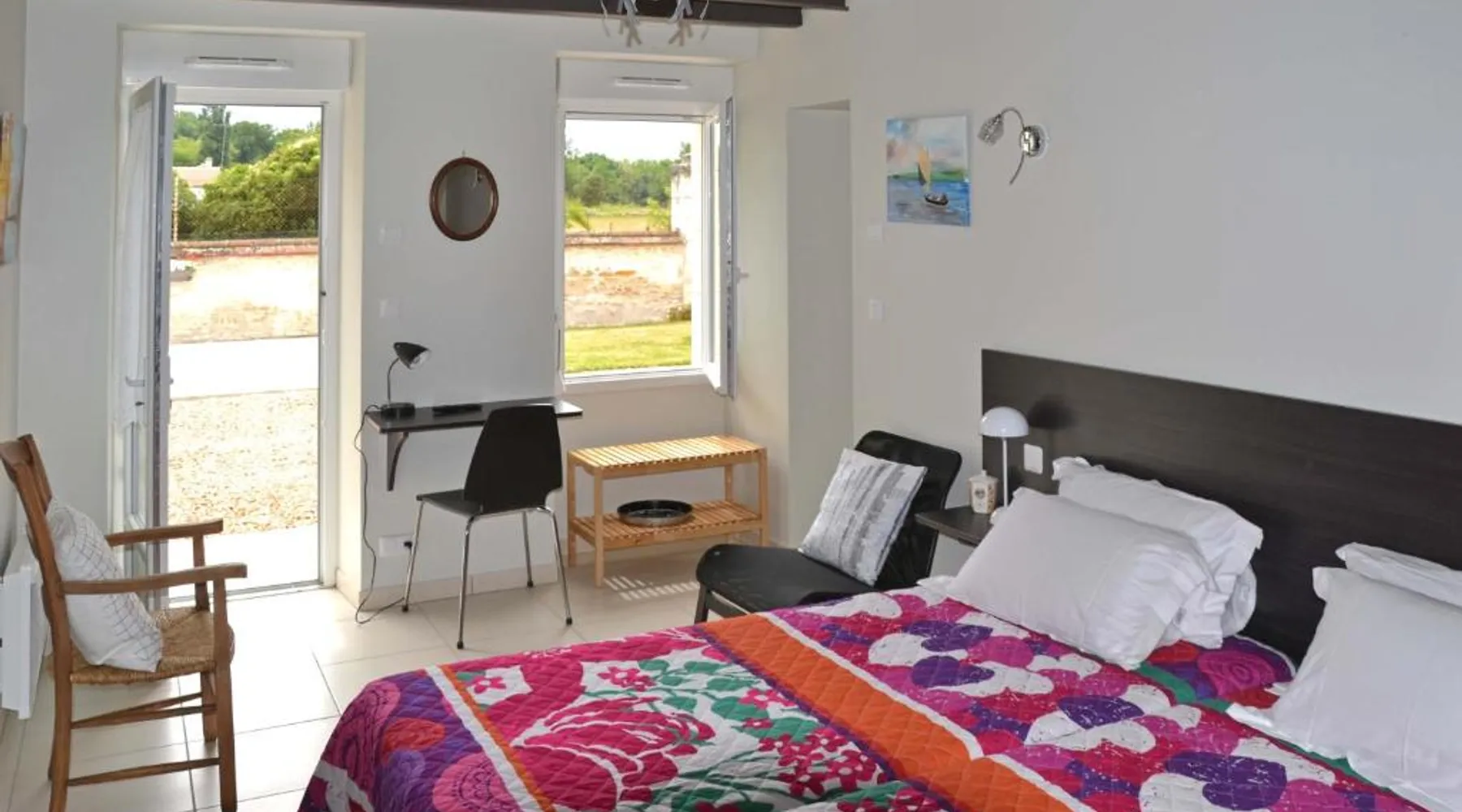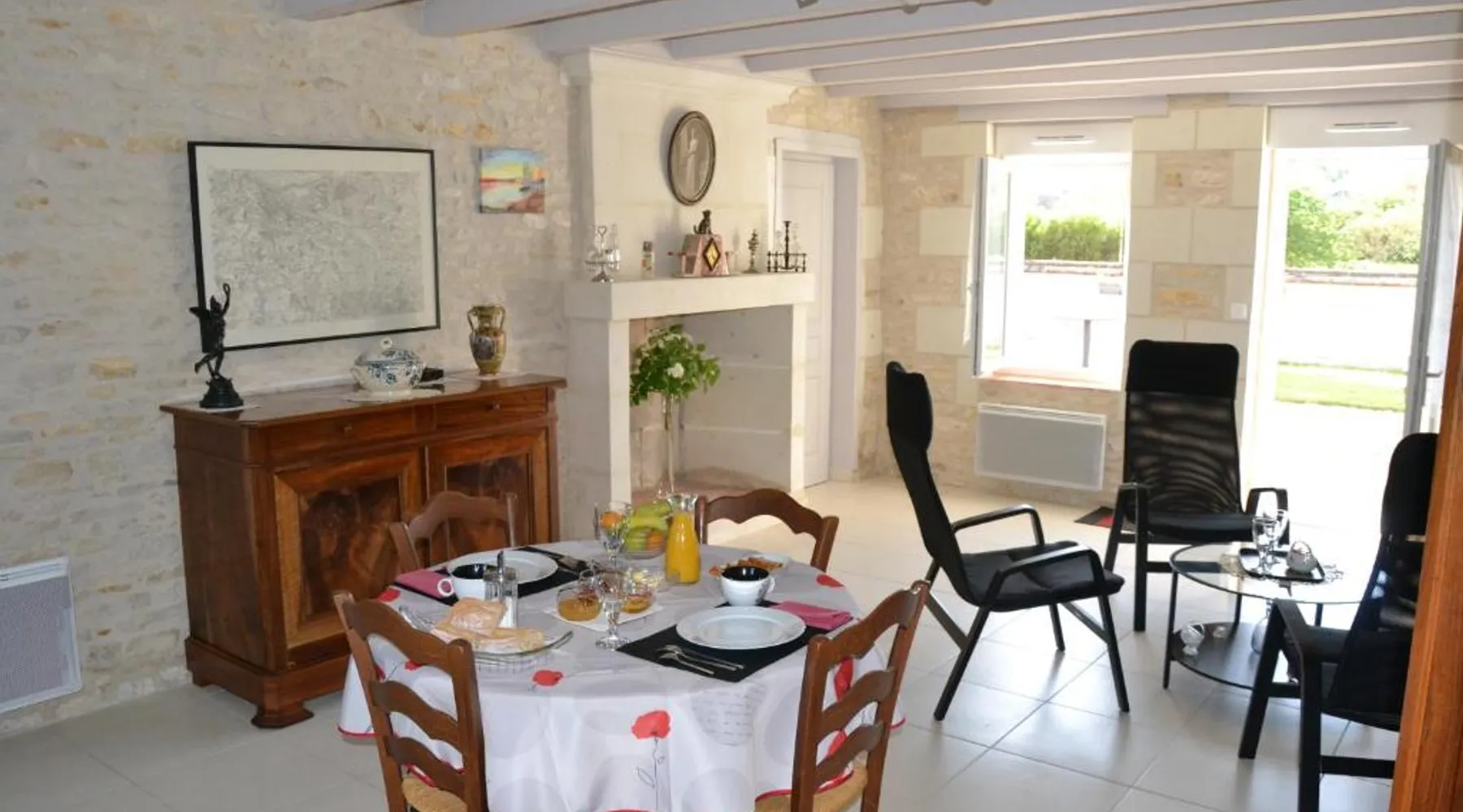 Historic Setting: Château-Vert in Chavignes offers a unique stay within a historic building. The property features a sun terrace and a beautiful garden, providing a tranquil environment for relaxation. Comfortable Accommodations: Rooms include private bathrooms, kitchenettes, and free WiFi. Additional amenities include a lounge, shared kitchen, and free on-site private parking. Delicious Breakfast: Guests enjoy a continental breakfast with juice, fresh pastries, and fruits each morning. The breakfast is highly praised by visitors. Local Attractions: Located 39 mi from Tours Val de Loire Airport, the property is close to Château du Rivau (6.8 mi), Château de Chinon (14 mi), and Château d'Azay-le-Rideau (19 mi). Walking tours are available. Offering free toiletries, this double room includes a private bathroom with a shower and a hairdryer. The well-equipped kitchenette features a refrigerator, kitchenware, a microwave and a toaster. Featuring an outdoor dining area, this double room also offers a dining area, a wardrobe and a flat-screen TV. The unit offers 1 bed.