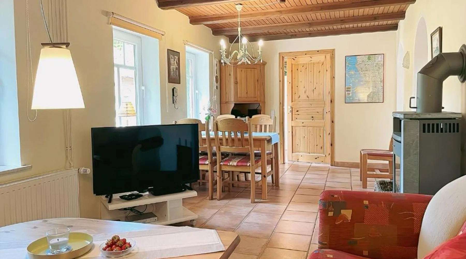 Comfortable Accommodations: Haus Benninghusumer Deichweg in Emmelsbüll-Horsbüll offers three bedrooms and a bathroom. The property features a fully equipped kitchen, washing machine, and a cozy fireplace. Outdoor Spaces: Guests can enjoy a garden and terrace with garden views. The outdoor seating area provides a relaxing space for outdoor dining. Modern Amenities: The holiday home includes free WiFi, a dishwasher, microwave, and a TV. Additional amenities include a coffee machine, hairdryer, and a washing machine. Convenient Location: Located 55 mi from Sylt Airport, the property is highly rated by guests. Free on-site private parking is available. Guests will have a special experience as this holiday home provides a fireplace. Featuring a private entrance, this holiday home also is consisted of of 3 bedrooms, a seating area and 1 bathroom with a shower and a hairdryer. Guests will find a stovetop, a refrigerator, a dishwasher and kitchenware in the well-equipped kitchen. The holiday home also has a barbecue. Boasting a terrace with garden views, this holiday home also offers a washing machine and a TV. The unit offers 4 beds.