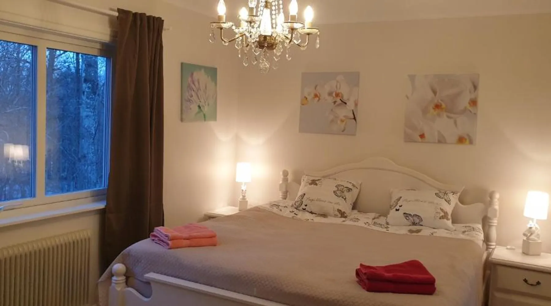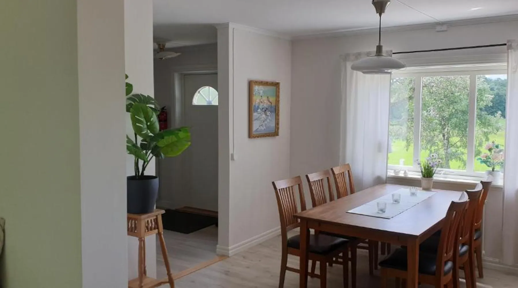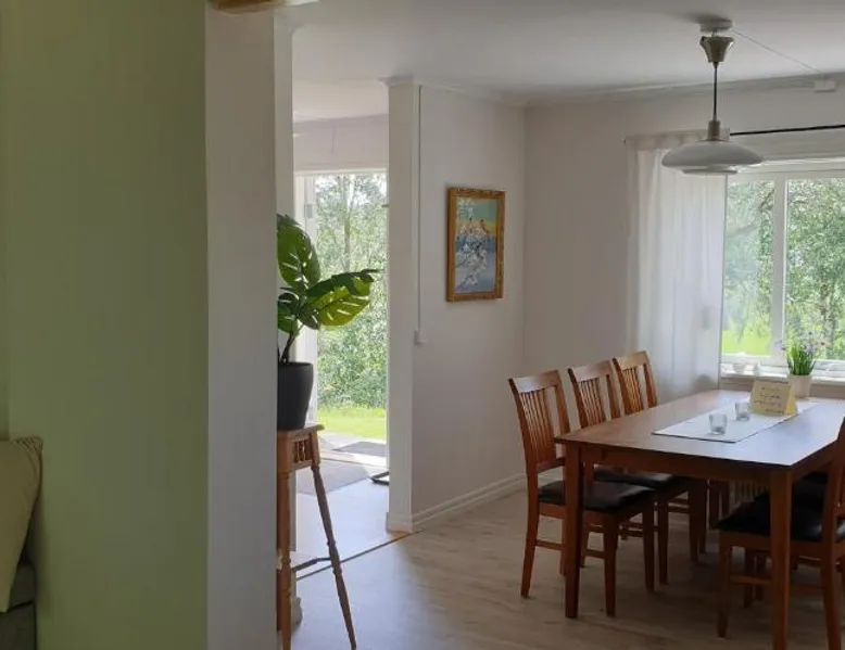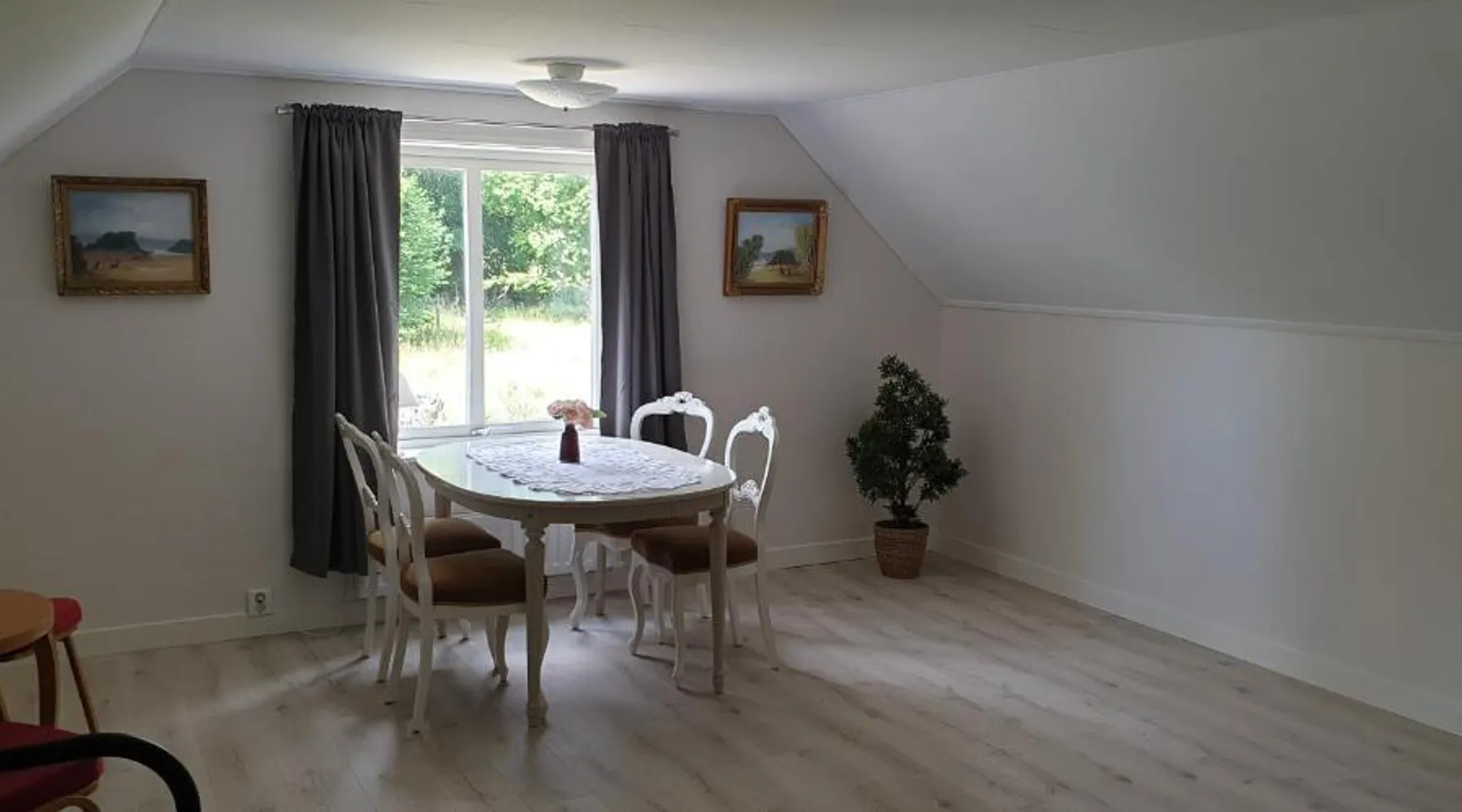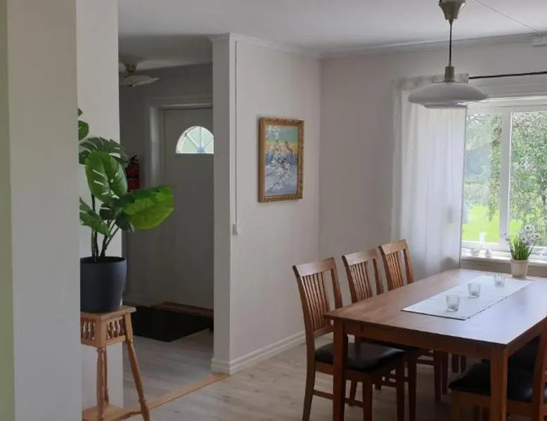 Accommodations Features: Semesterhus Kymbo Jungfrugården 2 in Falköping offers a villa with four bedrooms and a living room. The property includes a garden, terrace, and free WiFi. Amenities and Facilities: Guests can enjoy a fully equipped kitchen, washing machine, and free on-site private parking. Additional amenities include streaming services, a dishwasher, and a sofa bed. Location and Attractions: Located 32 mi from Jönköping Airport, the villa is near Skövde Arena (26 mi) and Jönköpings Läns Museum (30 mi). Other attractions include Sand Golf Club and Match Museum, each approximately 27 mi away. Guest Satisfaction: Highly rated by guests, the property ensures a comfortable and enjoyable stay. Featuring a private entrance, this villa is consisted of of 1 living room, 4 separate bedrooms and 1 bathroom with a shower and a hairdryer. Guests will find a stovetop, a refrigerator, a dishwasher and kitchenware in the well-equipped kitchen. The villa also has a barbecue. Boasting a terrace with garden views, this villa also offers a washing machine and a flat-screen TV with streaming services. The unit offers 5 beds.