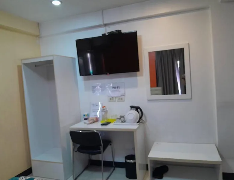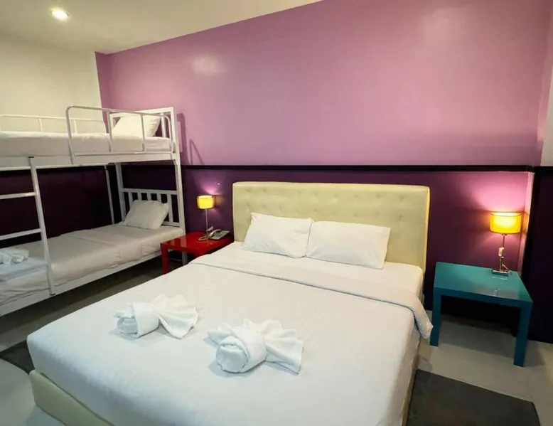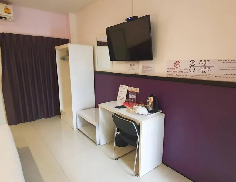 Comfortable Accommodations: Donmueang Airport Modern Bangkok in Bangkok offers 3-star rooms with air-conditioning, private bathrooms, balconies, and terraces. Each room includes a tea and coffee maker, hairdryer, work desk, and TV. Essential Facilities: Guests enjoy free WiFi, a terrace, and an outdoor seating area. The hotel provides a 24-hour front desk, free on-site private parking, and an outdoor dining area. Convenient Location: Located 3.7 mi from Don Mueang International Airport, the hotel is near attractions such as IMPACT Muang Thong Thani (6.2 mi), Central Plaza Ladprao (11 mi), and Chatuchak Weekend Market (12 mi). Guests appreciate the connectivity to the airport and the hotel’s convenient location. This air-conditioned twin room features a private bathroom, a tea and coffee maker, a dining area as well as a terrace. The unit offers 2 beds.