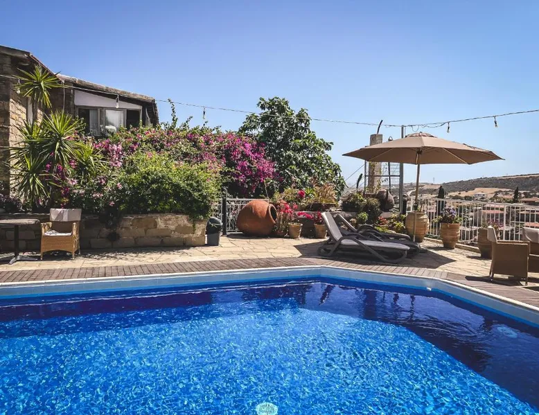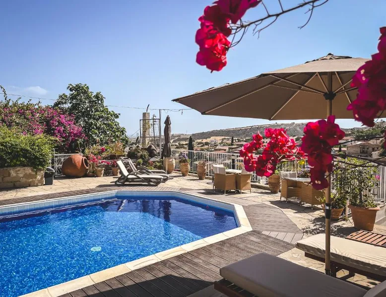Elegant Accommodations: Cyprus Villages - Hotel & Restaurant in Tochni offers a country house setting with a swimming pool, garden, terrace, restaurant, bar, and free WiFi. Guests enjoy mountain views and a serene environment. Comfortable Amenities: The property features private check-in and check-out, a 24-hour front desk, family rooms, and free parking. Additional facilities include a minimarket, outdoor seating area, bike and car hire, and yoga classes. Dining Experience: A family-friendly restaurant serves local specialties, warm dishes, fresh pastries, cheese, fruits, and juice. Breakfast is continental or buffet, highly praised by guests. Prime Location: Located 22 mi from Larnaca International Airport, the hotel is near attractions such as Amathus (14 mi) and Limassol Marina (21 mi). Guests appreciate the scenic views and excellent breakfast. Spend your break in charming, traditional surroundings with a stay at these carefully restored villas, set overlooking the village of Tochni in southern Cyprus. Adamos House offers access to a shared swimming pool right next to the property. Breakfast buffet is served at Tochni Tavern which is located opposite the property. Tochni Tavern is also open for lunch and dinner from March to November each year. The Adamos Hotel Apartments blends historic features and antique furnishings with great modern amenities. These include an outdoor swimming pool and a sun terrace offering breathtaking views of the characteristic Mediterranean scenery. Each villa apartment opens onto a balcony or terrace, allowing you to enjoy the sunshine in privacy. They are all set in renovated farmhouses built in the traditional Cypriot style, accompanied by modern amenities including air conditioning and kitchenettes.