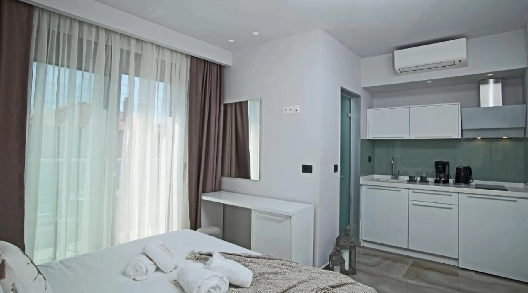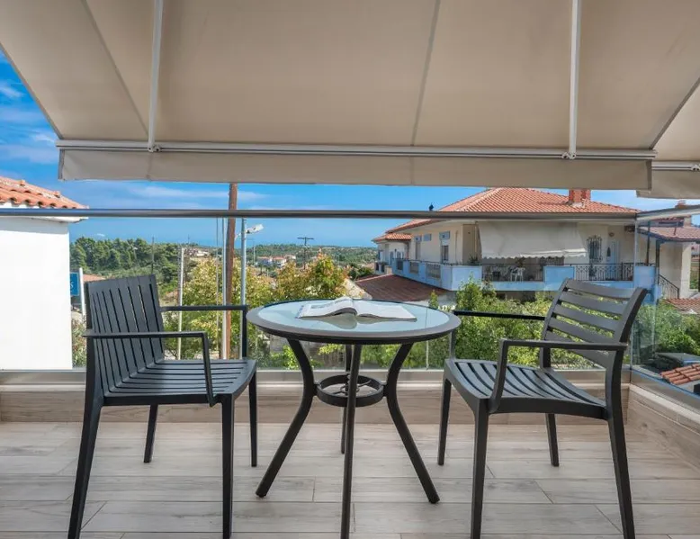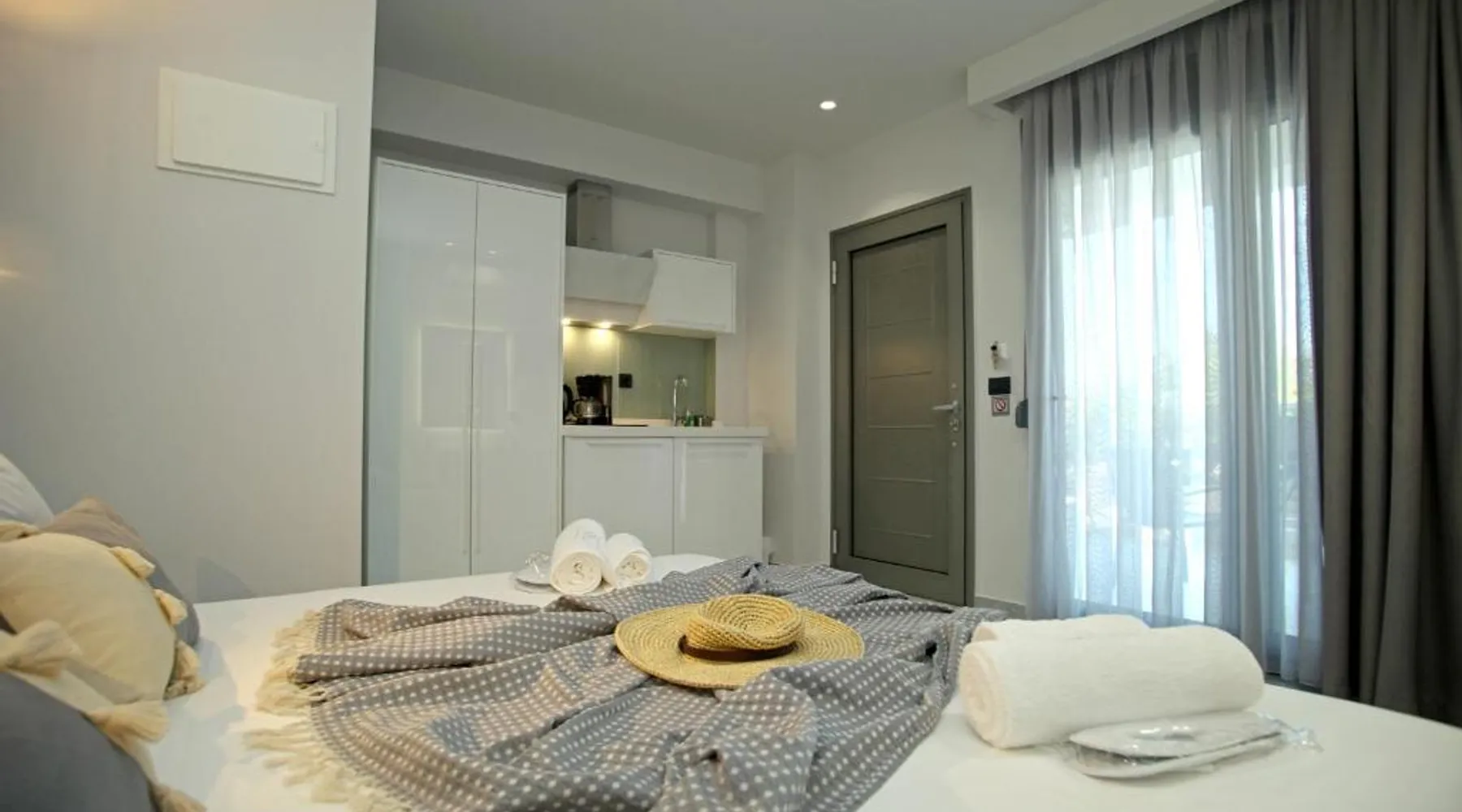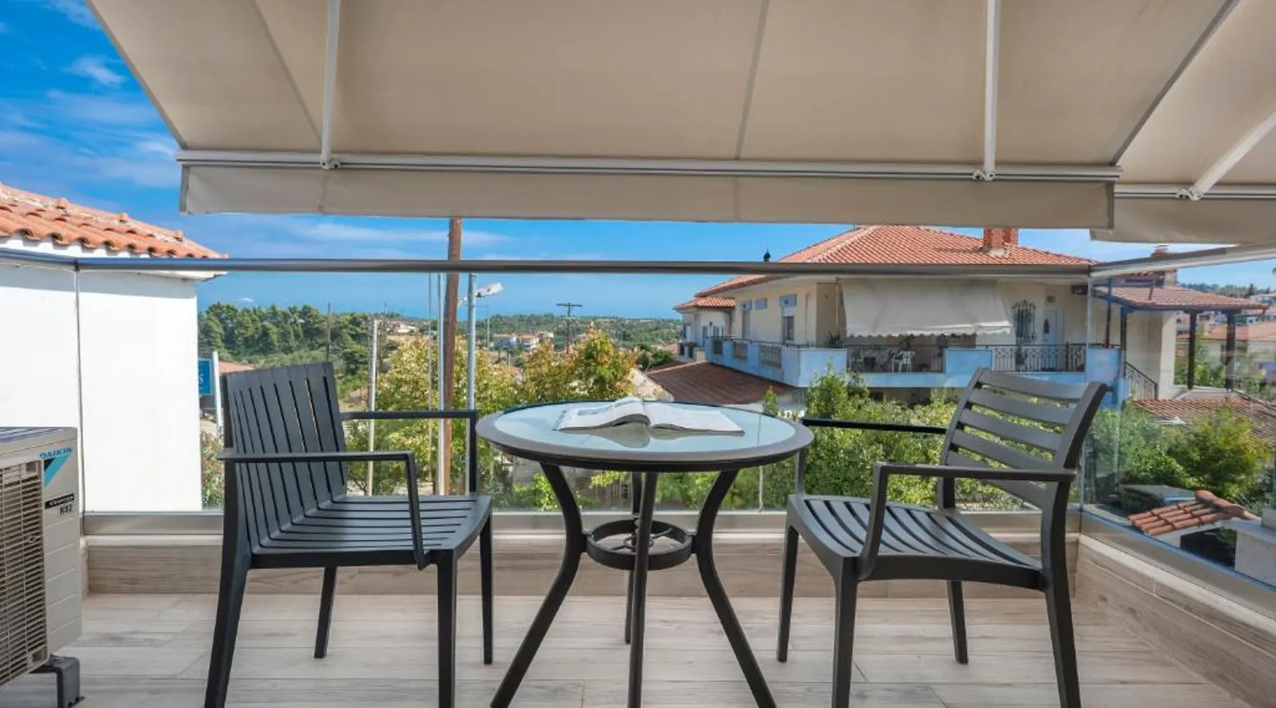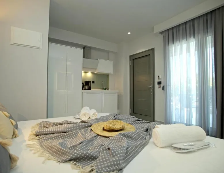 Comfortable Living Space: Imagine Studios in Paliouri offers a spacious apartment with a terrace and free WiFi. The property features air-conditioning, a kitchenette, and a private bathroom with a walk-in shower. Modern Amenities: Guests can enjoy garden and mountain views, a coffee machine, and a TV. Additional amenities include a refrigerator, free toiletries, and a wardrobe. Convenient Location: Located 65 mi from Thessaloniki Airport, the apartment is 1.7 mi from Porto Valitsa Beach and 1.7 mi from Chrousso Beach. The quiet street provides a peaceful environment. Highly Rated by Guests: Guests appreciate the room cleanliness, attentive host, and the quietness of the area. In the kitchenette, guests will find a stovetop, a refrigerator, kitchenware and an electric kettle. The studio features air conditioning, a private entrance, a terrace with garden views as well as a private bathroom boasting a walk-in shower. The unit has 2 beds.