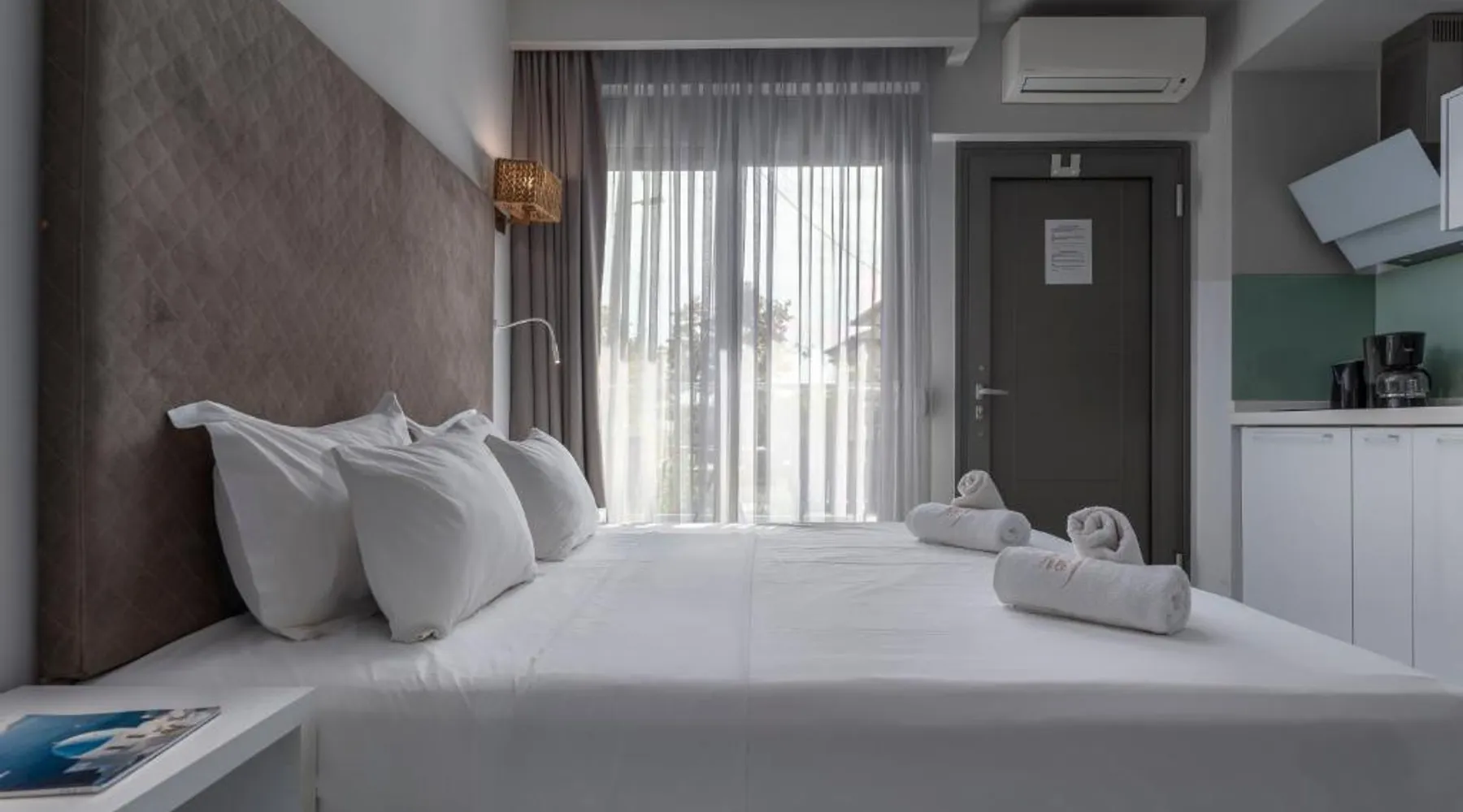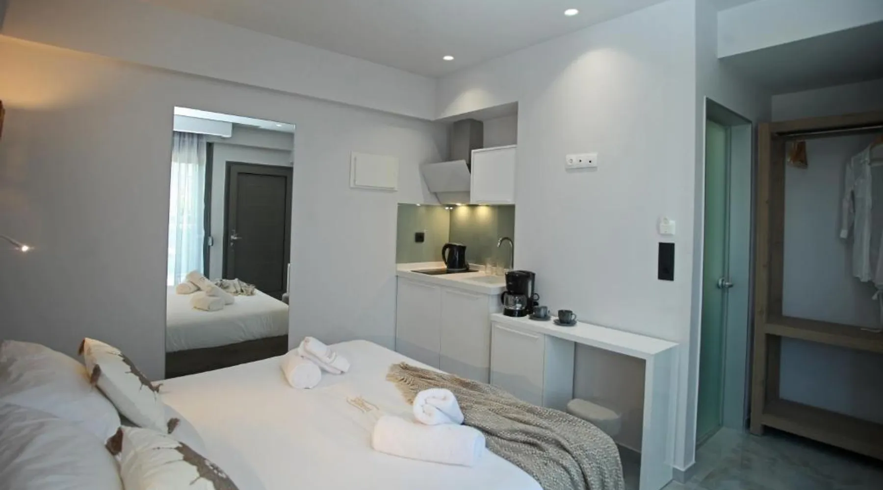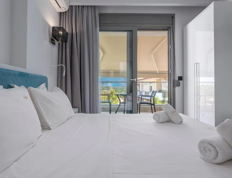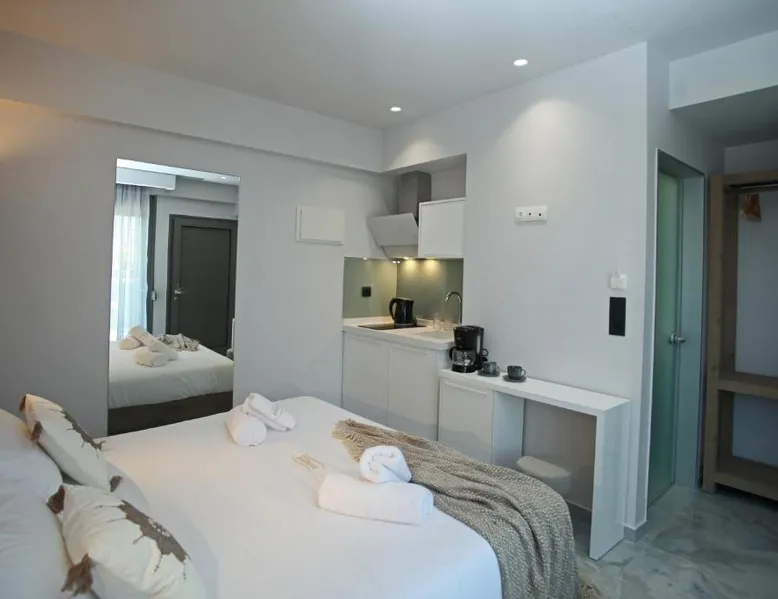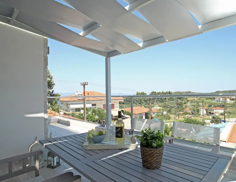 Comfortable Living Space: Imagine Studios in Paliouri offers a spacious apartment with a terrace and free WiFi. The property features air-conditioning, a kitchenette, and a private bathroom with a walk-in shower. Modern Amenities: Guests can enjoy garden and mountain views, a coffee machine, and a TV. Additional amenities include a refrigerator, free toiletries, and a wardrobe. Convenient Location: Located 65 mi from Thessaloniki Airport, the apartment is 1.7 mi from Porto Valitsa Beach and 1.7 mi from Chrousso Beach. The quiet street provides a peaceful environment. Highly Rated by Guests: Guests appreciate the room cleanliness, attentive host, and the quietness of the area. In the kitchenette, guests will find a stovetop, a refrigerator, kitchenware and an electric kettle. The studio features air conditioning, a private entrance, a terrace with garden views as well as a private bathroom boasting a walk-in shower. The unit has 2 beds.