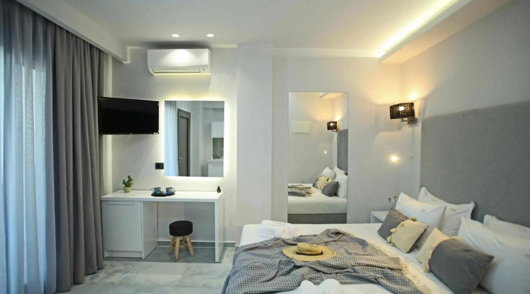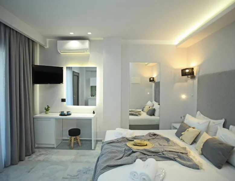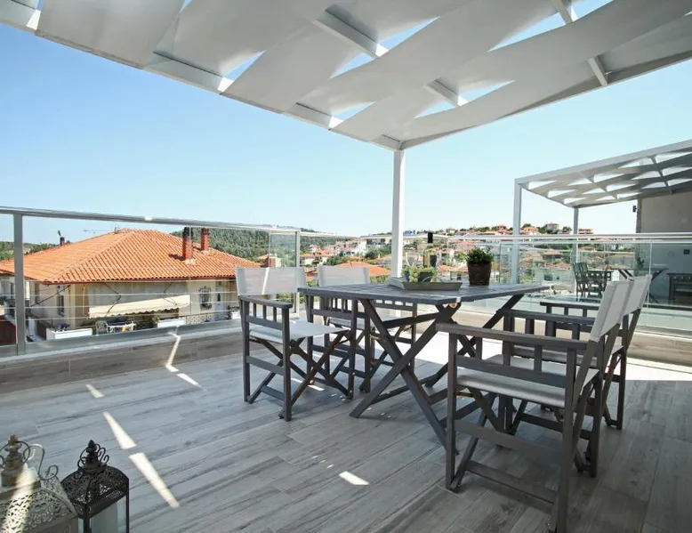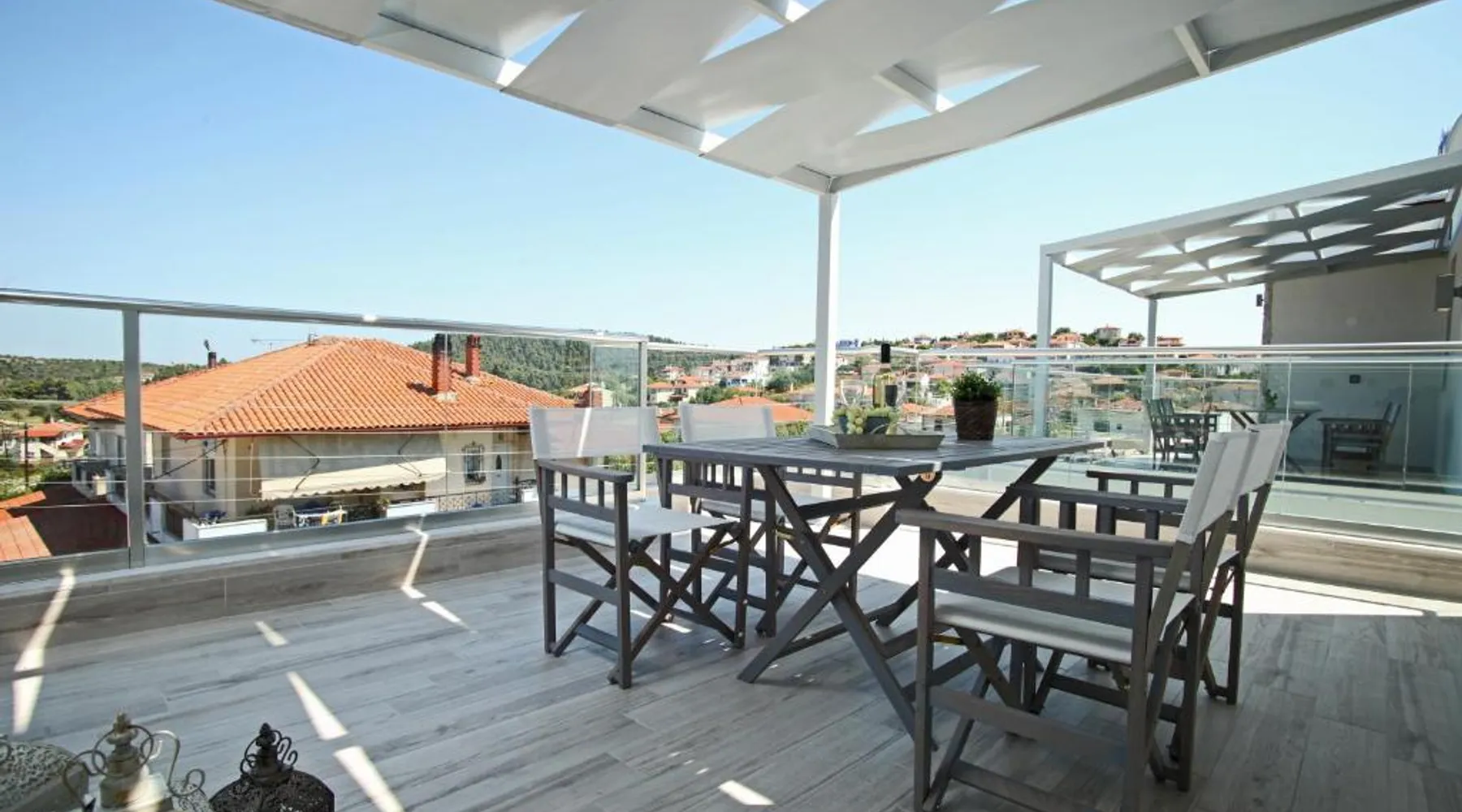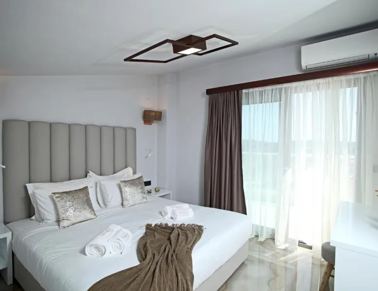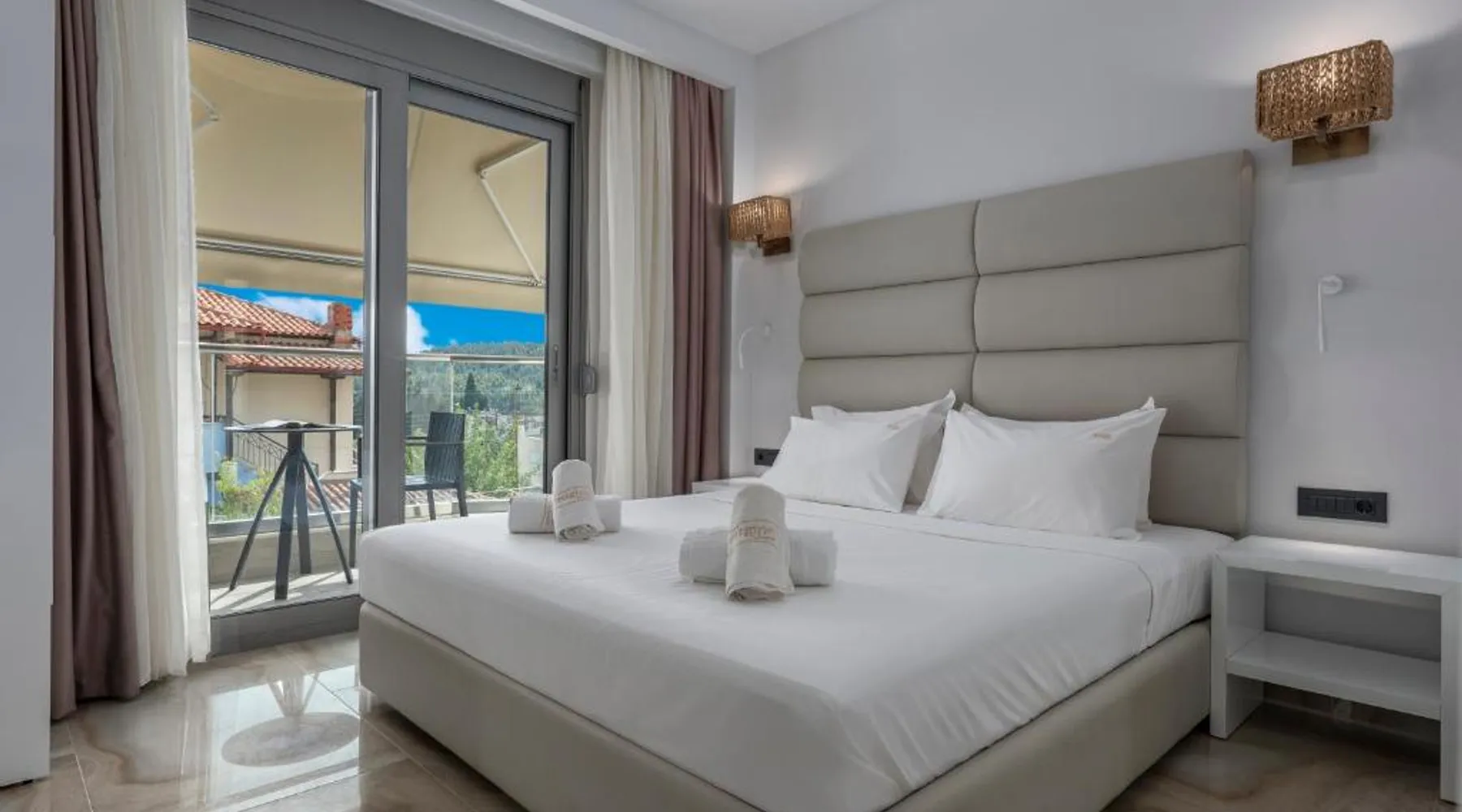 Comfortable Living Space: Imagine Studios in Paliouri offers a spacious apartment with a terrace and free WiFi. The property features air-conditioning, a kitchenette, and a private bathroom with a walk-in shower. Modern Amenities: Guests can enjoy garden and mountain views, a coffee machine, and a TV. Additional amenities include a refrigerator, free toiletries, and a wardrobe. Convenient Location: Located 65 mi from Thessaloniki Airport, the apartment is 1.7 mi from Porto Valitsa Beach and 1.7 mi from Chrousso Beach. The quiet street provides a peaceful environment. Highly Rated by Guests: Guests appreciate the room cleanliness, attentive host, and the quietness of the area. In the kitchenette, guests will find a stovetop, a refrigerator, kitchenware and an electric kettle. The studio features air conditioning, a private entrance, a terrace with garden views as well as a private bathroom boasting a walk-in shower. The unit has 2 beds.