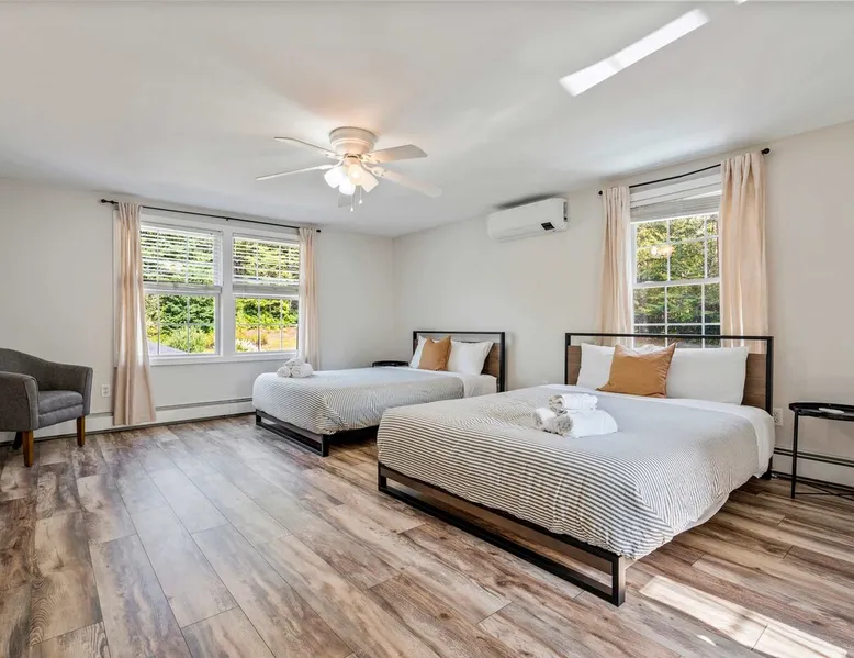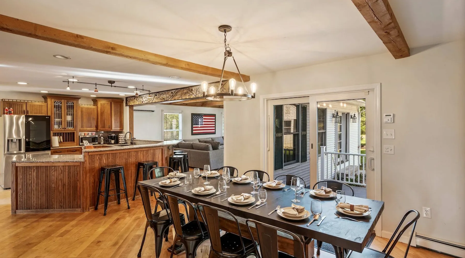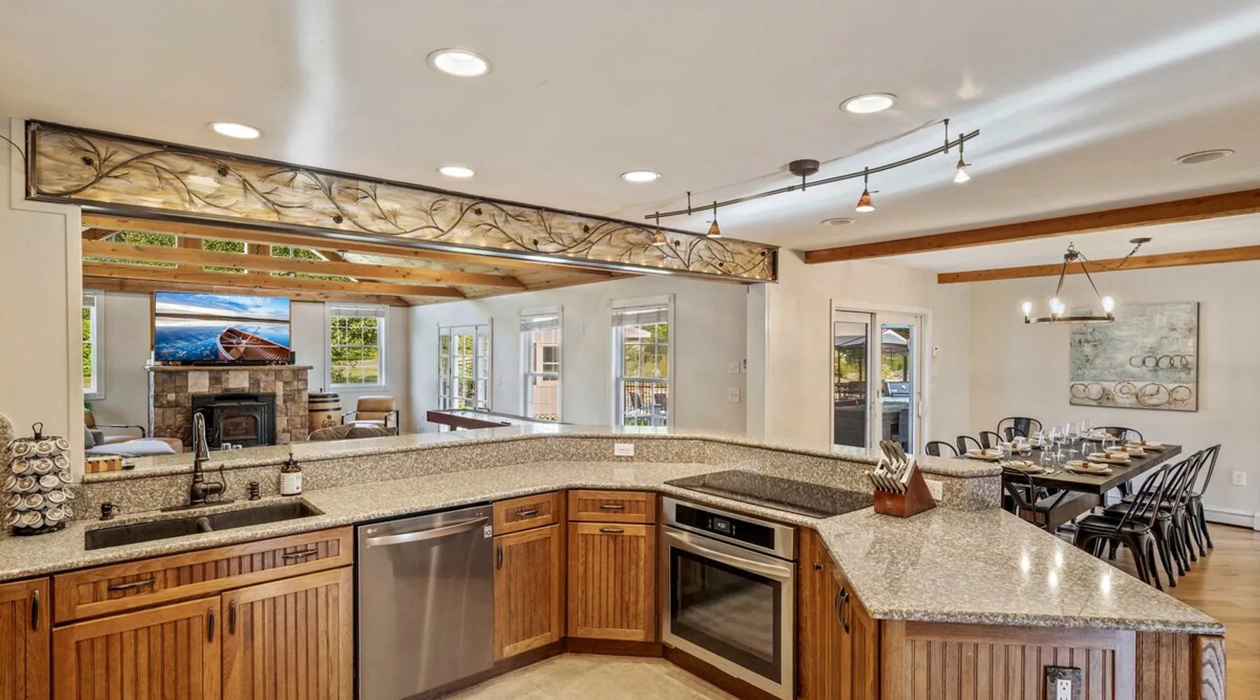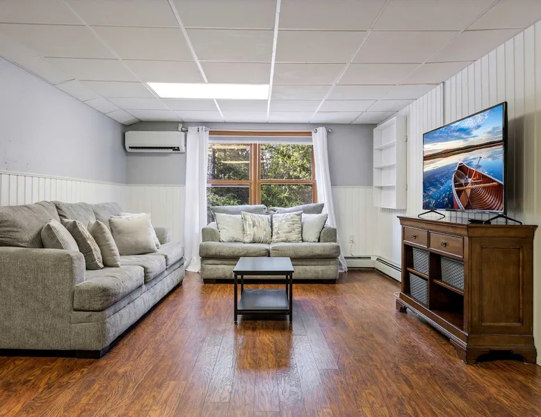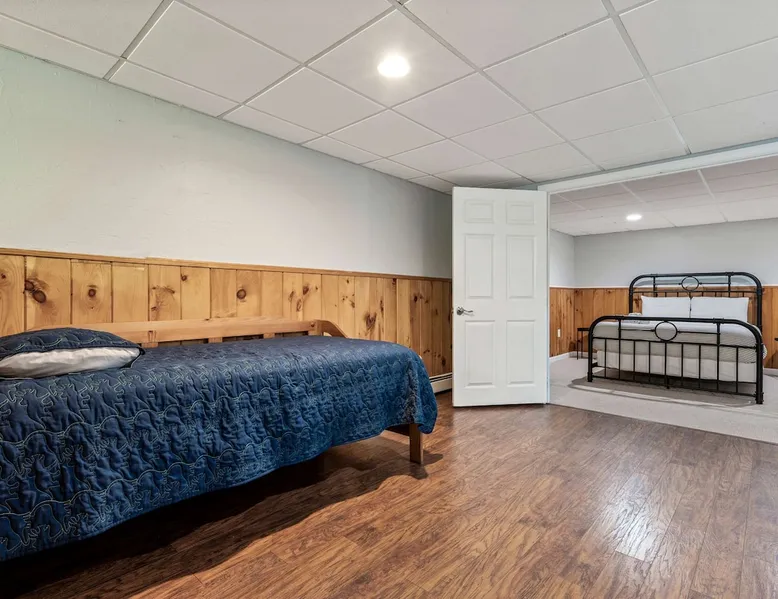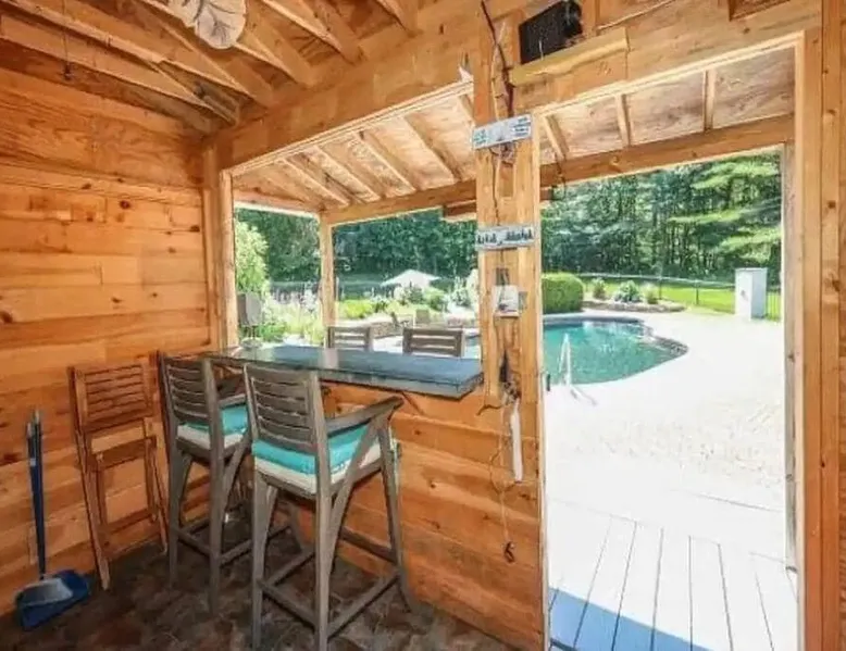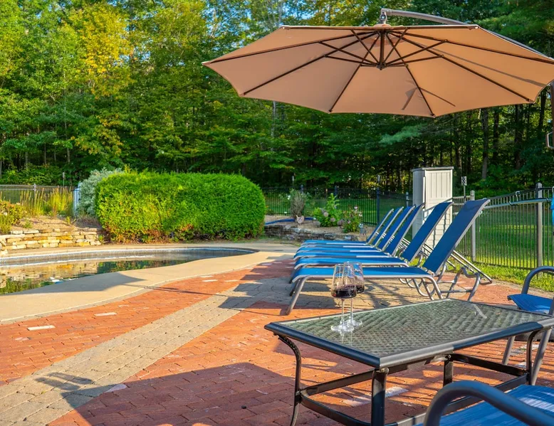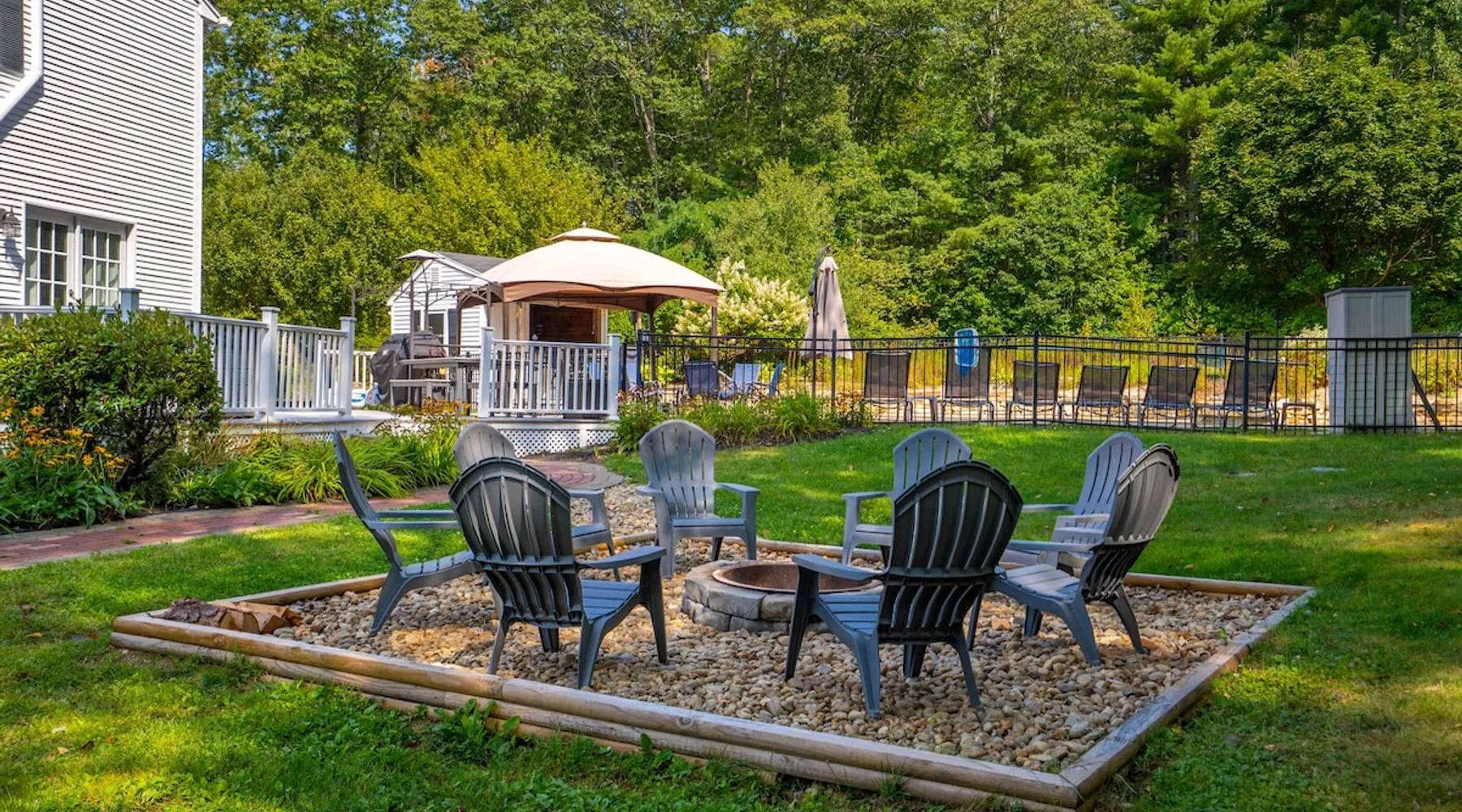 Welcome to the stunning, private escape of Gilford! This 6 bedroom, 4 full bathroom is the ideal vacation spot for you and your family- accommodating up to 18 guests. Sit back and relax by the pool and hot tub, or cozy up inside for a game night with a fully stocked game room: pool table, shuffle board, cards, board games, and more! Brand NEW outdoor fire pit! This house can accommodate ample parking. The space Working from home, no problem. This property features 2 state of the art standup desks with wireless charging. Staying just for fun, all 3 levels of the home have common areas to fit large groups and give guests some privacy from the others should they need it. Kitchen *Fully stocked kitchen with granite countertops, a ”knock-knock” fridge by LG, an induction cooktop, an oven and a wine/beer fridge to fit beverages for the whole family. The kitchen is equipped with everything you need to cook and entertain. A drip coffee pot and Keurig are included for your morning cup of coffee. The Grand Room *Amazing open floor plan that is all tied together by the Grand room that features 15 foot cathedral ceilings with wood beams, a 75 inch Smart TV, and a 14 foot wooden shuffleboard. Bedroom Configuration Bedroom 1- King - Main Level - this has the ensuite bathroom Bedroom 2- Queen - Main Level Bedroom 3- 2 Queens - Upper Level Bedroom 4- Queen - Upper Level Bedroom 5- King - Upper Level (w/ crib) Bedroom 6- Queen - Lower Level Plus four twin beds - 3 in the common area upstairs and 1 in the lower level Outside Area The Front yard features a private 500 foot driveway that was newly paved and lined with lighted lamps atop large granite posts. There is also a 40x25 fish pond with a fountain right where the 2 private driveways split left and right off the home. We just added a brand new fire pit with seating for 7 people. We do not leave firewood out for guests for liability purposes but you are welcome to bring your own as long as you follow the noise ordinance and be safe. The backyard has an incredible set up with a massive Gunite pool for the summer time and 5-person hot tub that is open all year round. Behind the Waterfall there is a horseshoe pit and an acre of flat lawn that is well maintained for any other backyard games. Adjacent to the pool there is a converted shed that is now an outdoor bar with seating for 4-5 people. The outdoor bar also has a Smart TV. We keep it open with the pool from Mid May to Late September and the pool can be heated for $750 per week or $500 per weekend at 78 degrees during the day. This rental has something for every season: Winter: Gunstock Mountain 10 minutes away (many other mountains within an hour drive) Spring: Boat Season opens back up just a few miles down the road Summer: The Pool opens up and golf season begins Fall: Foliage is incredible in the lakes region Hard to believe this Oasis is only a 90 minute drive from Boston. *7.8 miles from Gunstock Mountain Resort *6.9 miles from Bank of New Hampshire Pavilion Concert Venue *9 miles from Weirs Beach *2 miles from downtown Laconia *Loudon Motor Speedway *Minutes away from Laconia’s famous bike week *11 miles from Winnipesaukee Playhouse *12 miles from Canterbury Shaker Village *30 mins to Squam Lakes Natural Science Center *8 miles from Lakes Region Casino Guest access Guests have access to the entire house (minus owners closet). Other things to note Pets are allowed for $125 per dog- maximum 2 dogs. Pool may be heated for $700 per week or $350 per weekend with 48 hour notice. Guests must provide their own firewood if they would like to utilize the fire pit at their own discretion. It should never be left unattended while there is a live flame, and it should be extinguished entirely prior to going in for the night. Pellet Stove is just for show and will be locked for your stay. You are free to use the propane heater and obviously the traditional heating system. Please note there exterior cameras at the property. NH Meals & Rentals Tax Operator's License #104081