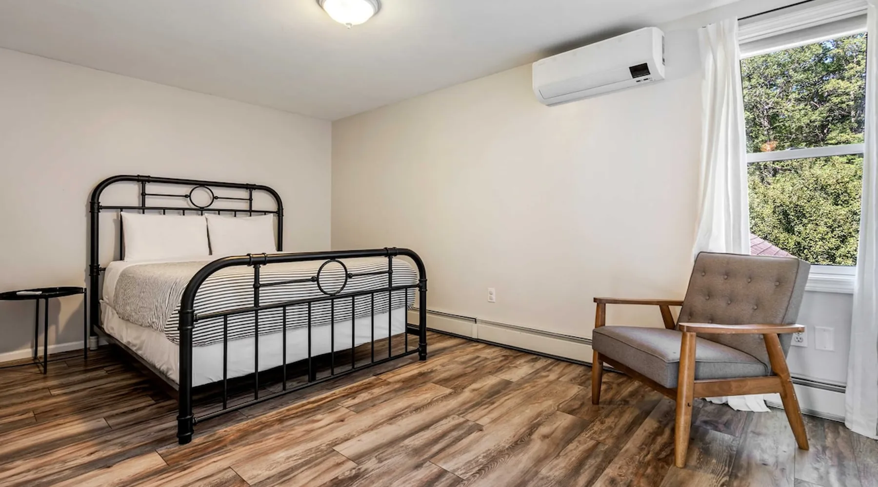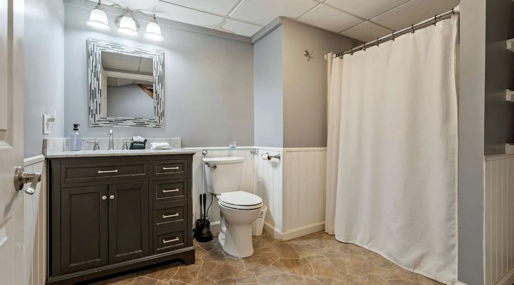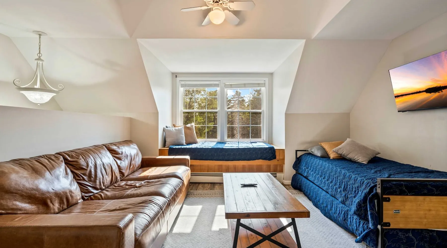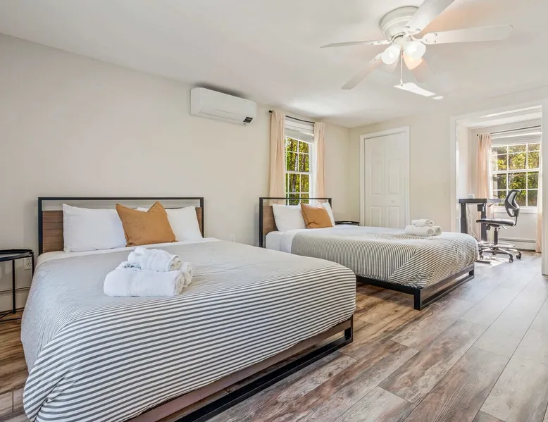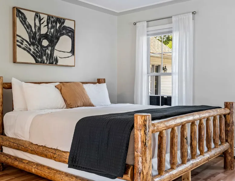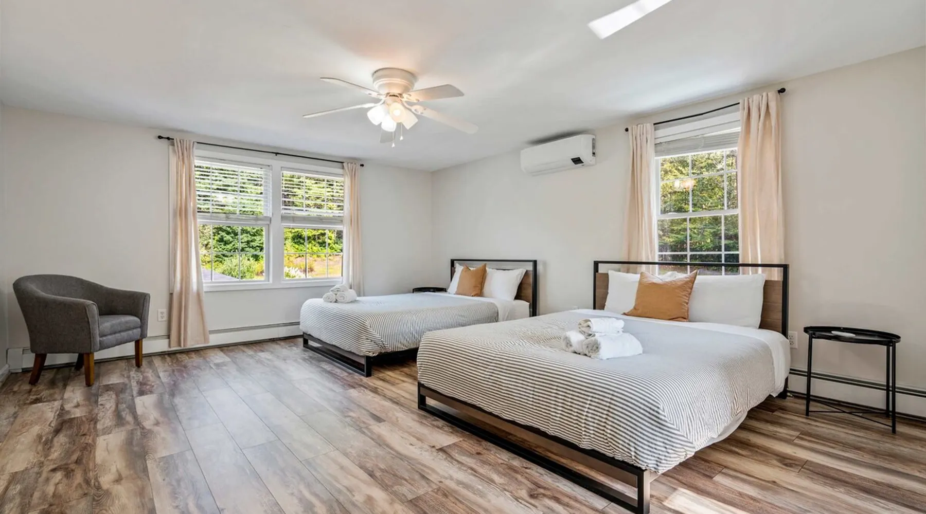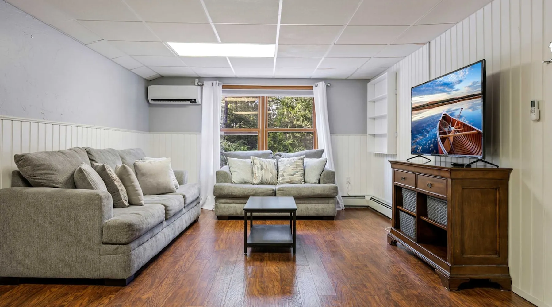 Welcome to the stunning, private escape of Gilford! This 6 bedroom, 4 full bathroom is the ideal vacation spot for you and your family- accommodating up to 18 guests. Sit back and relax by the pool and hot tub, or cozy up inside for a game night with a fully stocked game room: pool table, shuffle board, cards, board games, and more! Brand NEW outdoor fire pit! This house can accommodate ample parking. The space Working from home, no problem. This property features 2 state of the art standup desks with wireless charging. Staying just for fun, all 3 levels of the home have common areas to fit large groups and give guests some privacy from the others should they need it. Kitchen *Fully stocked kitchen with granite countertops, a ”knock-knock” fridge by LG, an induction cooktop, an oven and a wine/beer fridge to fit beverages for the whole family. The kitchen is equipped with everything you need to cook and entertain. A drip coffee pot and Keurig are included for your morning cup of coffee. The Grand Room *Amazing open floor plan that is all tied together by the Grand room that features 15 foot cathedral ceilings with wood beams, a 75 inch Smart TV, and a 14 foot wooden shuffleboard. Bedroom Configuration Bedroom 1- King - Main Level - this has the ensuite bathroom Bedroom 2- Queen - Main Level Bedroom 3- 2 Queens - Upper Level Bedroom 4- Queen - Upper Level Bedroom 5- King - Upper Level (w/ crib) Bedroom 6- Queen - Lower Level Plus four twin beds - 3 in the common area upstairs and 1 in the lower level Outside Area The Front yard features a private 500 foot driveway that was newly paved and lined with lighted lamps atop large granite posts. There is also a 40x25 fish pond with a fountain right where the 2 private driveways split left and right off the home. We just added a brand new fire pit with seating for 7 people. We do not leave firewood out for guests for liability purposes but you are welcome to bring your own as long as you follow the noise ordinance and be safe. The backyard has an incredible set up with a massive Gunite pool for the summer time and 5-person hot tub that is open all year round. Behind the Waterfall there is a horseshoe pit and an acre of flat lawn that is well maintained for any other backyard games. Adjacent to the pool there is a converted shed that is now an outdoor bar with seating for 4-5 people. The outdoor bar also has a Smart TV. We keep it open with the pool from Mid May to Late September and the pool can be heated for $750 per week or $500 per weekend at 78 degrees during the day. This rental has something for every season: Winter: Gunstock Mountain 10 minutes away (many other mountains within an hour drive) Spring: Boat Season opens back up just a few miles down the road Summer: The Pool opens up and golf season begins Fall: Foliage is incredible in the lakes region Hard to believe this Oasis is only a 90 minute drive from Boston. *7.8 miles from Gunstock Mountain Resort *6.9 miles from Bank of New Hampshire Pavilion Concert Venue *9 miles from Weirs Beach *2 miles from downtown Laconia *Loudon Motor Speedway *Minutes away from Laconia’s famous bike week *11 miles from Winnipesaukee Playhouse *12 miles from Canterbury Shaker Village *30 mins to Squam Lakes Natural Science Center *8 miles from Lakes Region Casino Guest access Guests have access to the entire house (minus owners closet). Other things to note Pets are allowed for $125 per dog- maximum 2 dogs. Pool may be heated for $700 per week or $350 per weekend with 48 hour notice. Guests must provide their own firewood if they would like to utilize the fire pit at their own discretion. It should never be left unattended while there is a live flame, and it should be extinguished entirely prior to going in for the night. Pellet Stove is just for show and will be locked for your stay. You are free to use the propane heater and obviously the traditional heating system. Please note there exterior cameras at the property. NH Meals & Rentals Tax Operator's License #104081
