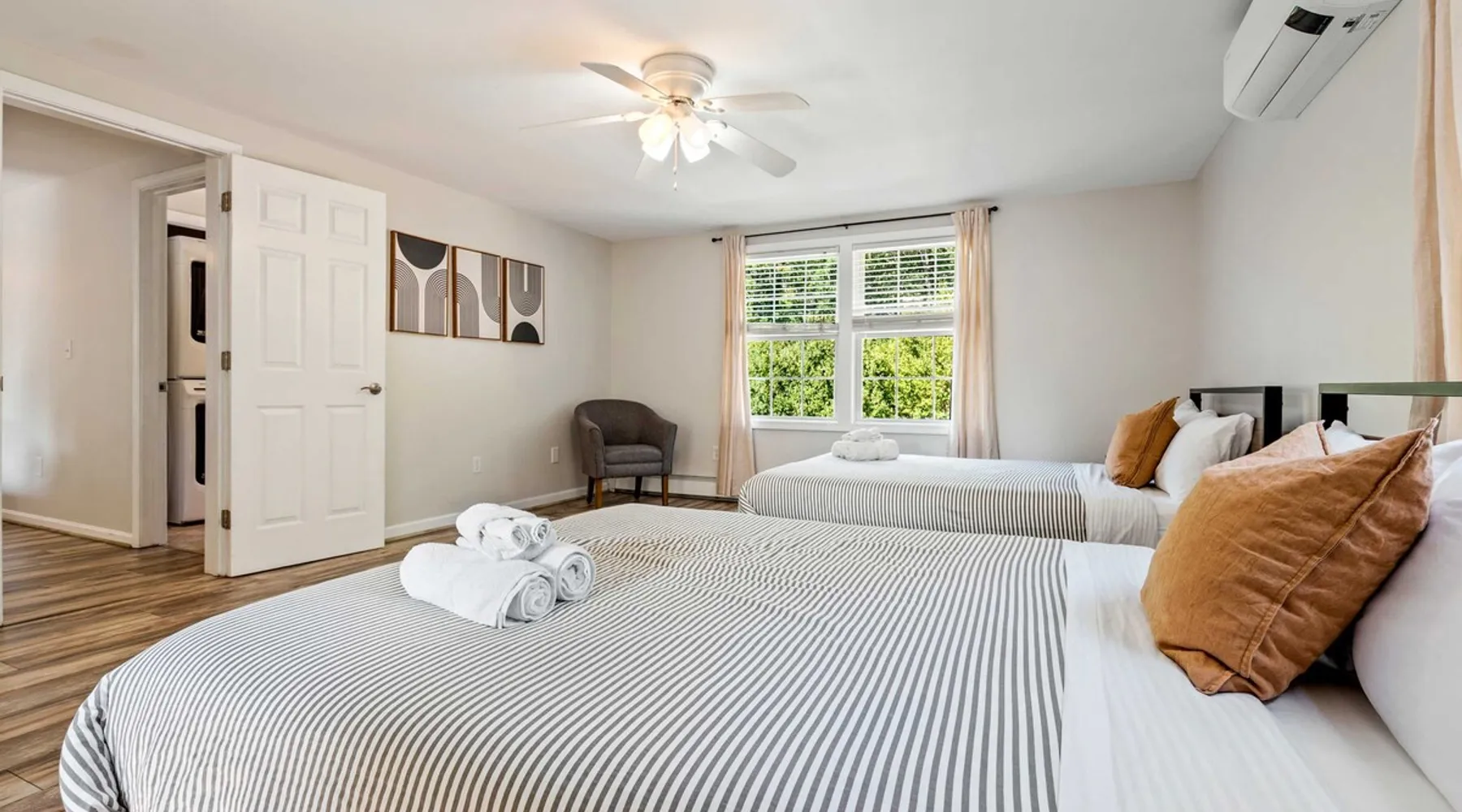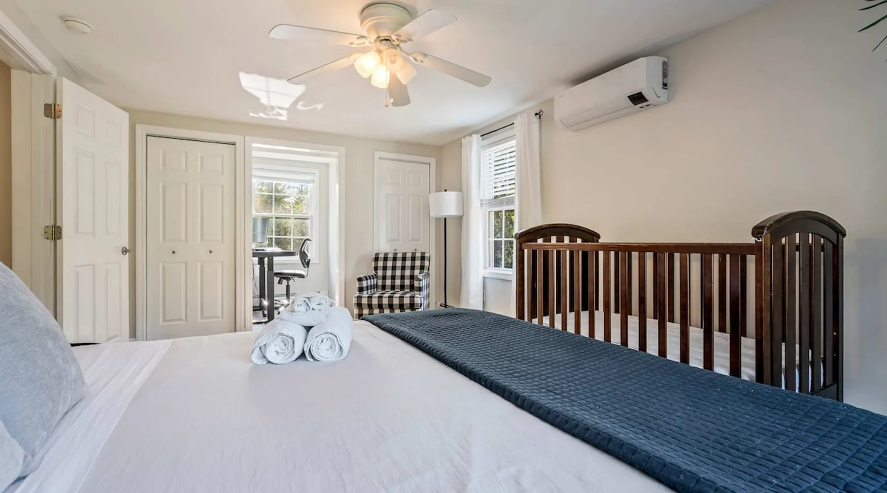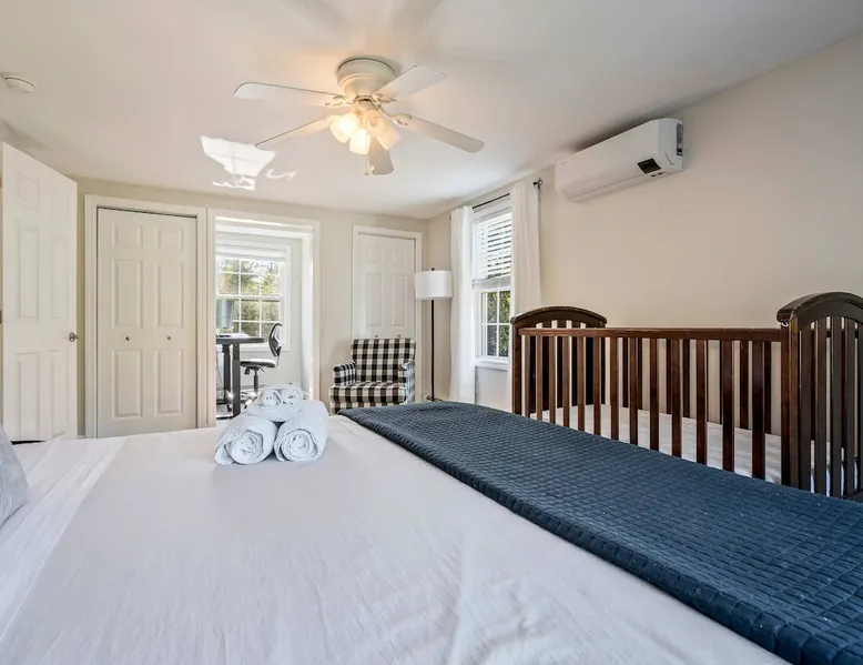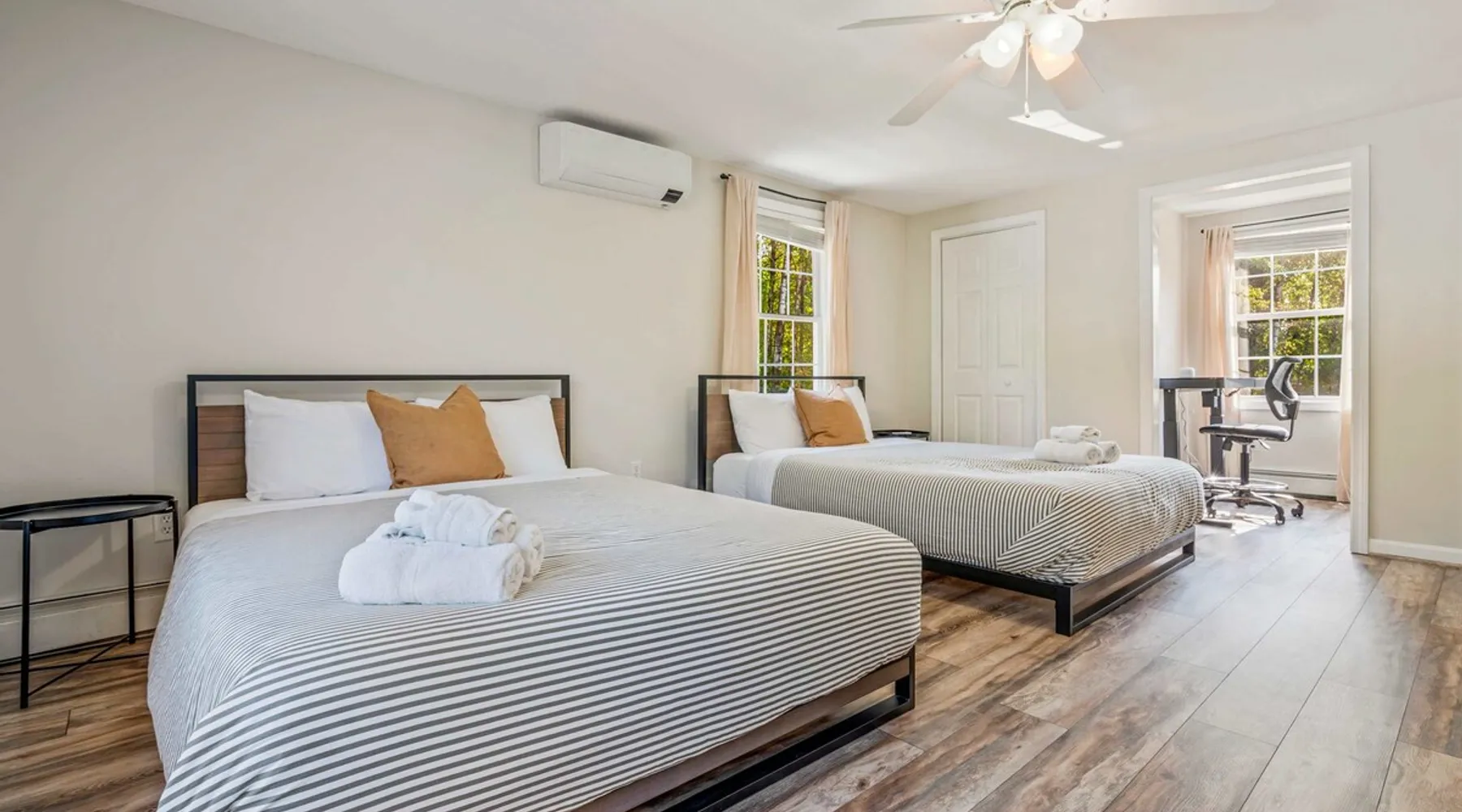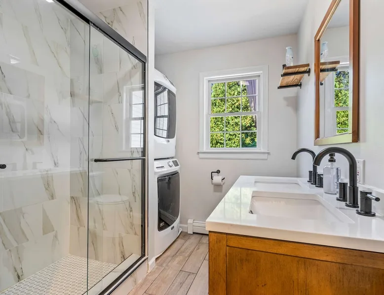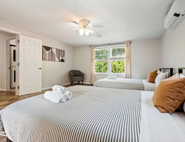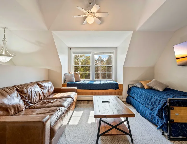Welcome to the stunning, private escape of Gilford! This 6 bedroom, 4 full bathroom is the ideal vacation spot for you and your family- accommodating up to 18 guests. Sit back and relax by the pool and hot tub, or cozy up inside for a game night with a fully stocked game room: pool table, shuffle board, cards, board games, and more! Brand NEW outdoor fire pit! This house can accommodate ample parking. The space Working from home, no problem. This property features 2 state of the art standup desks with wireless charging. Staying just for fun, all 3 levels of the home have common areas to fit large groups and give guests some privacy from the others should they need it. Kitchen *Fully stocked kitchen with granite countertops, a ”knock-knock” fridge by LG, an induction cooktop, an oven and a wine/beer fridge to fit beverages for the whole family. The kitchen is equipped with everything you need to cook and entertain. A drip coffee pot and Keurig are included for your morning cup of coffee. The Grand Room *Amazing open floor plan that is all tied together by the Grand room that features 15 foot cathedral ceilings with wood beams, a 75 inch Smart TV, and a 14 foot wooden shuffleboard. Bedroom Configuration Bedroom 1- King - Main Level - this has the ensuite bathroom Bedroom 2- Queen - Main Level Bedroom 3- 2 Queens - Upper Level Bedroom 4- Queen - Upper Level Bedroom 5- King - Upper Level (w/ crib) Bedroom 6- Queen - Lower Level Plus four twin beds - 3 in the common area upstairs and 1 in the lower level Outside Area The Front yard features a private 500 foot driveway that was newly paved and lined with lighted lamps atop large granite posts. There is also a 40x25 fish pond with a fountain right where the 2 private driveways split left and right off the home. We just added a brand new fire pit with seating for 7 people. We do not leave firewood out for guests for liability purposes but you are welcome to bring your own as long as you follow the noise ordinance and be safe. The backyard has an incredible set up with a massive Gunite pool for the summer time and 5-person hot tub that is open all year round. Behind the Waterfall there is a horseshoe pit and an acre of flat lawn that is well maintained for any other backyard games. Adjacent to the pool there is a converted shed that is now an outdoor bar with seating for 4-5 people. The outdoor bar also has a Smart TV. We keep it open with the pool from Mid May to Late September and the pool can be heated for $750 per week or $500 per weekend at 78 degrees during the day. This rental has something for every season: Winter: Gunstock Mountain 10 minutes away (many other mountains within an hour drive) Spring: Boat Season opens back up just a few miles down the road Summer: The Pool opens up and golf season begins Fall: Foliage is incredible in the lakes region Hard to believe this Oasis is only a 90 minute drive from Boston. *7.8 miles from Gunstock Mountain Resort *6.9 miles from Bank of New Hampshire Pavilion Concert Venue *9 miles from Weirs Beach *2 miles from downtown Laconia *Loudon Motor Speedway *Minutes away from Laconia’s famous bike week *11 miles from Winnipesaukee Playhouse *12 miles from Canterbury Shaker Village *30 mins to Squam Lakes Natural Science Center *8 miles from Lakes Region Casino Guest access Guests have access to the entire house (minus owners closet). Other things to note Pets are allowed for $125 per dog- maximum 2 dogs. Pool may be heated for $700 per week or $350 per weekend with 48 hour notice. Guests must provide their own firewood if they would like to utilize the fire pit at their own discretion. It should never be left unattended while there is a live flame, and it should be extinguished entirely prior to going in for the night. Pellet Stove is just for show and will be locked for your stay. You are free to use the propane heater and obviously the traditional heating system. Please note there exterior cameras at the property. NH Meals & Rentals Tax Operator's License #104081