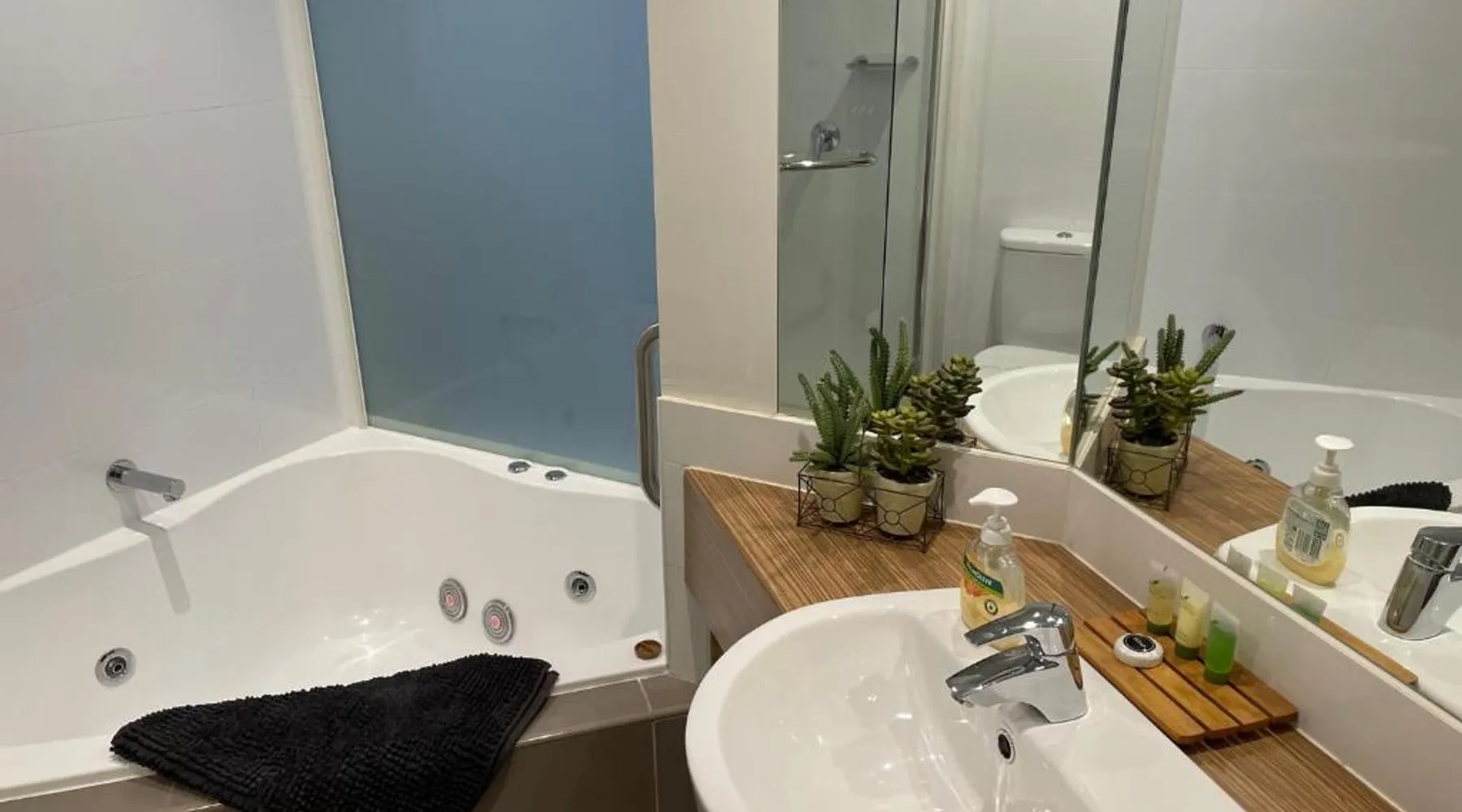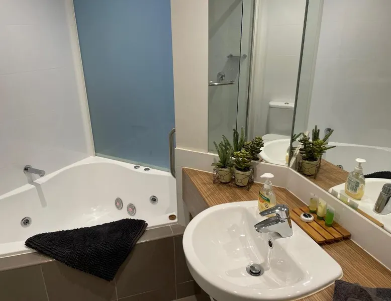 Beachfront Location: Waterfront@Waves in Cowes offers direct beachfront access with stunning sea views. Cowes Beach is just a 3-minute walk away, providing easy seaside relaxation. Spa Facilities: Guests can unwind in the spa facilities, enjoy the sun terrace, and explore the lush garden. Free WiFi is available throughout the apartment. Comfortable Amenities: The apartment features air-conditioning, a kitchenette, balcony, and private bathroom. Additional amenities include a hot tub, outdoor play area, and free on-site private parking. Local Attractions: Nearby attractions include Phillip Island Wildlife Park (1.9 mi), A Maze’N Things (3.7 mi), and Phillip Island Grand Prix Circuit (4.3 mi). Essendon Fields Airport is 93 mi away. Guests will have a special experience as the apartment offers a hot tub. Featuring a private entrance, this air-conditioned apartment consists of a kitchen, 2 bedrooms and 1 bathroom with a walk-in shower and a bath. The fully equipped kitchen features a stovetop, a refrigerator, kitchenware and a microwave. Boasting a terrace with sea views, this apartment also provides a washing machine and a flat-screen TV. The unit offers 3 beds.