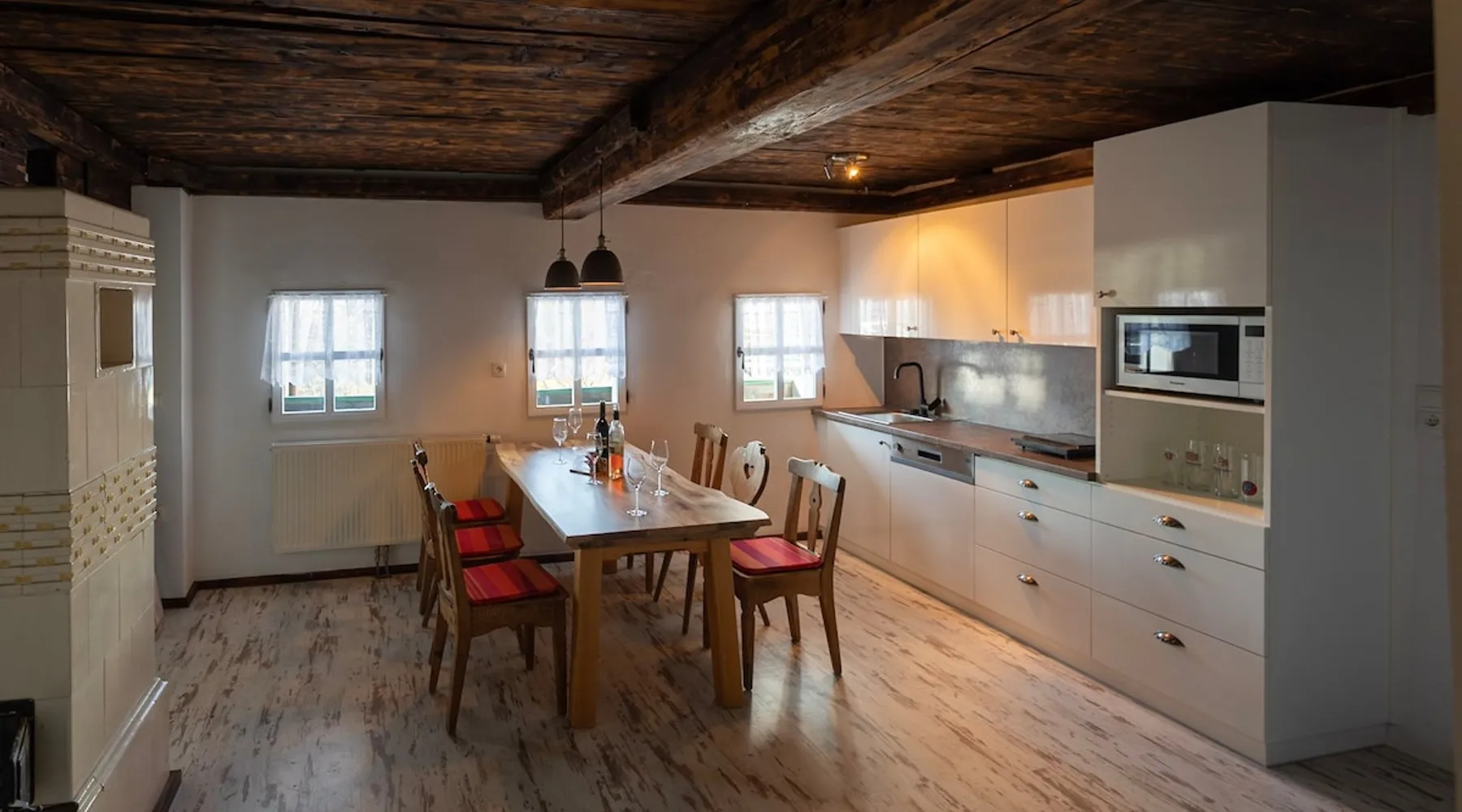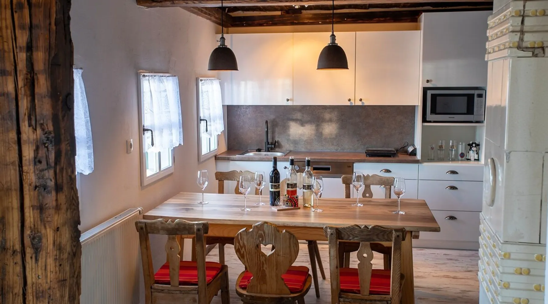 FRESHLY RENOVATED! We offer you a quiet rest period in the West Styrian vineyards with a unique panorama of Slovenia and the Graz basin. Perfect for hiking, relaxing, exploring and enjoying. Our extras: Own wines, homemade bread, our Schilcher grape juice, trips to our fish ponds, SHUTTLE BUS, grape harvest days and much more. From Thursday to Sunday & holidays, our WIEDNERMICHL restaurant is open - unusual, sustainable & something for everyone! The space Large spacious kitchen with all the appliances you need, incl. Nespresso machine. Washing machine available and functional. Tiled stove in the living room - please heat up with us for the first time. Guest access Reservations at the restaurant please make in advance - 0676/6104156. Breakfast package bookable on request.