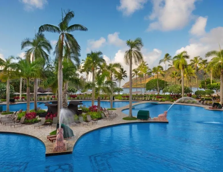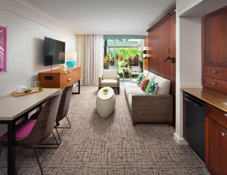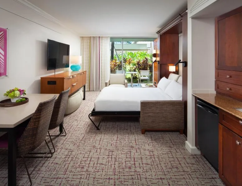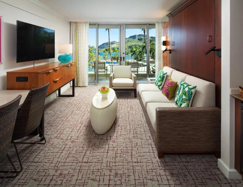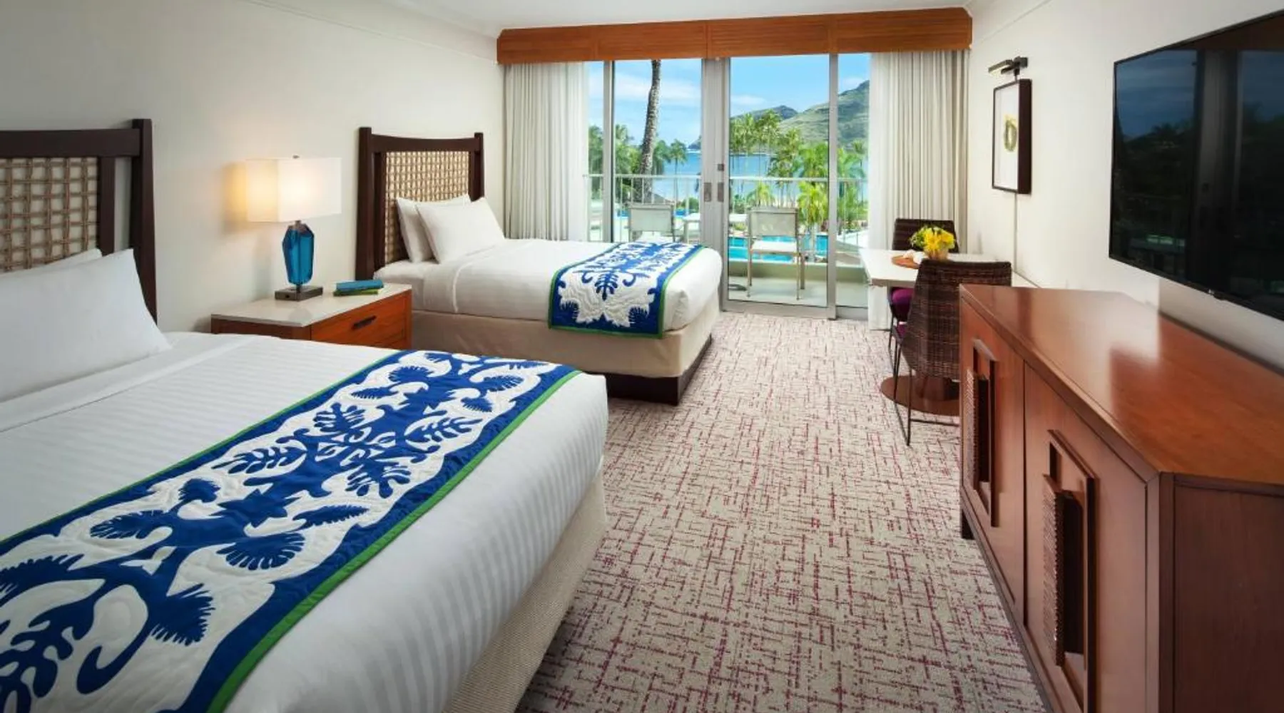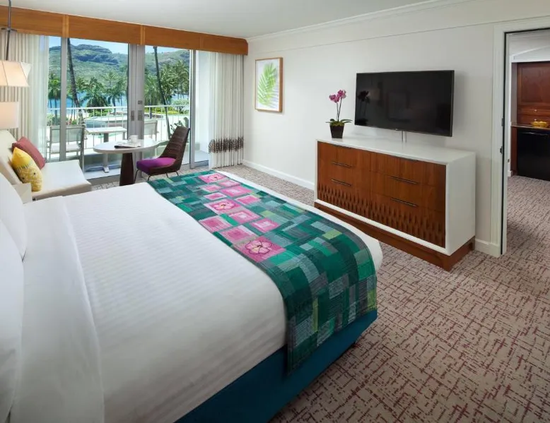 Located on Kalapaki Beach, this Lihue resort offers accommodations with free Wi-Fi and fully-equipped kitchenettes. A large outdoor pool area, spa facilities and 6 restaurants are located on site. A flat-screen HD cable TV with pay options and DVD player are standard in each accommodations at Marriot Kaua’i Beach Club. A seating area is provided. Select rooms offer ocean views from a private balcony. Multiple outdoor swimming pools and hot tubs are available for guest relaxation. A fitness center is provided. The Hokuala Golf Course is located on site. The Alexander Day Spa and Salon features Hawaiian-influenced massage, body treatments and salon services. Beach cabana massages are available. Kukui's on Kalapaki Beach highlights creative Pacific Rim and island-inspired cuisine. Toro Tei offers contemporary Japanese sushi. Fresh seafood in a fine oceanfront dining setting is provided at Duke's. Café Portofino features al fresco Italian dining. Kalapaki Grill serves American fare. Aupaka Terrace is open for grab-and-go breakfast options and fresh coffee. A complimentary airport shuttle to Lihue Airport, just a mile away, is provided. Poipu is 30 minutes' drive away. The double room includes a private bathroom fitted with a bath or a shower and a hairdryer. The spacious air-conditioned double room offers a flat-screen TV with cable channels, a coffee machine, a seating area, a safe deposit box as well as garden views. The unit has 1 bed.