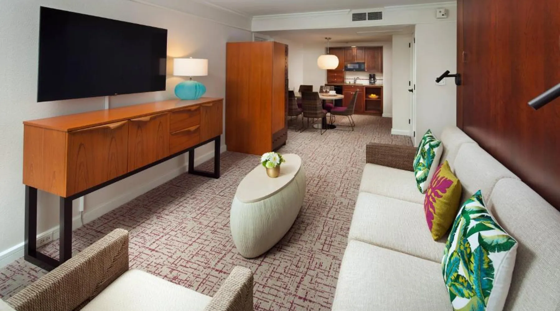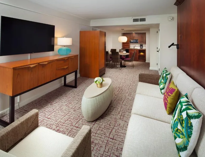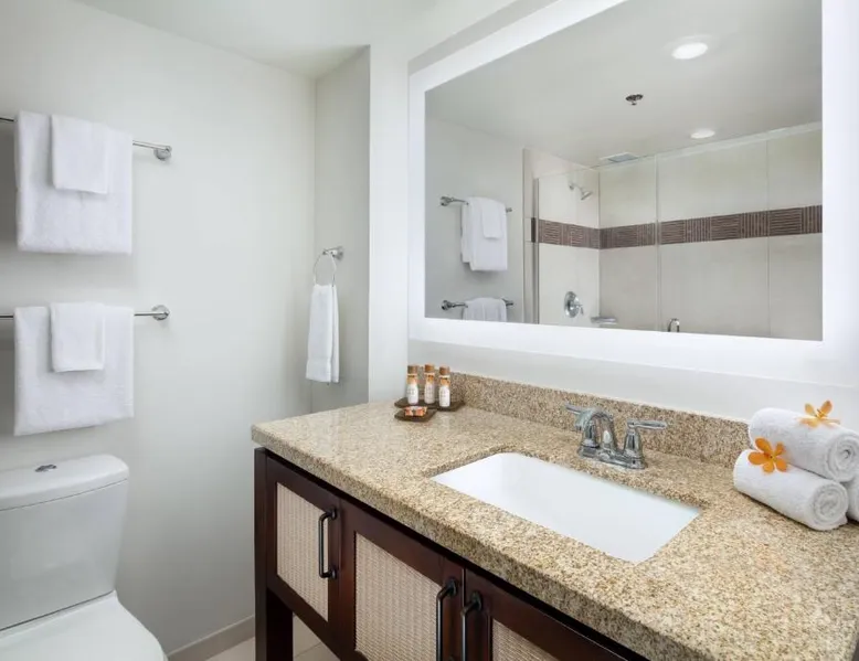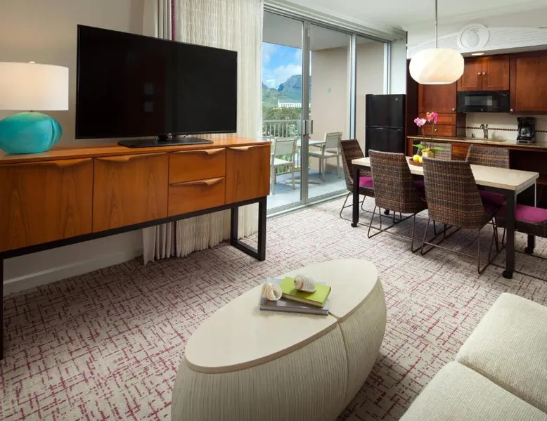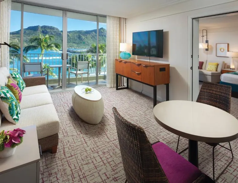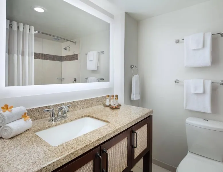 Located on Kalapaki Beach, this Lihue resort offers accommodations with free Wi-Fi and fully-equipped kitchenettes. A large outdoor pool area, spa facilities and 6 restaurants are located on site. A flat-screen HD cable TV with pay options and DVD player are standard in each accommodations at Marriot Kaua’i Beach Club. A seating area is provided. Select rooms offer ocean views from a private balcony. Multiple outdoor swimming pools and hot tubs are available for guest relaxation. A fitness center is provided. The Hokuala Golf Course is located on site. The Alexander Day Spa and Salon features Hawaiian-influenced massage, body treatments and salon services. Beach cabana massages are available. Kukui's on Kalapaki Beach highlights creative Pacific Rim and island-inspired cuisine. Toro Tei offers contemporary Japanese sushi. Fresh seafood in a fine oceanfront dining setting is provided at Duke's. Café Portofino features al fresco Italian dining. Kalapaki Grill serves American fare. Aupaka Terrace is open for grab-and-go breakfast options and fresh coffee. A complimentary airport shuttle to Lihue Airport, just a mile away, is provided. Poipu is 30 minutes' drive away. The double room includes a private bathroom fitted with a bath or a shower and a hairdryer. The spacious air-conditioned double room offers a flat-screen TV with cable channels, a coffee machine, a seating area, a safe deposit box as well as garden views. The unit has 1 bed.