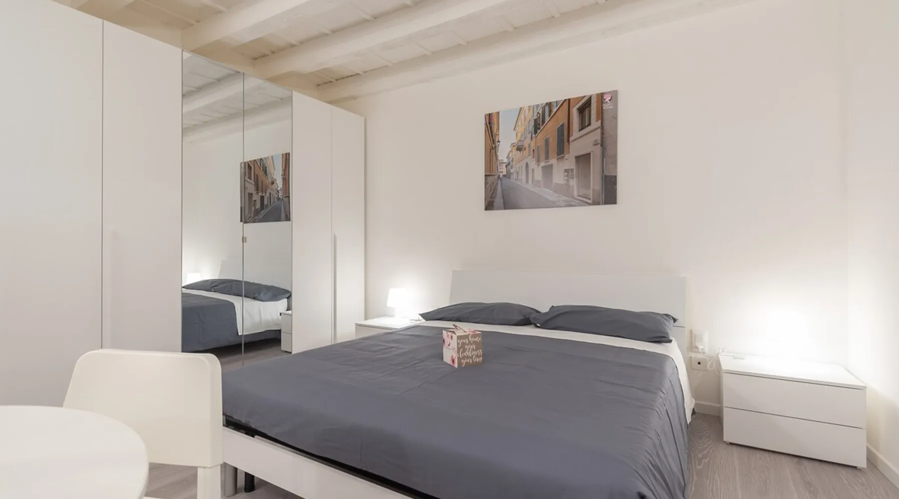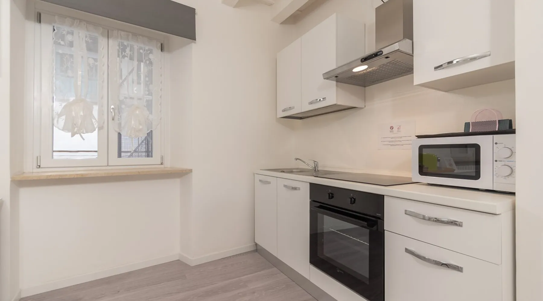 Newly renovated studio apartment located in the heart of the city a few steps from Piazza della Vittoria. Double bed, table, kitchen with kitchenette, oven, microwave, fridge, coffee machine and kettle. Bathroom with shower cubicle. On the ground floor there is a washing machine available to all guests of the building. Registration Details IT017029B4AQO4EYAZ