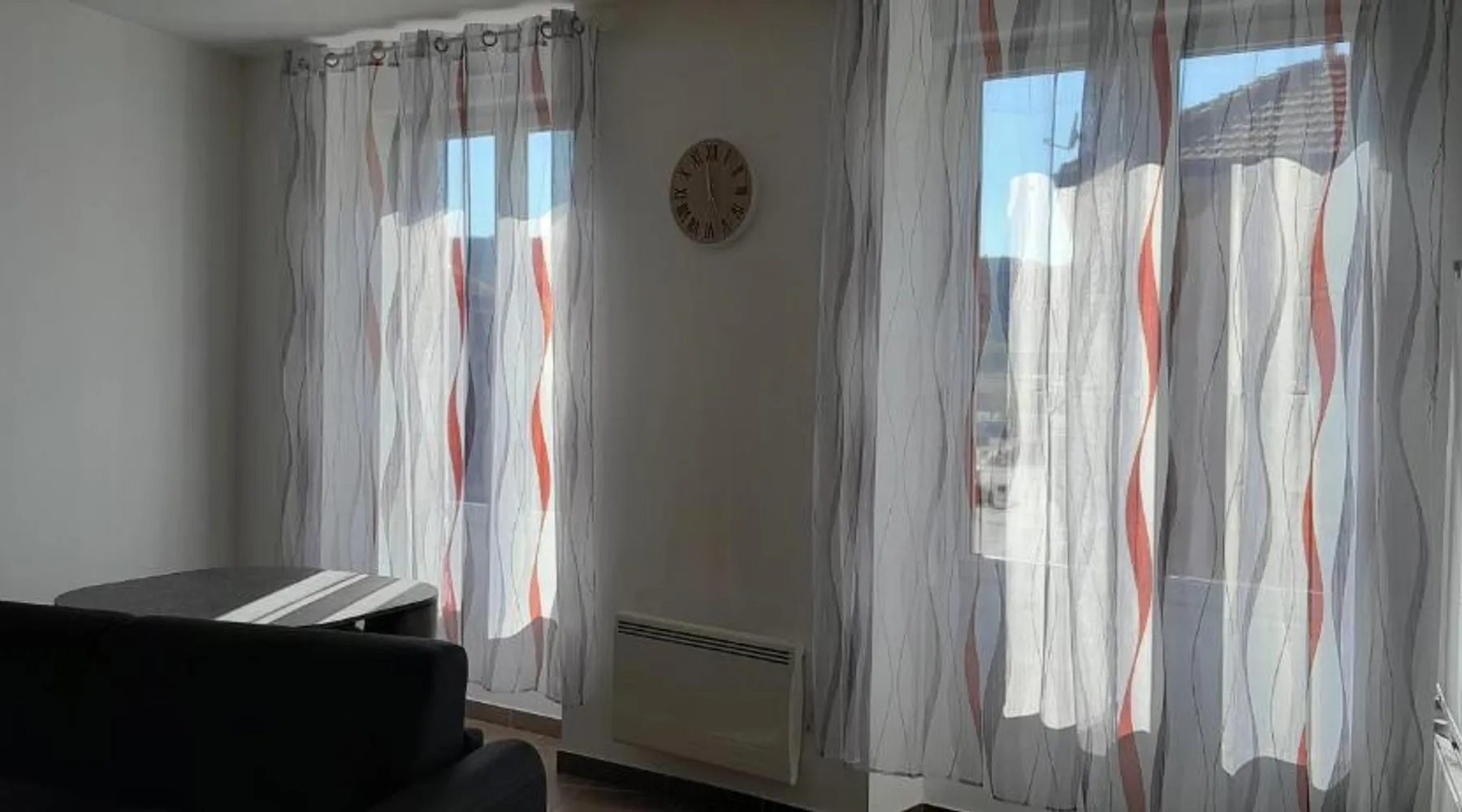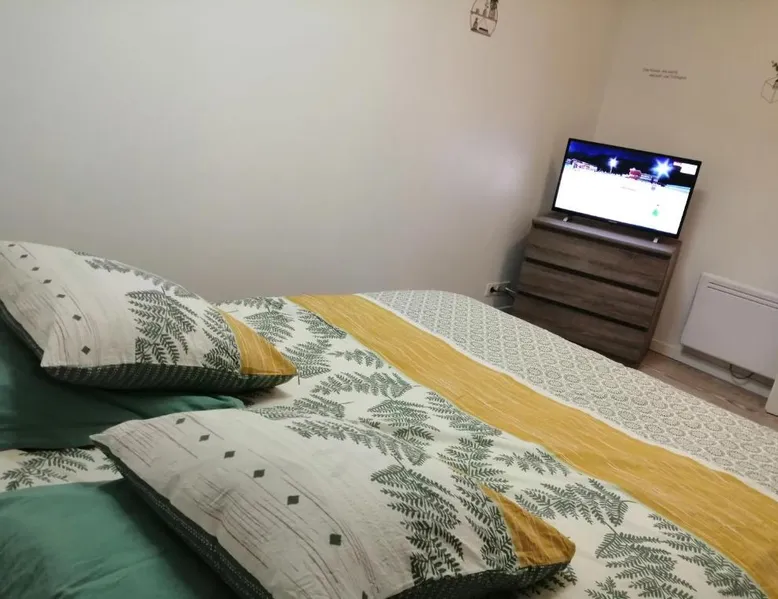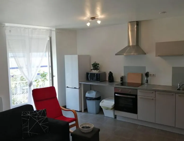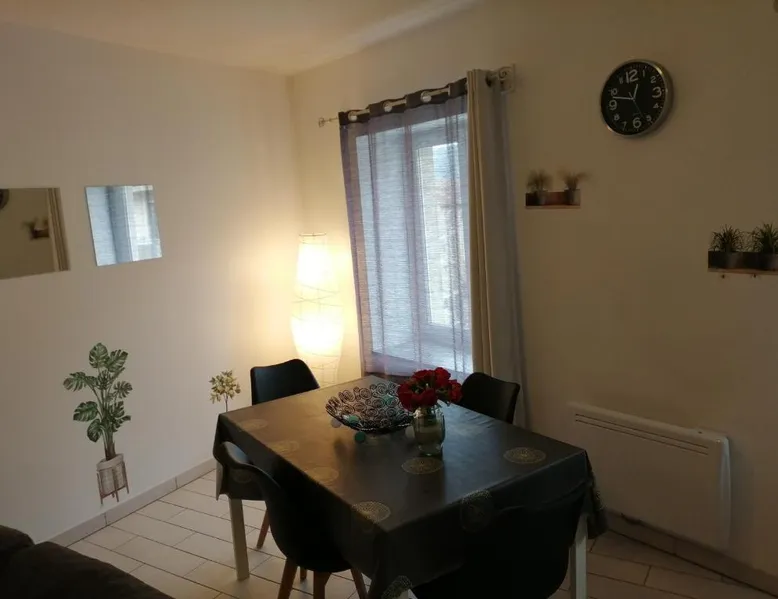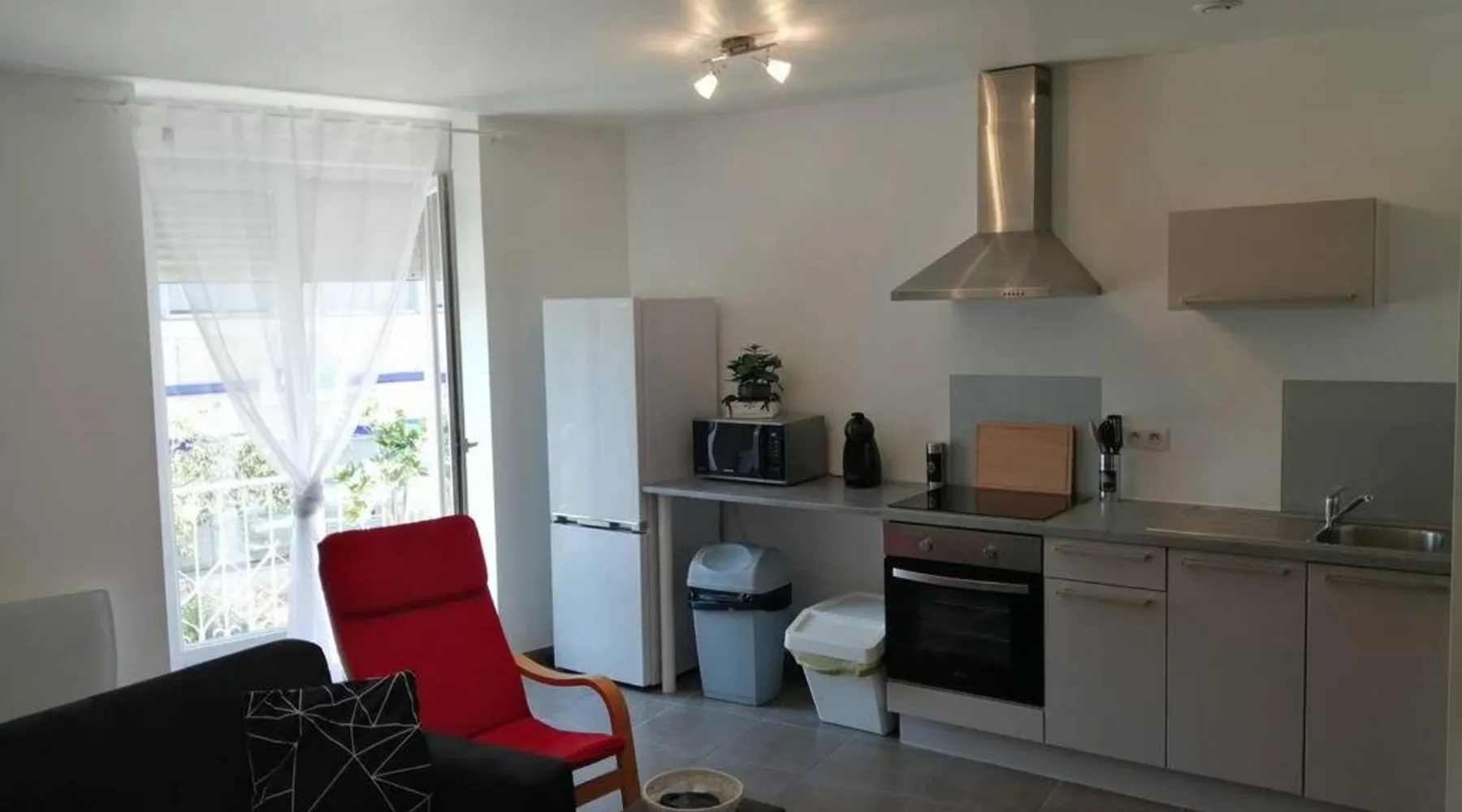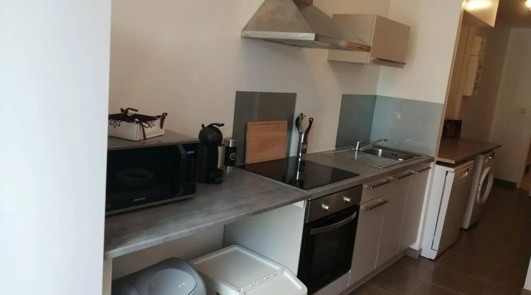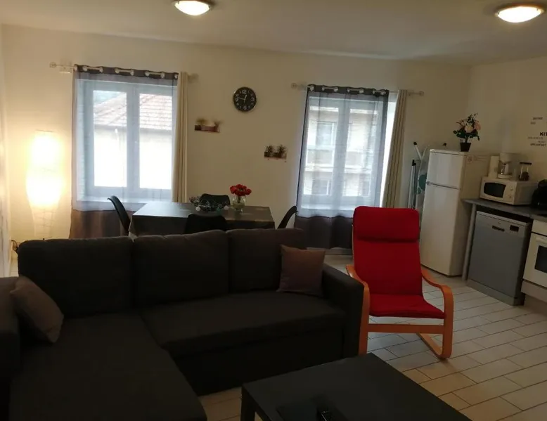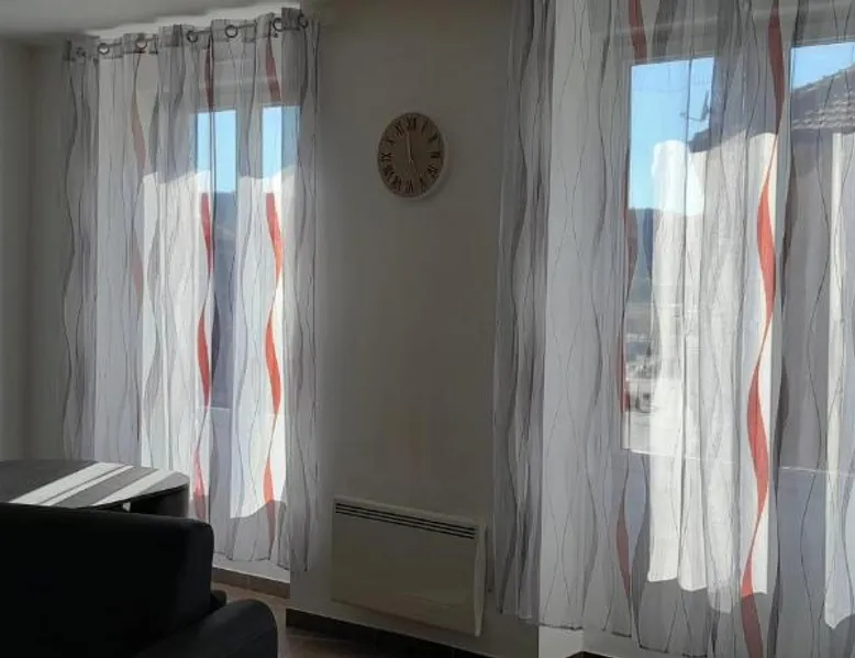 Comfortable Accommodations: Appart'Hôtel Lagnieu in Lagnieu offers a 2-star apartment with free WiFi, private check-in and check-out services, and free on-site parking. Each unit features a private bathroom, kitchen, and city views. Modern Amenities: Guests can enjoy amenities such as a tea and coffee maker, hairdryer, coffee machine, dishwasher, microwave, and TV. Additional features include a balcony, washing machine, and soundproofing. Convenient Location: Located 25 mi from Lyon - Saint Exupery Airport, the property is near attractions like Les Grottes de la Balme (3.7 mi) and Château des Allymes (9.9 mi). Hiking enthusiasts can explore the surrounding mountains. Boasting a private entrance, this apartment includes 1 living room, 1 separate bedroom and 1 bathroom with a shower and a hairdryer. Meals can be prepared in the kitchen, which has a stovetop, a refrigerator, a dishwasher and kitchenware. The apartment has parquet floors, a seating area with a flat-screen TV, soundproof walls, a tea and coffee maker as well as mountain views. The unit has 2 beds.