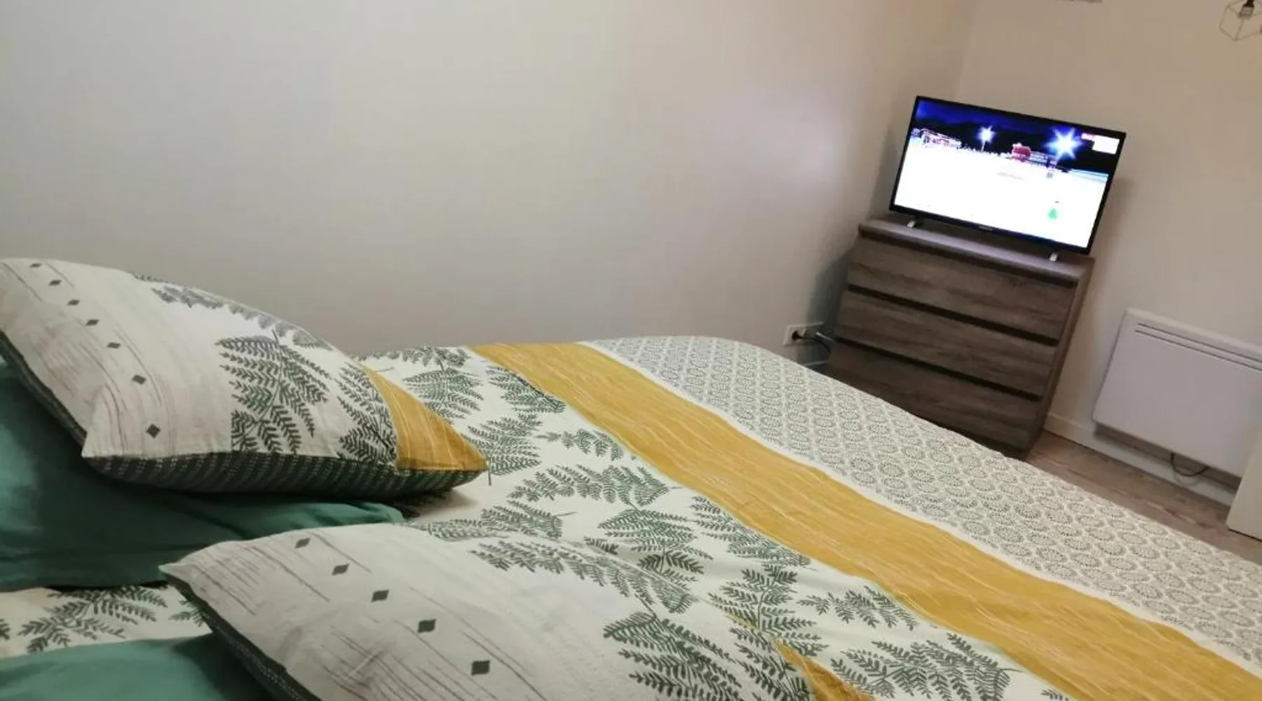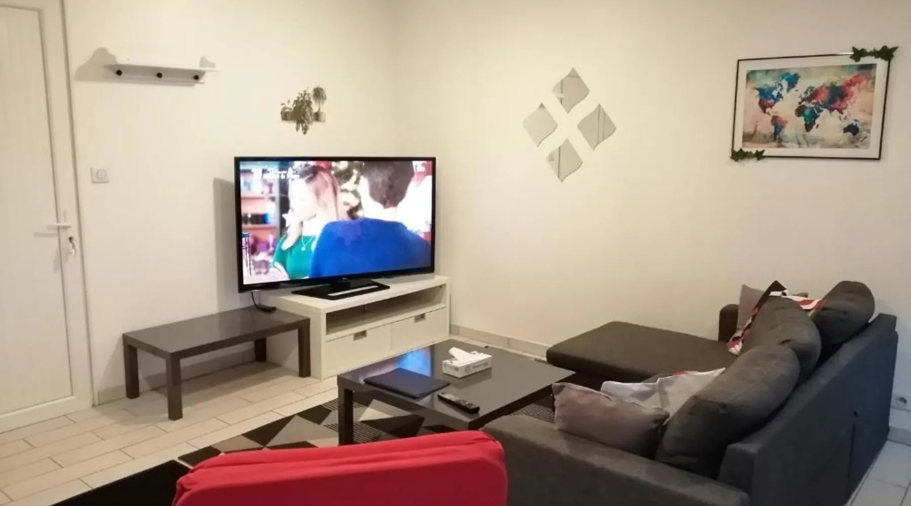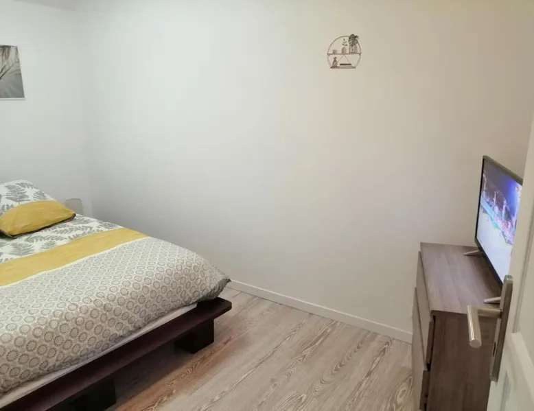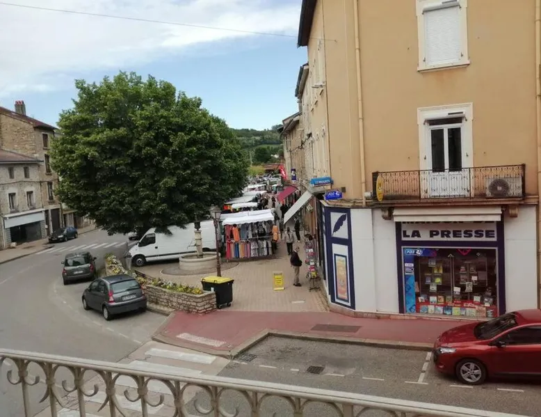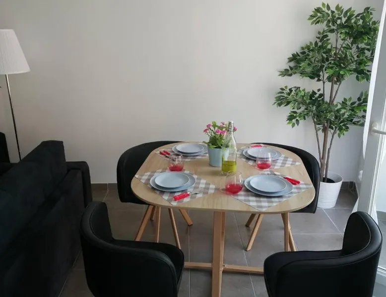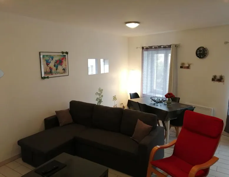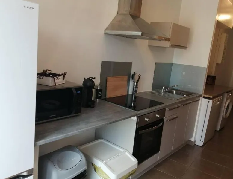 Comfortable Accommodations: Appart'Hôtel Lagnieu in Lagnieu offers a 2-star apartment with free WiFi, private check-in and check-out services, and free on-site parking. Each unit features a private bathroom, kitchen, and city views. Modern Amenities: Guests can enjoy amenities such as a tea and coffee maker, hairdryer, coffee machine, dishwasher, microwave, and TV. Additional features include a balcony, washing machine, and soundproofing. Convenient Location: Located 25 mi from Lyon - Saint Exupery Airport, the property is near attractions like Les Grottes de la Balme (3.7 mi) and Château des Allymes (9.9 mi). Hiking enthusiasts can explore the surrounding mountains. Boasting a private entrance, this apartment includes 1 living room, 1 separate bedroom and 1 bathroom with a shower and a hairdryer. Meals can be prepared in the kitchen, which has a stovetop, a refrigerator, a dishwasher and kitchenware. The apartment has parquet floors, a seating area with a flat-screen TV, soundproof walls, a tea and coffee maker as well as mountain views. The unit has 2 beds.
