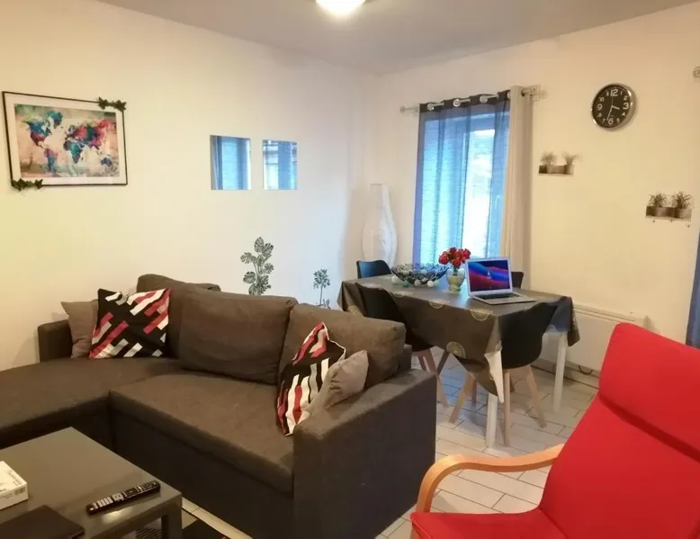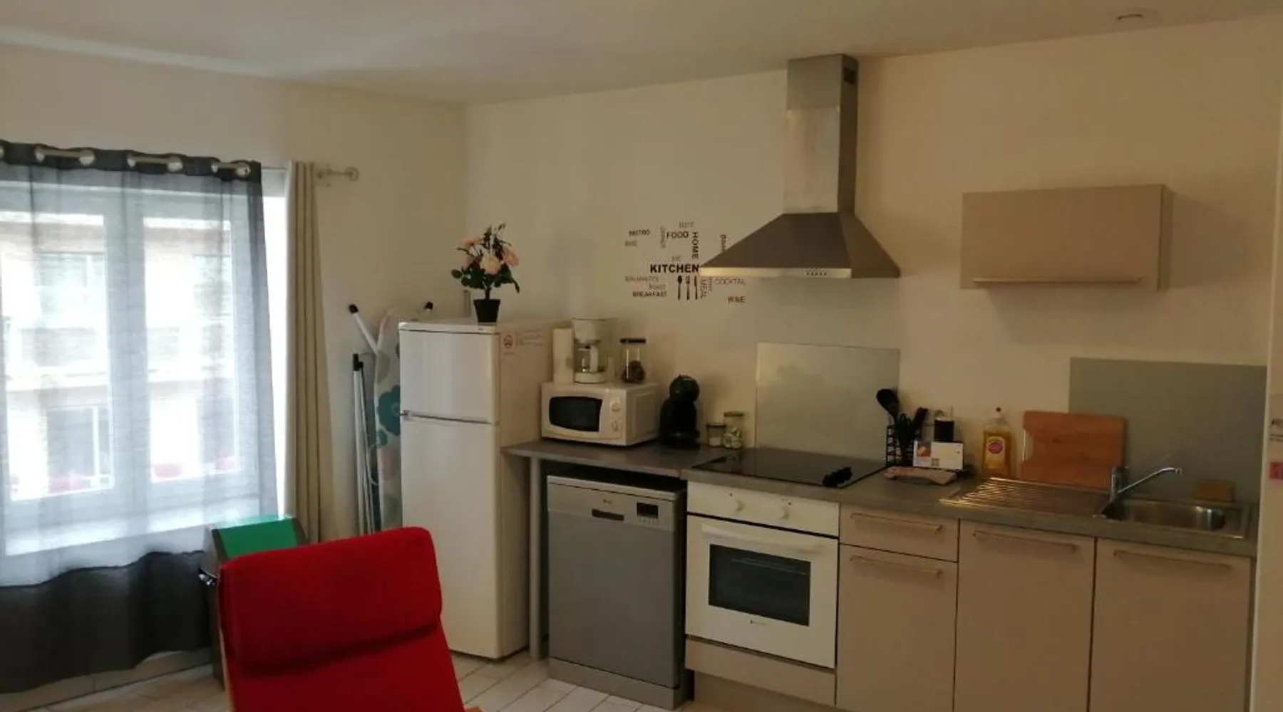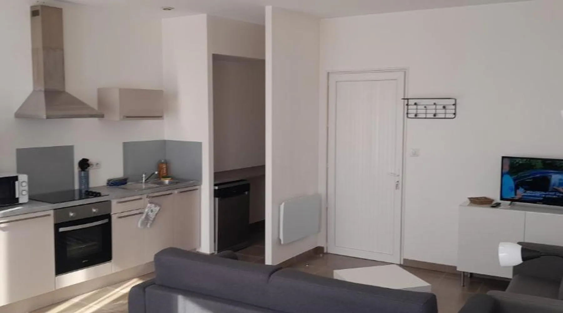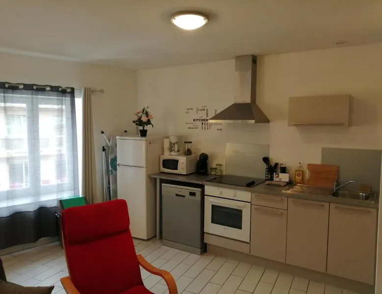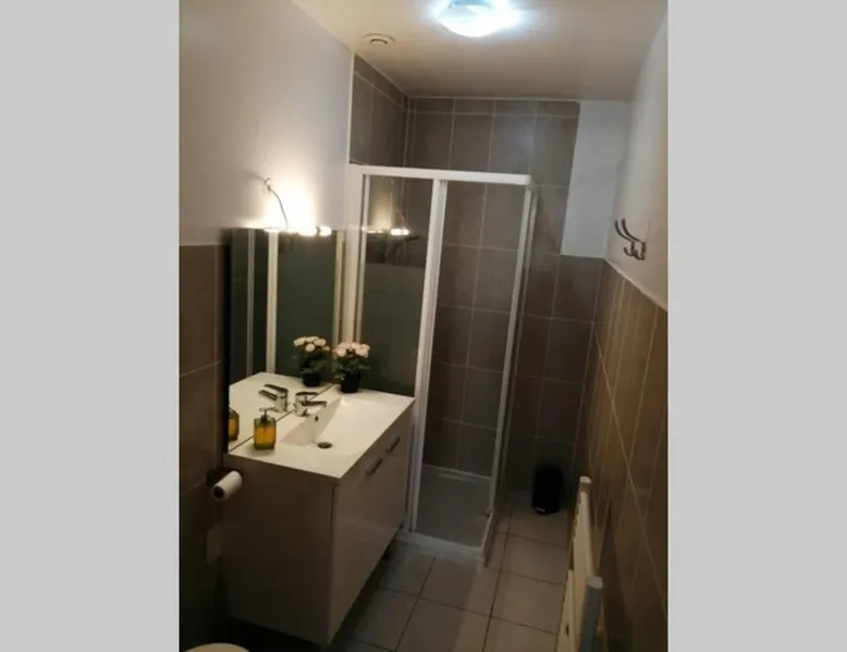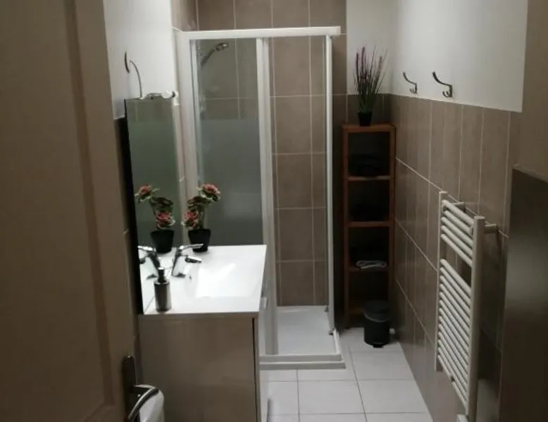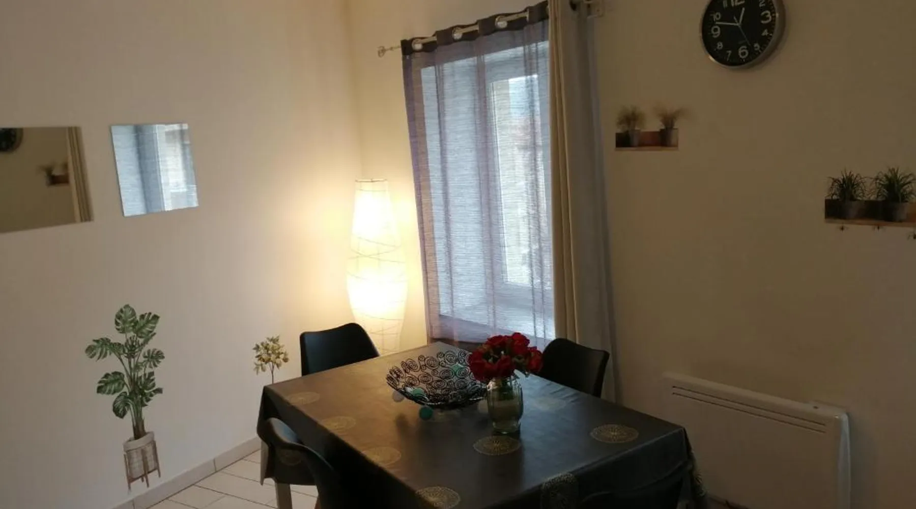 Comfortable Accommodations: Appart'Hôtel Lagnieu in Lagnieu offers a 2-star apartment with free WiFi, private check-in and check-out services, and free on-site parking. Each unit features a private bathroom, kitchen, and city views. Modern Amenities: Guests can enjoy amenities such as a tea and coffee maker, hairdryer, coffee machine, dishwasher, microwave, and TV. Additional features include a balcony, washing machine, and soundproofing. Convenient Location: Located 25 mi from Lyon - Saint Exupery Airport, the property is near attractions like Les Grottes de la Balme (3.7 mi) and Château des Allymes (9.9 mi). Hiking enthusiasts can explore the surrounding mountains. Boasting a private entrance, this apartment includes 1 living room, 1 separate bedroom and 1 bathroom with a shower and a hairdryer. Meals can be prepared in the kitchen, which has a stovetop, a refrigerator, a dishwasher and kitchenware. The apartment has parquet floors, a seating area with a flat-screen TV, soundproof walls, a tea and coffee maker as well as mountain views. The unit has 2 beds.
