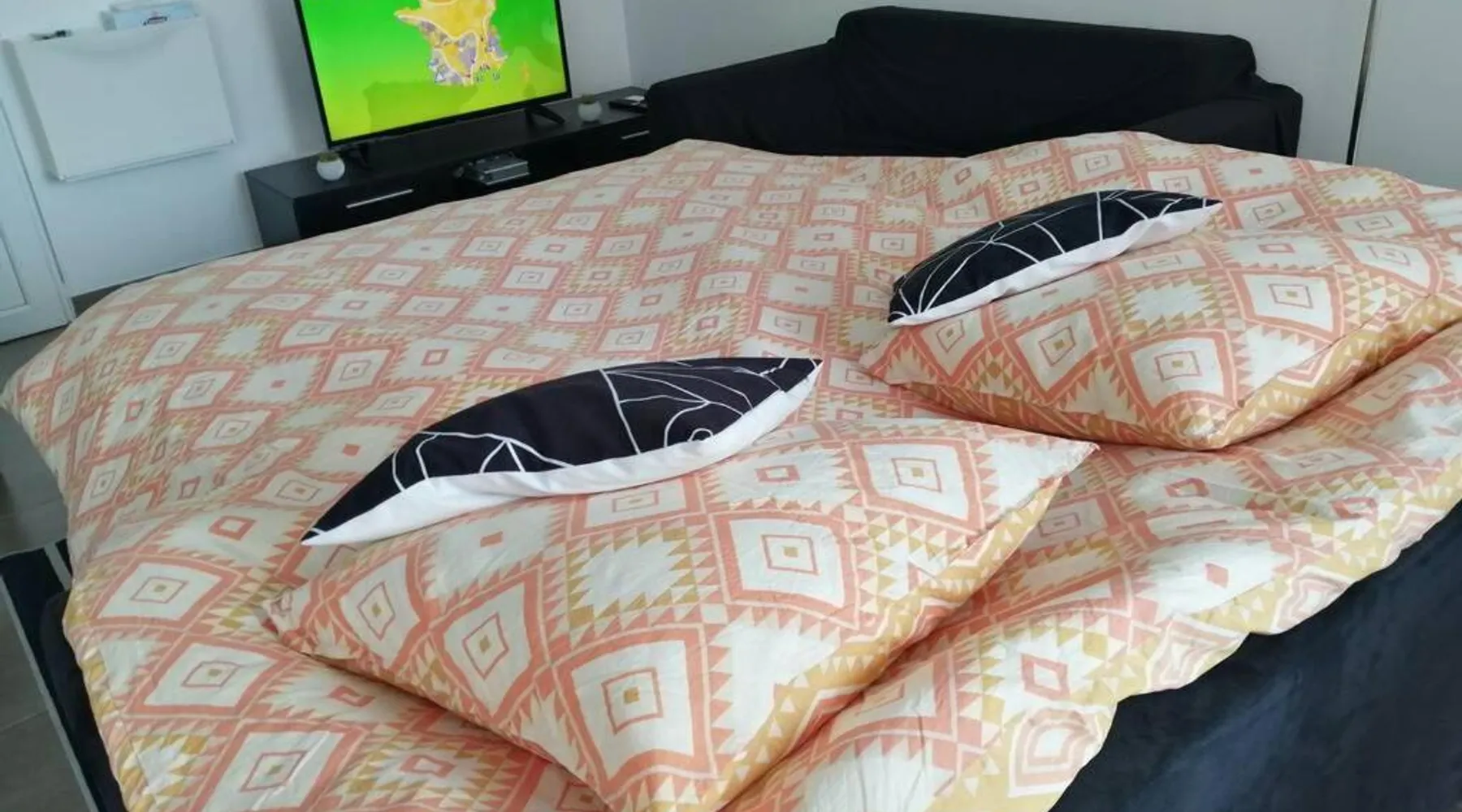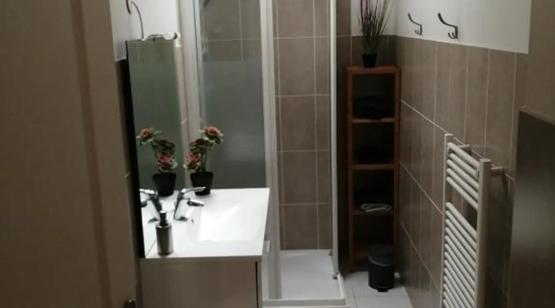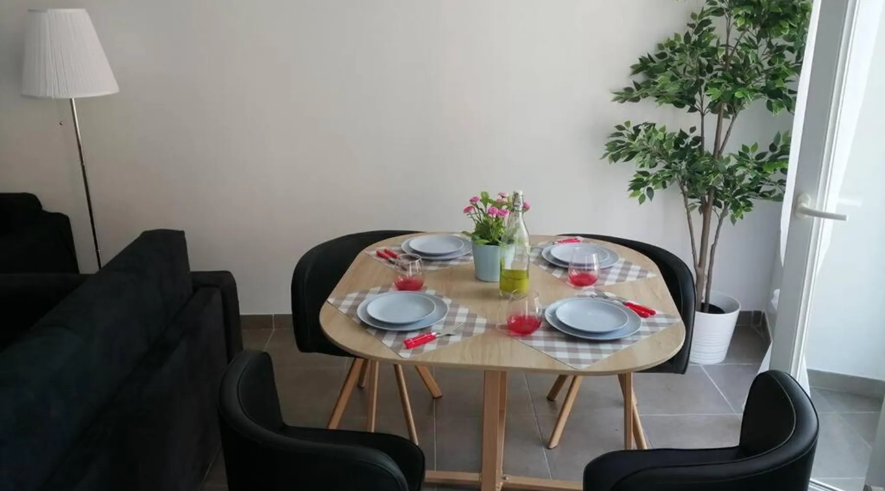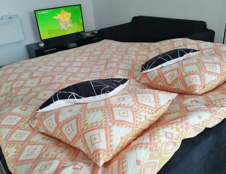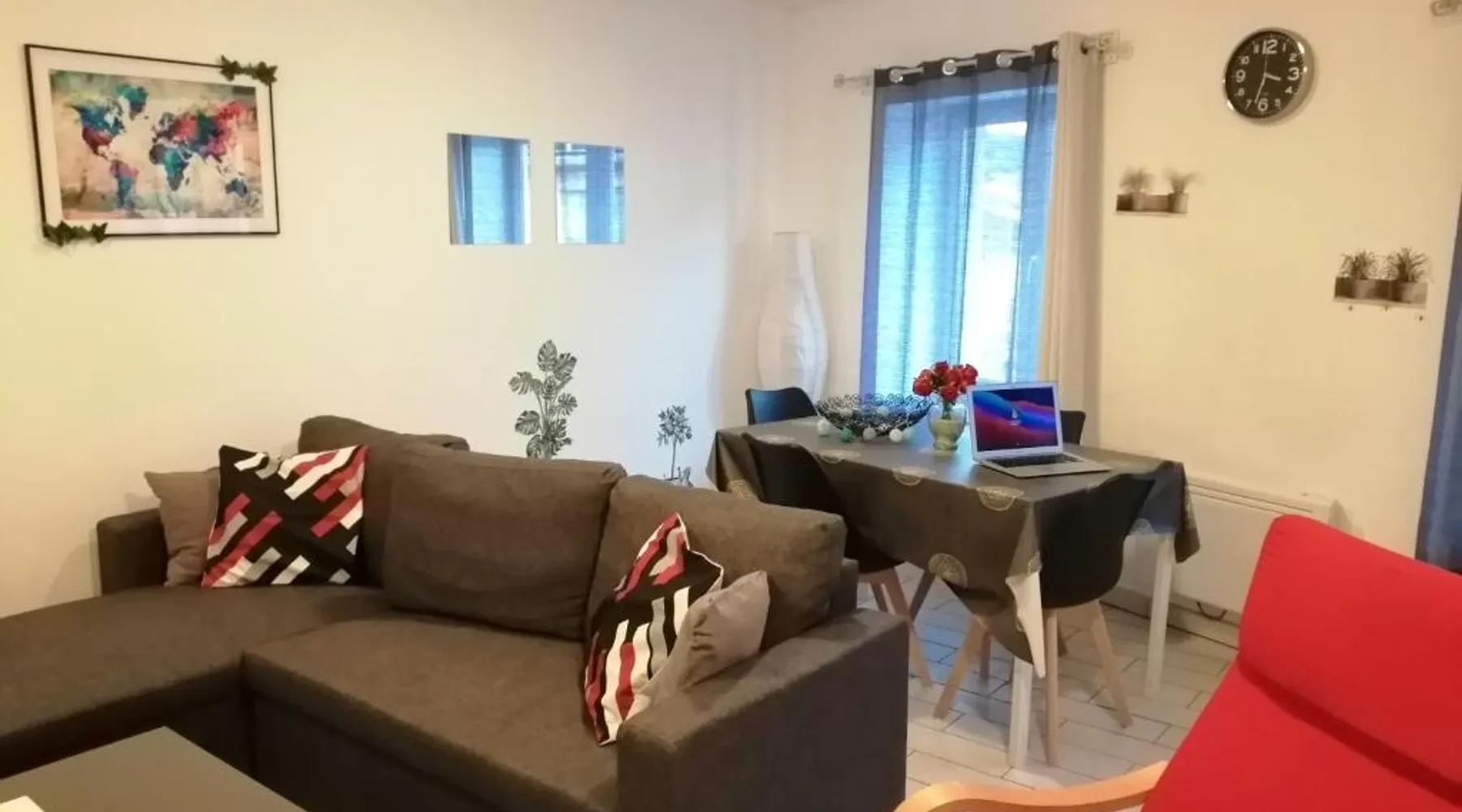 Comfortable Accommodations: Appart'Hôtel Lagnieu in Lagnieu offers a 2-star apartment with free WiFi, private check-in and check-out services, and free on-site parking. Each unit features a private bathroom, kitchen, and city views. Modern Amenities: Guests can enjoy amenities such as a tea and coffee maker, hairdryer, coffee machine, dishwasher, microwave, and TV. Additional features include a balcony, washing machine, and soundproofing. Convenient Location: Located 25 mi from Lyon - Saint Exupery Airport, the property is near attractions like Les Grottes de la Balme (3.7 mi) and Château des Allymes (9.9 mi). Hiking enthusiasts can explore the surrounding mountains. Boasting a private entrance, this apartment includes 1 living room, 1 separate bedroom and 1 bathroom with a shower and a hairdryer. Meals can be prepared in the kitchen, which has a stovetop, a refrigerator, a dishwasher and kitchenware. The apartment has parquet floors, a seating area with a flat-screen TV, soundproof walls, a tea and coffee maker as well as mountain views. The unit has 2 beds.