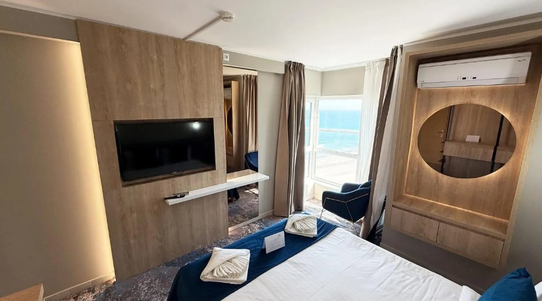 Comfortable Accommodations: STEAUA DE MARE - Olimp Resort in Mun Mangalia offers family rooms with private bathrooms, air-conditioning, and free WiFi. Each room includes a mini-bar, TV, and soundproofing for a pleasant stay. Exceptional Facilities: Guests can relax in the garden or on the terrace, enjoy the swimming pool, and dine at the restaurant. The hotel provides a bar, lounge, and free on-site private parking. Additional services include private check-in and check-out, a 24-hour front desk, and concierge. Prime Location: Olimp Beach is a 3-minute walk away, while attractions such as Oak Tree Reserve and Paradis Land Neptun are 1.9 mi distant. Mihail Kogălniceanu International Airport is 38 mi from the property. Highly rated for its attentive staff and scenic views. This apartment consists of 1 living room, 1 separate bedroom and 1 bathroom with a bath or a shower and free toiletries. The apartment features carpeted floors, a seating area with a flat-screen TV with cable channels, air conditioning, soundproof walls, as well as a mini-bar. The unit offers 2 beds.