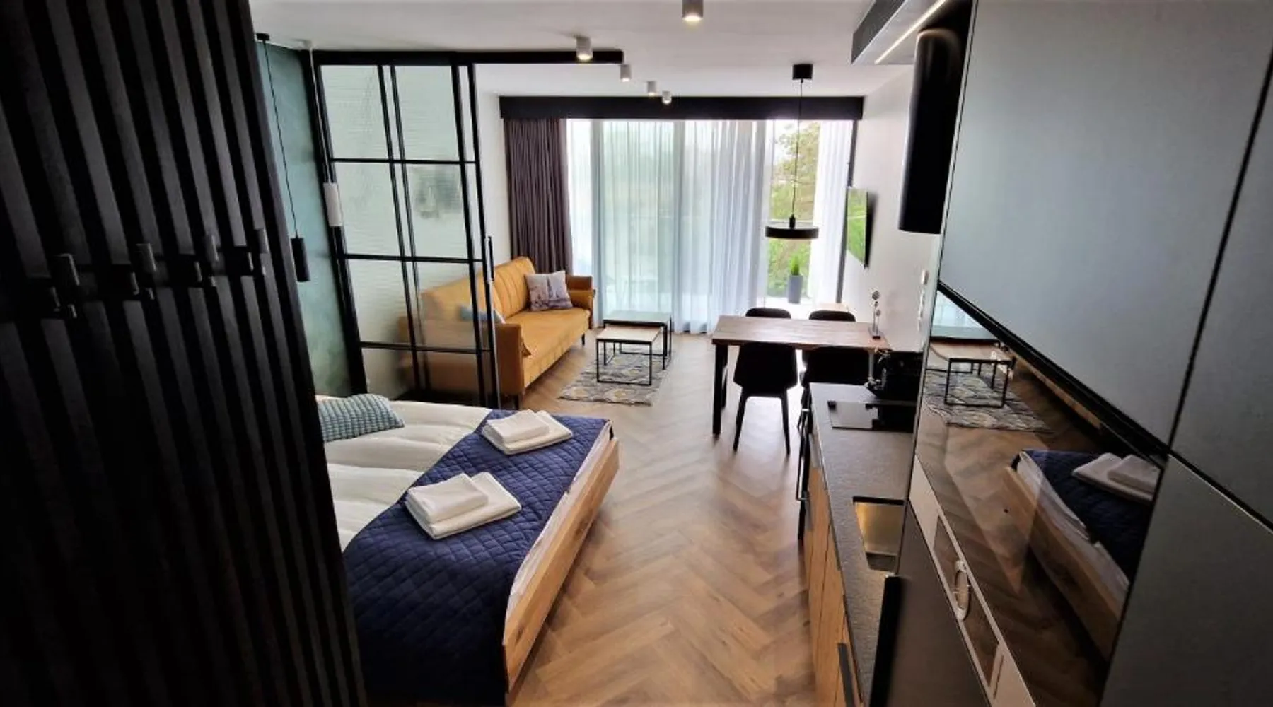 Elegant Accommodations: Lake View Mielno in Mielno offers a comfortable apartment with one bedroom and a living room. Guests enjoy a terrace, balcony, and free WiFi throughout the property. Exceptional Facilities: The apartment features a rooftop swimming pool, terrace, and free on-site private parking. Additional amenities include a elevator, family rooms, and a fully equipped kitchenette with modern appliances. Prime Location: Located less than 0.6 mi from Mielno Beach, the property is 89 mi from Solidarity Szczecin-Goleniów Airport. Nearby attractions include Friendship Promenade (2.5 mi) and Kolobrzeg Old Town Hall (29 mi). This apartment consists of 1 living room, 1 separate bedroom and 1 bathroom with a walk-in shower and free toiletries. In the fully equipped kitchenette, guests will find a stovetop, a refrigerator, a dishwasher and kitchenware. Featuring a terrace with lake views, this apartment also provides a tea and coffee maker and a flat-screen TV with cable channels. The unit offers 2 beds.