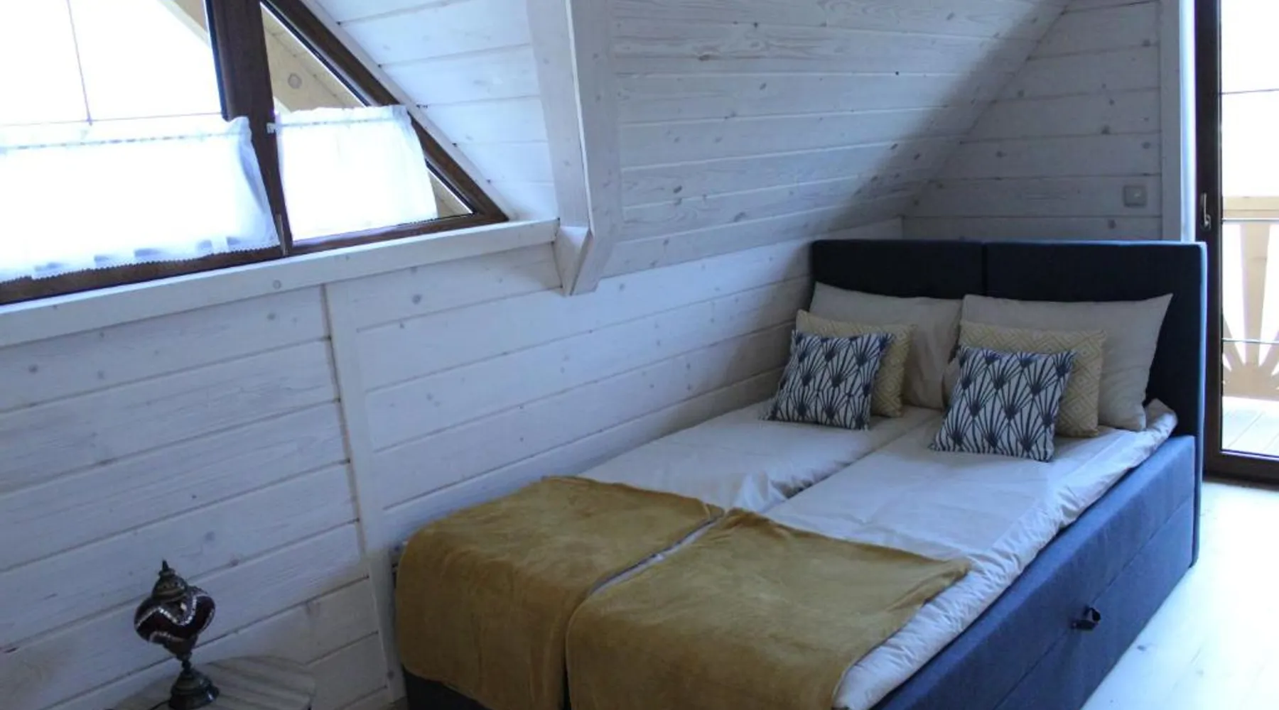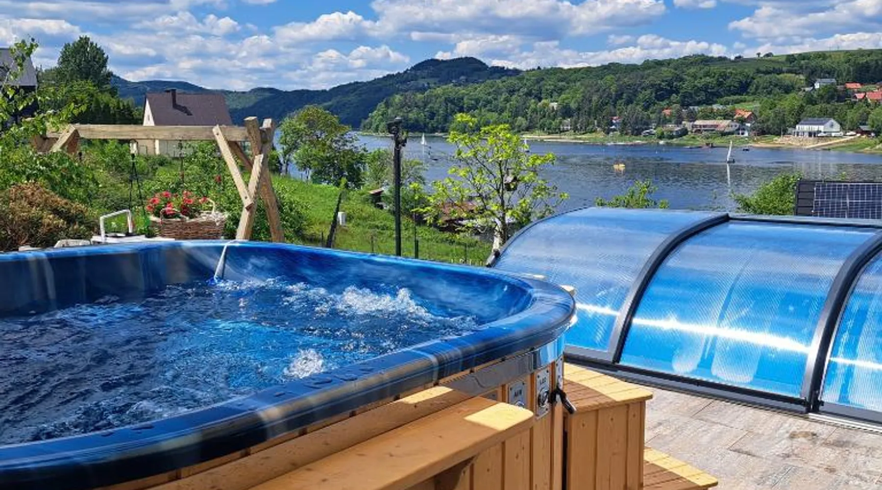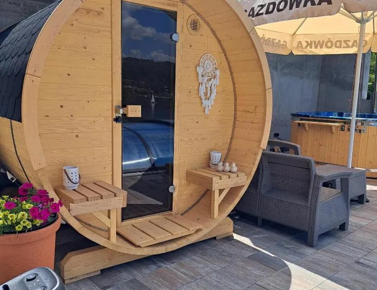 Beachfront Location: Gazdówka in Gródek nad Dunajcem offers direct beachfront access with stunning lake and mountain views. Guests can relax by the swimming pool with a view or sun terrace. Comfortable Amenities: The holiday home features a kitchenette, private bathroom, and free WiFi. Additional amenities include a terrace, balcony, and parquet floors. Outdoor Activities: Guests can enjoy fishing and hiking in the surrounding area. The property provides free on-site private parking and a children's playground. Nearby Attractions: Nowy Wiśnicz Castle is 26 mi away, and John Paul II International Kraków–Balice Airport is 68 mi from the property. The studio provides a wardrobe, a tiled floor, as well as a private bathroom boasting a shower and a hairdryer. Guests will find a stovetop, a refrigerator, kitchenware and a microwave in the well-fitted kitchenette. The studio also includes a barbecue. The studio features a private entrance, a tea and coffee maker, a dining area, a flat-screen TV with satellite channels, as well as lake views.