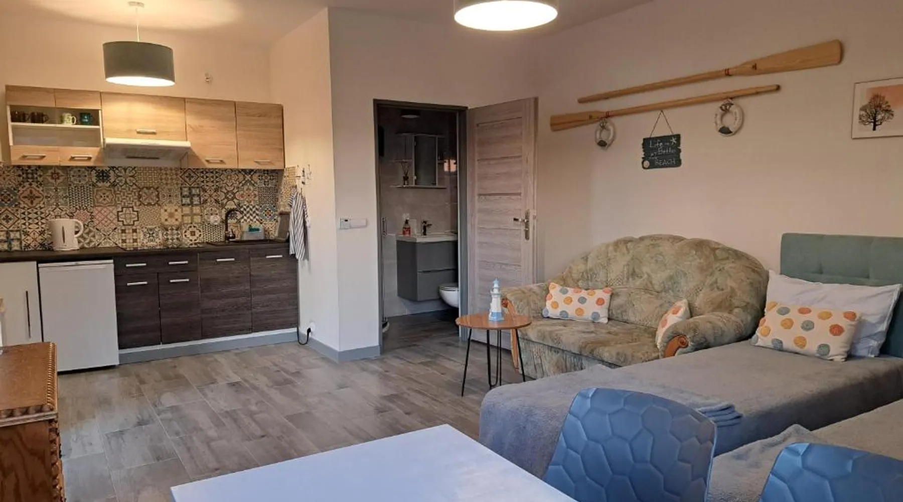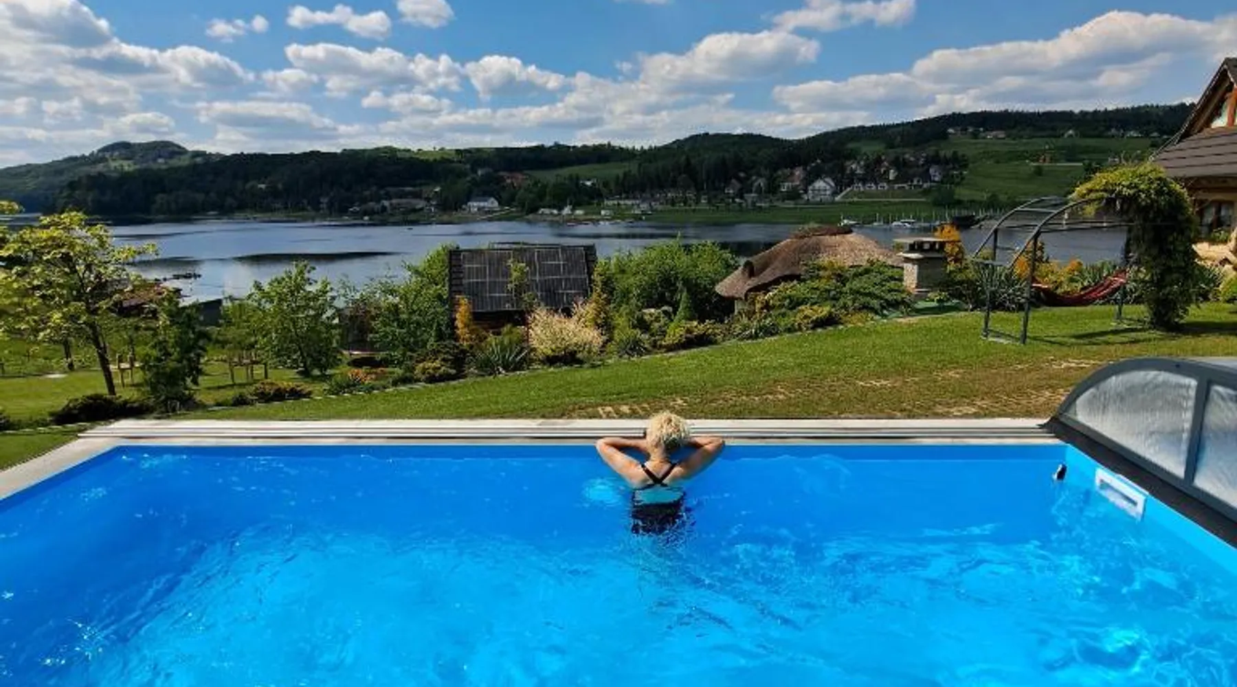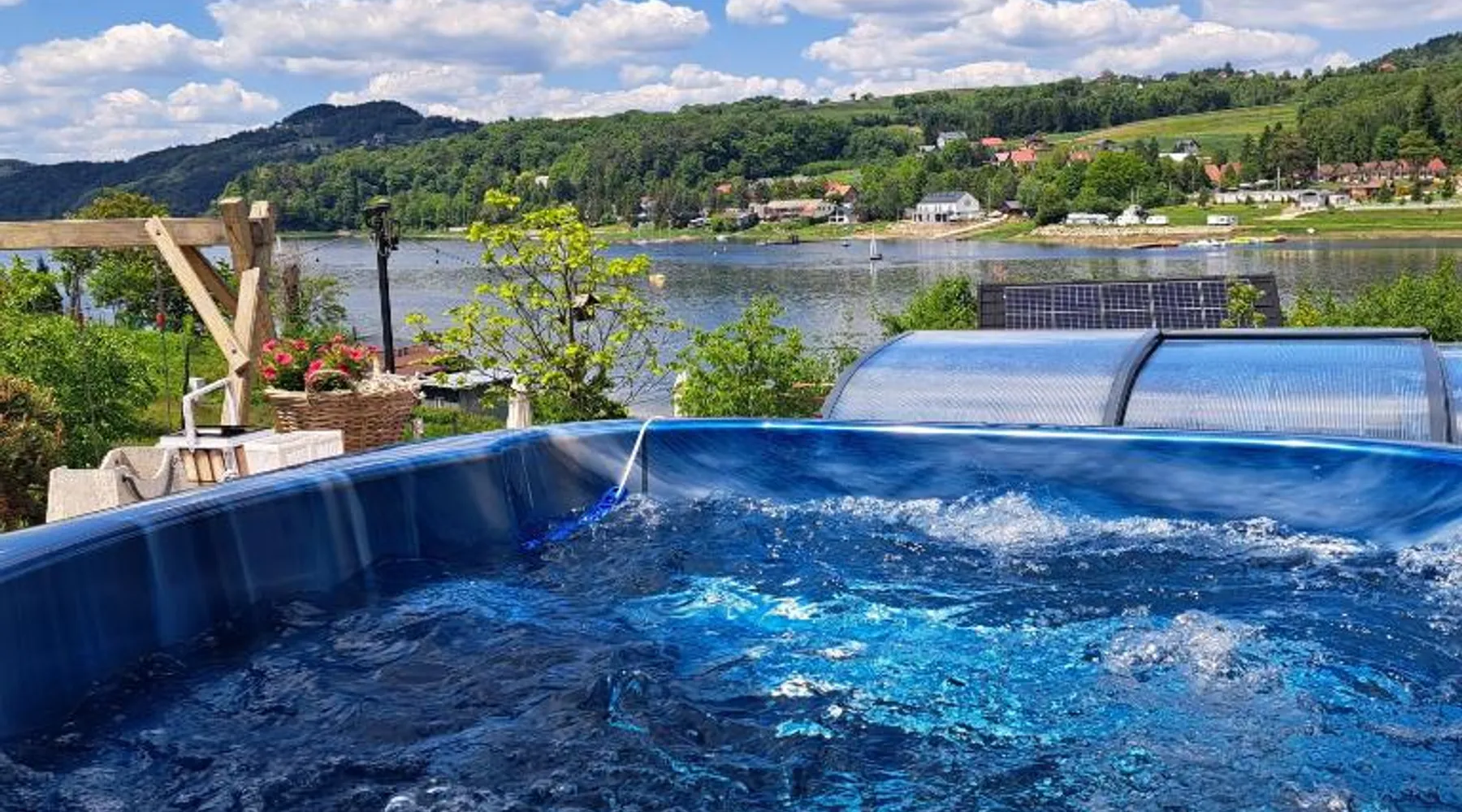 Beachfront Location: Gazdówka in Gródek nad Dunajcem offers direct beachfront access with stunning lake and mountain views. Guests can relax by the swimming pool with a view or sun terrace. Comfortable Amenities: The holiday home features a kitchenette, private bathroom, and free WiFi. Additional amenities include a terrace, balcony, and parquet floors. Outdoor Activities: Guests can enjoy fishing and hiking in the surrounding area. The property provides free on-site private parking and a children's playground. Nearby Attractions: Nowy Wiśnicz Castle is 26 mi away, and John Paul II International Kraków–Balice Airport is 68 mi from the property. The studio provides a wardrobe, a tiled floor, as well as a private bathroom boasting a shower and a hairdryer. Guests will find a stovetop, a refrigerator, kitchenware and a microwave in the well-fitted kitchenette. The studio also includes a barbecue. The studio features a private entrance, a tea and coffee maker, a dining area, a flat-screen TV with satellite channels, as well as lake views.