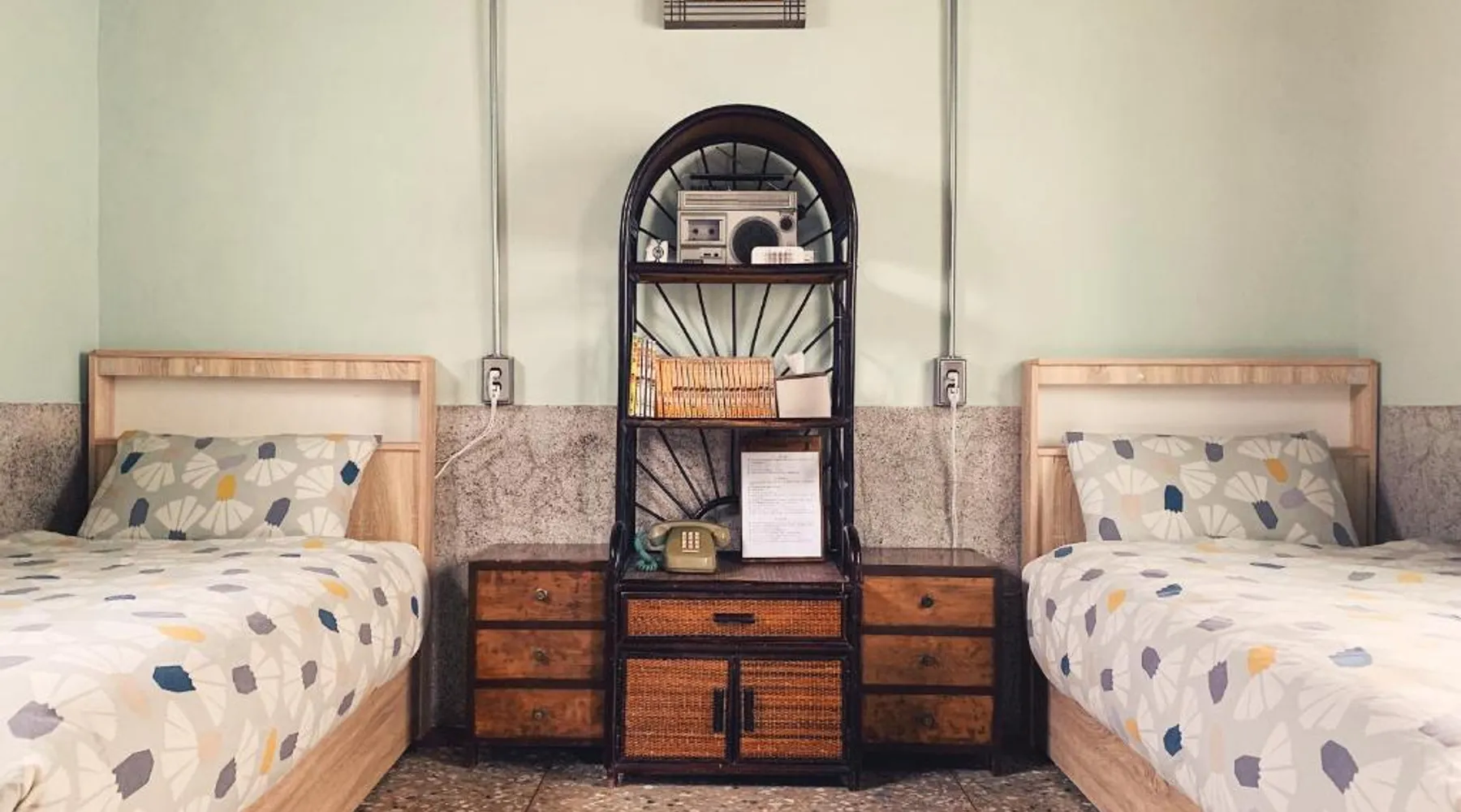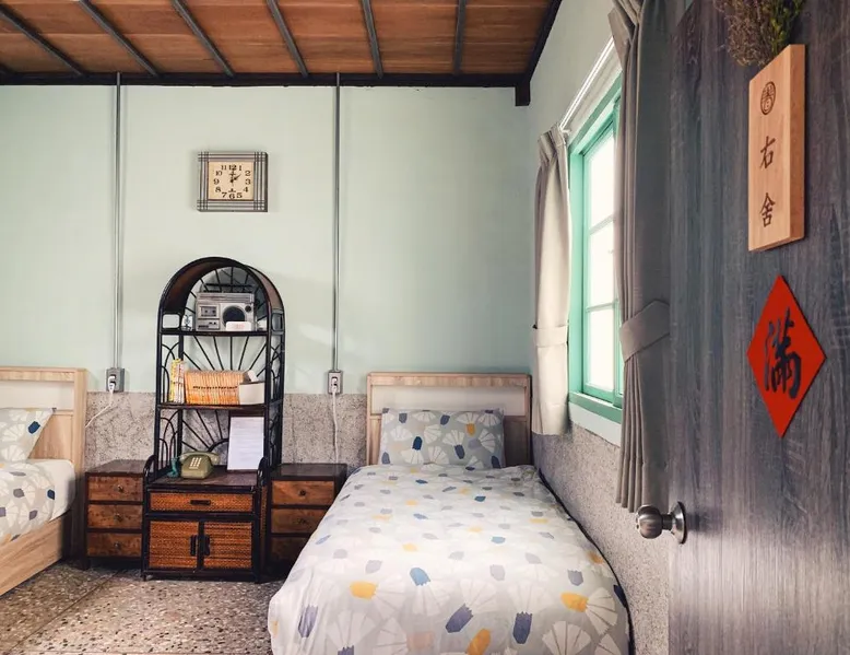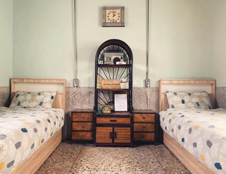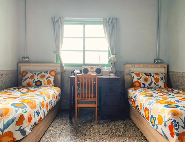 Comfortable Accommodations: 眷待期休憩所眷村民宿 in Kaohsiung offers homestay rooms with private bathrooms, air-conditioning, and free WiFi. Each room includes a work desk, parquet floors, and a TV. Leisure Facilities: Guests can relax on the sun terrace, enjoy the garden, and use free bicycles. The property features a lounge, picnic area, games room, and full-day security. Convenient Location: Located 3.7 mi from Kaohsiung International Airport and near attractions such as the National Science and Technology Museum (3.7 mi) and Liuhe Tourist Night Market (4.3 mi). Hiking trails are available in the surroundings. Guest Satisfaction: Highly rated for its attentive staff and comfortable rooms, the homestay ensures a pleasant stay for all visitors. This air-conditioned twin room includes a flat-screen TV with streaming services, a private bathroom as well as a patio. The unit offers 2 beds.