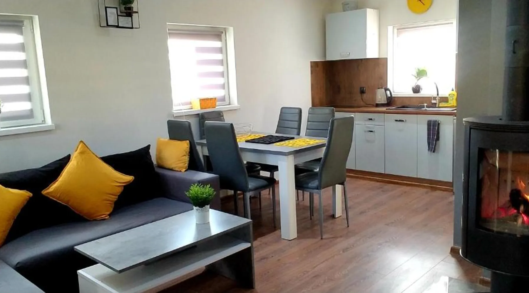Comfortable Accommodations: SunSet Radków in Radków offers a holiday home with a garden and terrace. Free WiFi is available in public areas. Modern Amenities: The property features a private bathroom, kitchen, fireplace, and dining area. Additional amenities include a sofa bed, TV, and free on-site private parking. Convenient Location: Located 26 mi from Errant Rocks and 31 mi from the Open Air Museum of Folk Culture of Sudety Foothills. Nearby attractions include Pałac Ścinawka Średnia (8.1 mi) and Barokní kašna (9.3 mi). Guest Satisfaction: Highly rated for its convenient location, friendly host, and room cleanliness. The fireplace is the standout feature of this holiday home. Boasting a private entrance, this holiday home also comes with 1 living room, 2 separate bedrooms and 1 bathroom with a shower. Guests can make meals in the kitchen that features a stovetop, a refrigerator, kitchenware and a microwave. Featuring a terrace with garden views, this holiday home also features a dining area and a flat-screen TV. The unit has 5 beds.