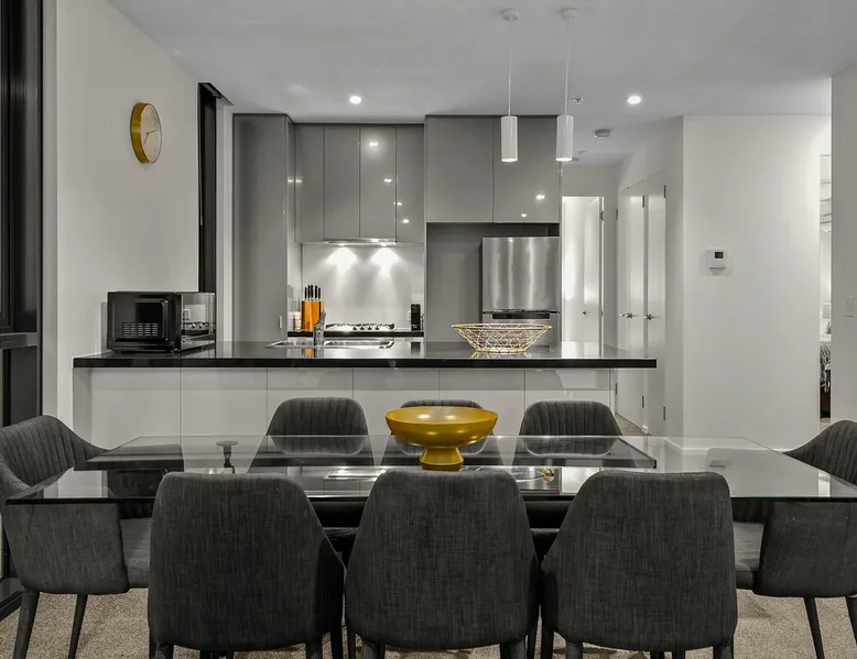 This is a truly stunning apartment! Situated in the heart of Southbank where you are a moment's walk from the action. As roomy as a house with high-quality modern fittings and furniture, it will not disappoint even the most discerning guests. The space Spacious Apartment with Large Terrace, Pool & Parking This generously sized apartment offers comfort, space, and a great location in the heart of Southbank—perfect for families or groups. The open-plan living and dining area is ideal for relaxing together, with a large TV, fully equipped kitchen, and all the essentials you need for a comfortable stay. Free Wi-Fi is included. One of the standout features of this property is the large private terrace, providing an ideal spot for outdoor dining, relaxing in the fresh air, or simply unwinding after a day exploring Melbourne. Bedrooms: • The master bedroom is privately positioned with a wardrobe and an ensuite bathroom featuring floor-to-ceiling windows. • The two other bedrooms are spacious and filled with natural light. These rooms share a central bathroom. • Bedding in both secondary bedrooms can be arranged as either king beds or two singles—just let us know your preference in advance. Additional Guests: Fold-up beds are available to accommodate extra guests if needed. Building Amenities: Enjoy access to an indoor heated swimming pool, outdoor tennis court, and barbecue area—perfect for a bit of downtime during your stay. Parking: Secure undercover parking for one vehicle is included (maximum height clearance: 2.1m). Additional parking may be available upon request for an extra fee. Other Details: • Four sets of keys are provided for your group’s convenience. • Please note: Decorative items such as art and ornaments may vary slightly from the photos, as pieces are occasionally updated or replaced. Guest access Check-in takes place at our office, where we’ll meet you in person, provide directions to the property, and go over everything you need to know to make your stay as smooth as possible. If you’re ever unsure about anything—whether it’s getting to the apartment, how something works, or local recommendations—we’re always available and happy to help. Other things to note NO SMOKING is allowed anywhere inside the apartment or on the balcony. The ID of the guest who has made the booking is required to be presented at check-in unless prior arrangements have been made. If you have a large group and need multiple apartments in the same building/vicinity please advise. ** Tea and coffee are provided free of charge. ** WiFi broadband internet is provided free of charge. ** Hair dryer provided for your convenience. ** High-quality hangers for your clothes. ** Reverse cycle heating/air-con **Early check-in, when available, is $50/hr, payable at check-in ** After 10 pm Check-in $25 ** Late Check-out (when available) $50/hr or part thereof ** Replacement Key Set $80 ** Replacement Remote $100 ** Mid-Stay Cleaning Service $150/clean ** Additional Cleaning $40/hour (when required) ** Fold Up Bed $50/night ** Additional Car Park $20/night (when available)