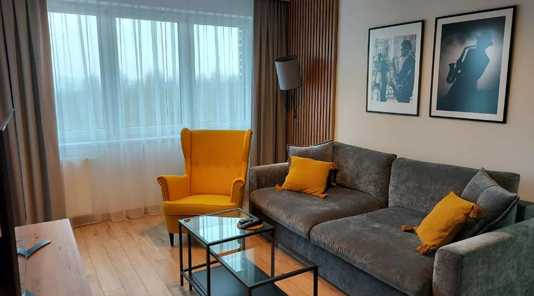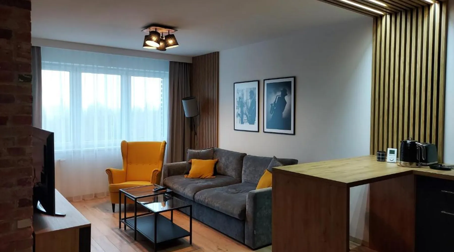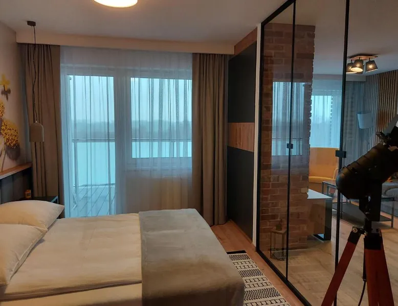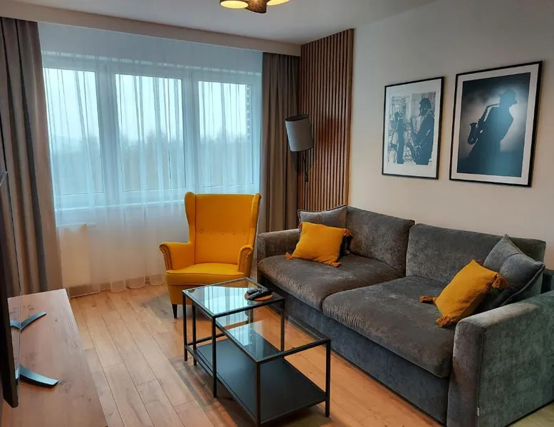 Comfortable Living Space: Patio Jazz in Koszalin offers a one-bedroom apartment with a terrace, balcony, and kitchenette. The living room includes a work desk and soundproofing for a relaxing stay. Modern Amenities: Guests enjoy free WiFi, a fully equipped kitchen with a coffee machine, dishwasher, and stovetop. Additional features include a refrigerator, TV, and parquet floors. Convenient Facilities: The apartment provides free on-site private parking, a elevator, and bicycle parking. Free WiFi is available throughout the property. Local Attractions: Located 2.5 mi from Koszalin Train Station and Water Park Koszalin, the apartment is 89 mi from Solidarity Szczecin-Goleniów Airport. Nearby attractions include Kolobrzeg Old Town Hall (29 mi) and Kołobrzeg Railway Station (30 mi). An ice-skating rink is also in the surroundings. This apartment includes 1 living room, 1 separate bedroom and 1 bathroom with a shower and a hairdryer. The fully equipped kitchen has a stovetop, a refrigerator, a dishwasher and kitchenware. This apartment features soundproof walls, a tea and coffee maker, a flat-screen TV and a terrace. The unit has 1 bed.