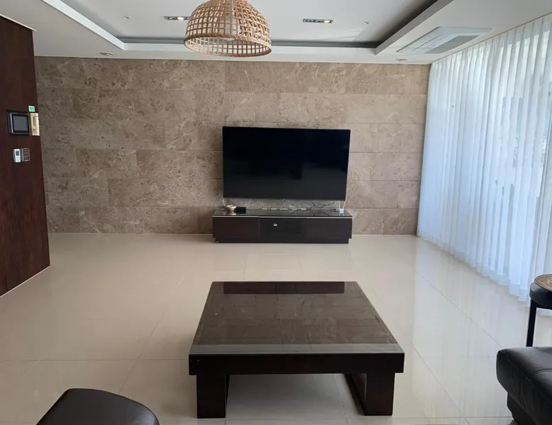 Prime Location: Haeundae Luxury House in Busan offers a beachfront setting with a private beach area. Haeundae Beach is just a few steps away, while Haeundae Station is a 12-minute walk. Dalmaji Hill lies 0.9 mi from the property. Exceptional Facilities: Guests enjoy a fitness center, indoor and plunge pools, terrace, and free WiFi. Additional amenities include a hot tub, kids' pool, and themed dinner nights. Comfortable Accommodations: The apartment features three bedrooms and three bathrooms, a living room, and a fully equipped kitchen. Sea views, air-conditioning, and a balcony enhance the stay. Nearby Attractions: Gimhae International Airport is 16 mi away. Points of interest include BEXCO (2.1 mi), Busan Museum of Art (2.4 mi), and Gwangan Bridge (6.2 mi). The private pool and hot tub are the standout features of this apartment. Boasting a private entrance, this air-conditioned apartment comes with 1 living room, 3 separate bedrooms and 3 bathrooms with a bath and a shower. Guests can make meals in the kitchen that features a stovetop, a refrigerator, kitchenware and an oven. The spacious apartment features a washing machine, a dining area, a wardrobe, a flat-screen TV with streaming services, as well as sea views. The unit has 6 beds.