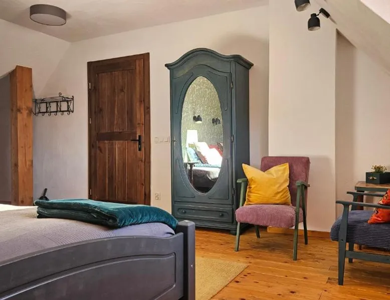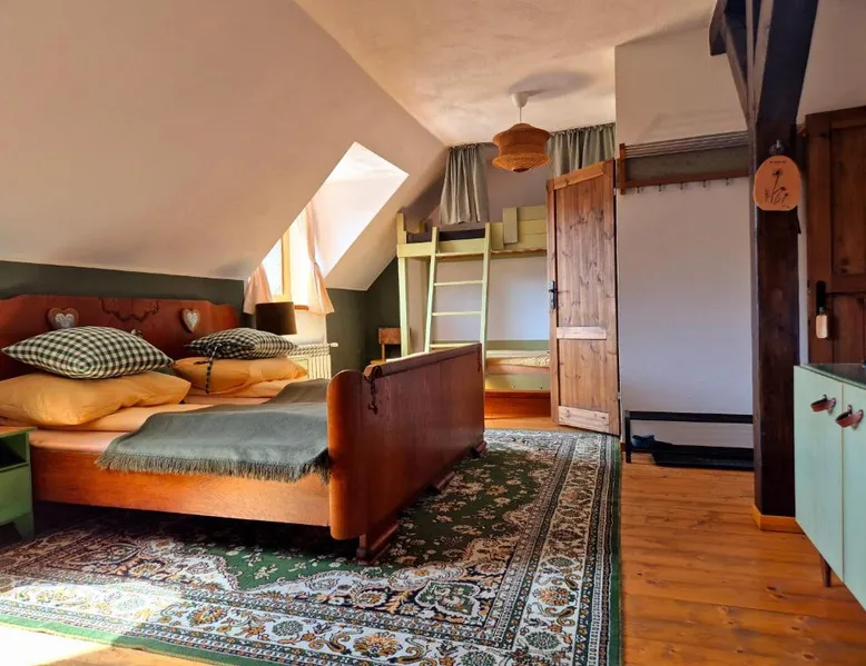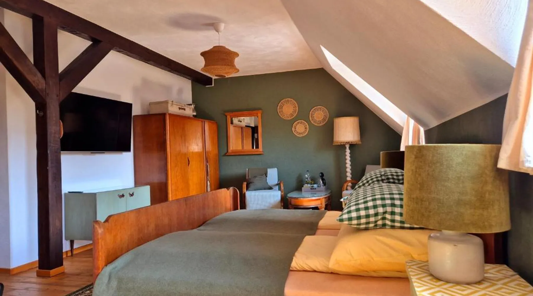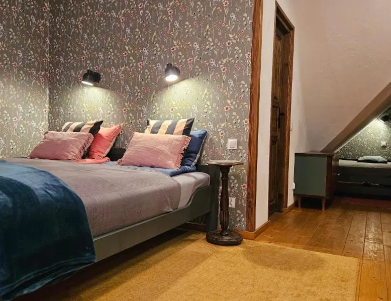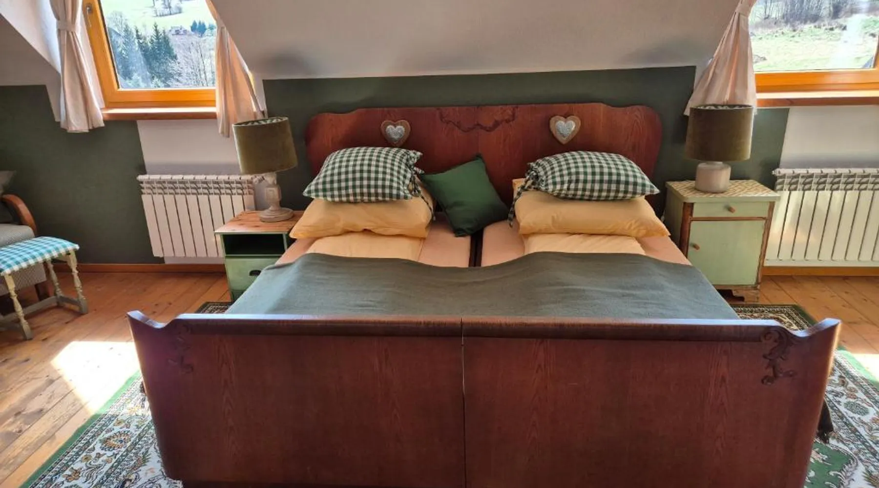 Accommodations Features: Miodówka in Stronie Śląskie offers a farm stay with a sun terrace, garden, and free WiFi. Private check-in and check-out services ensure a smooth arrival and departure. Amenities and Activities: Guests can enjoy an outdoor fireplace, hot tub, and badminton equipment hire. The property provides free on-site private parking, ski storage, and outdoor seating areas. Breakfast and Dining: A continental buffet breakfast includes local specialties, warm dishes, juice, fresh pastries, pancakes, cheese, and fruits. The dining area features parquet floors and a TV. Nearby Attractions: Polanica Zdroj Train Station is 24 mi away, Złoty Stok Gold Mine 18 mi, Chess Park 25 mi, and Szczytna 30 mi. Activities include skiing. Highly rated for its host, nature trip, and breakfast. Guests will have a special experience as this triple room features a hot tub, a spa bath and a fireplace. The triple room provides a tea and coffee maker, a seating area, a terrace with mountain views as well as a private bathroom featuring a shower. The unit offers 2 beds.