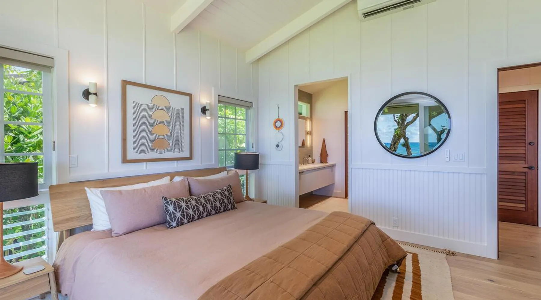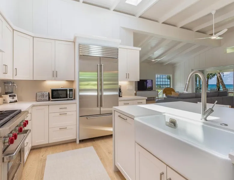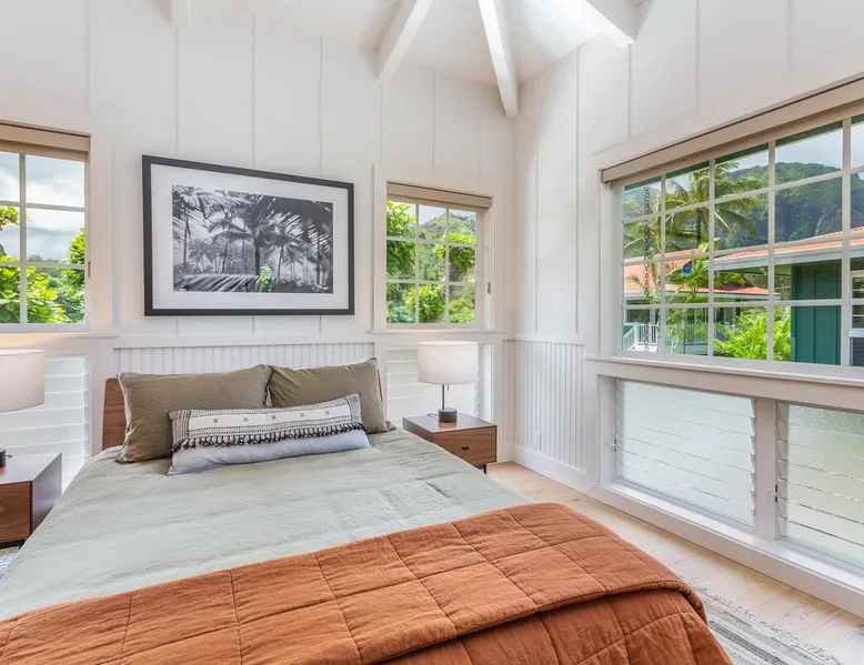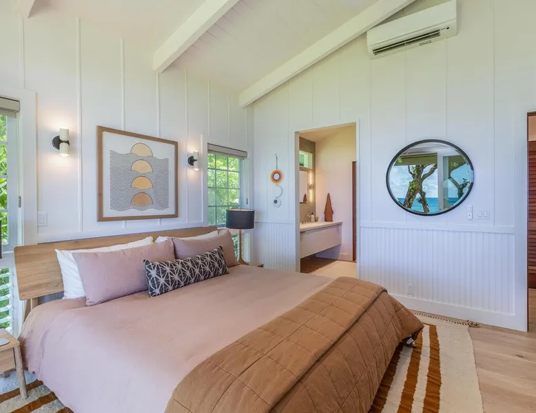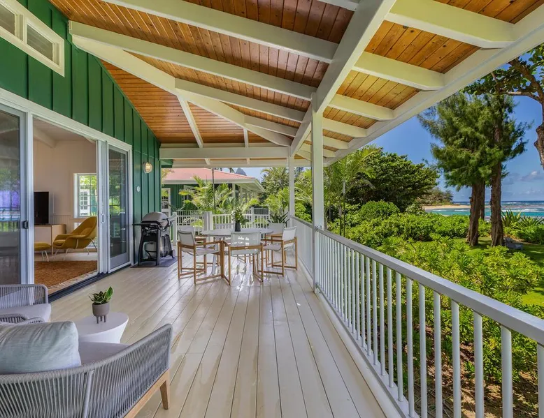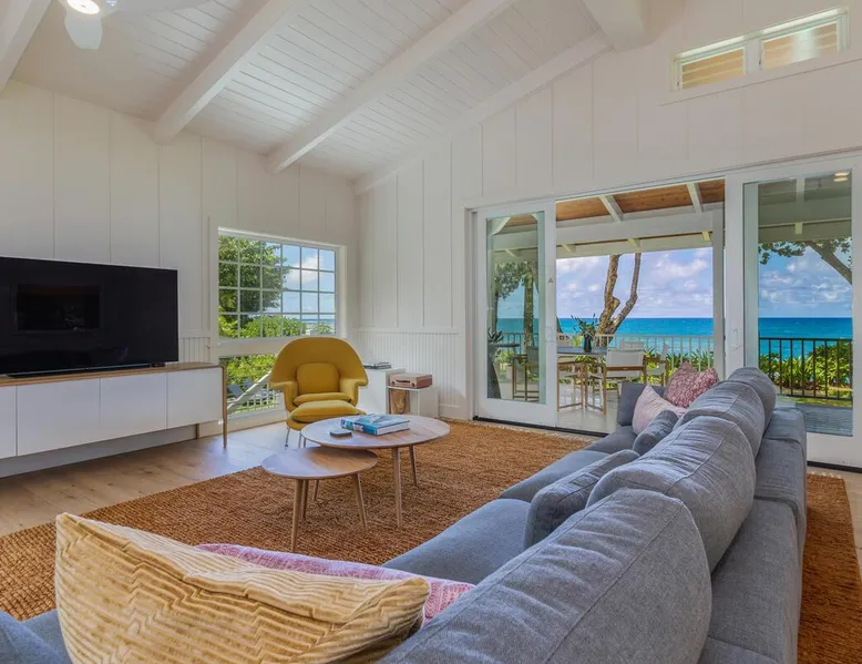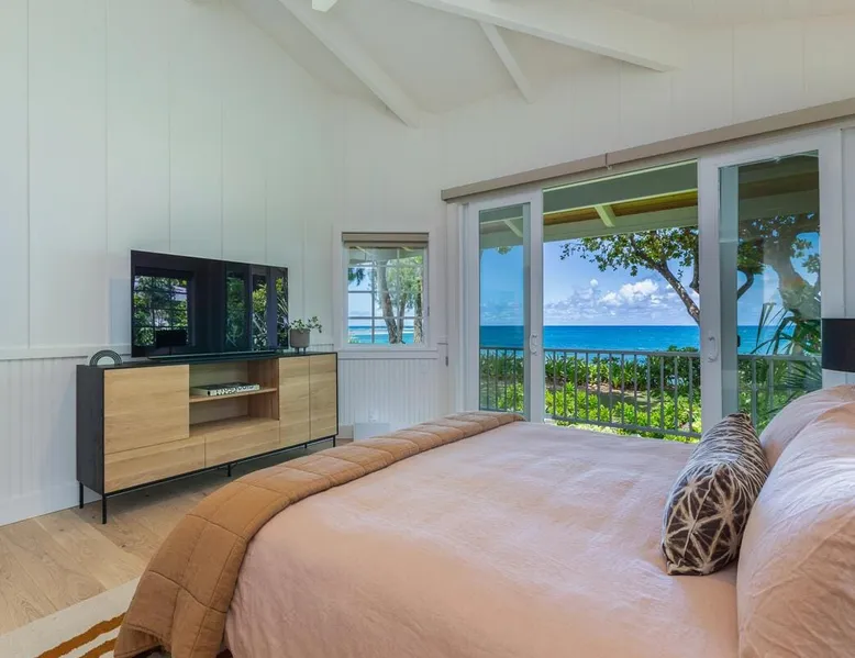 Hawaii Life Presents Hale Elua - Luxury Haena Beachfront home with air-conditioning near to Tunnels The space Haena Modern Beachfront, Hale Elua (Two) is a newly renovated modern beach home with luxurious furnishings. Hale Elua offers 3 bedrooms, 2.5 bathrooms, a fully equipped gourmet kitchen, a formal dining room table, casual outdoor dining on the lanai, air conditioning, high-speed internet & hot tub. There are two homes on the property that are available to rent individually and experience a beautiful private escape for your oceanside adventure or you may want to rent them both for a family reunion, small business conference, or group of friends. General Amenities Include: Air Conditioning in all bedrooms Ocean views from living room, kitchen and master bedroom Beachfront - located on a stunningly beautiful tropical beach with swimming and snorkeling Spacious raised lanai (covered porch) with full ocean views and BBQ Lush landscaping, walking paths and garden reading area Beach chairs, mats, children's beach toys Outdoor shower with hot & cold water for rinsing after the ocean Hot Tub Bed, Bath & Kitchen Amenities Include: Private master suite with ocean views and double vanity Two king beds, one queen, all with high count cotton sheets Quartz countertops throughout Sub-Zero refrigerator/freezer, oven, convection microwave, dishwasher, toaster, and blender. Haena Modern Beachfront Hale Elua is located on the lush north shore of Kauai, the Garden Island. Kauai is known as the most naturally beautiful island in the Hawaiian chain, as yet unsullied by modern development. It is the oldest island of Hawaii and has towering mountains, scenic canyons, and spectacular waterfalls. At Hale Elua, you can escape to "old Hawaii" amongst towering kamani and ironwoods trees, swaying palms, and turquoise ocean. Savor the moment of this relaxed tropical paradise while lounging on the lanai and watching the sunset after a glorious day of ocean play. Haena Modern Beachfront is just minutes from the town of Hanalei and beachfront to Tunnels Beach, the best snorkeling location on the island. The Na Pali Coast Trail and Ke'e Beach are 2 miles from the property and accessed with a permit. Please visit . The famous St. Regis Resort (golf, tennis, spa, and restaurants) is just 20 minutes away. The north shore of Kauai offers a multitude of fine restaurants and daily activities; a list of recommendations will be available to you for your stay. Hawaii Life Rentals is a locally owned, licensed real estate company with rentals on Kauai, Maui, Oahu, and Hawaii. We offer on-island personal assistance and Concierge services. Rates do not include taxes, cleaning and applicable fees. VRBO/Hawaii Life bookings: Guests must sign a rental contract within 48 hours of booking to confirm the reservation. *This home is located in a Tsunami Evacuation Zone* Tvncu #1201 TA-003-356-9280-01 Registration Details 580090250002, TA-003-356-9280-01