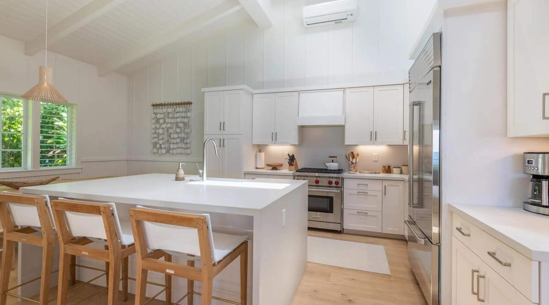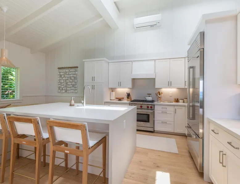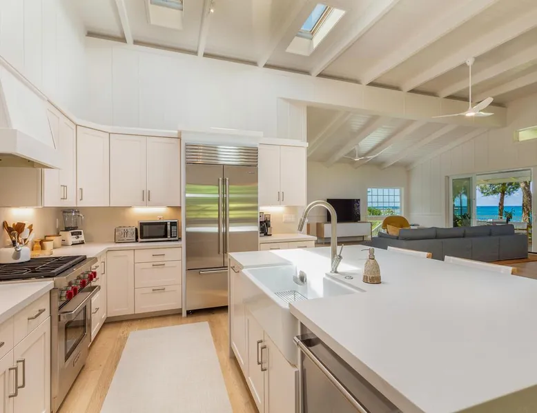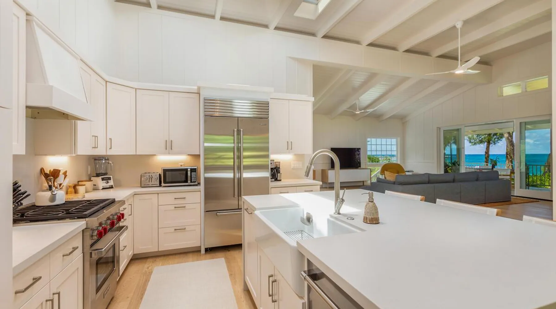 Hawaii Life Presents Hale Elua - Luxury Haena Beachfront home with air-conditioning near to Tunnels The space Haena Modern Beachfront, Hale Elua (Two) is a newly renovated modern beach home with luxurious furnishings. Hale Elua offers 3 bedrooms, 2.5 bathrooms, a fully equipped gourmet kitchen, a formal dining room table, casual outdoor dining on the lanai, air conditioning, high-speed internet & hot tub. There are two homes on the property that are available to rent individually and experience a beautiful private escape for your oceanside adventure or you may want to rent them both for a family reunion, small business conference, or group of friends. General Amenities Include: Air Conditioning in all bedrooms Ocean views from living room, kitchen and master bedroom Beachfront - located on a stunningly beautiful tropical beach with swimming and snorkeling Spacious raised lanai (covered porch) with full ocean views and BBQ Lush landscaping, walking paths and garden reading area Beach chairs, mats, children's beach toys Outdoor shower with hot & cold water for rinsing after the ocean Hot Tub Bed, Bath & Kitchen Amenities Include: Private master suite with ocean views and double vanity Two king beds, one queen, all with high count cotton sheets Quartz countertops throughout Sub-Zero refrigerator/freezer, oven, convection microwave, dishwasher, toaster, and blender. Haena Modern Beachfront Hale Elua is located on the lush north shore of Kauai, the Garden Island. Kauai is known as the most naturally beautiful island in the Hawaiian chain, as yet unsullied by modern development. It is the oldest island of Hawaii and has towering mountains, scenic canyons, and spectacular waterfalls. At Hale Elua, you can escape to "old Hawaii" amongst towering kamani and ironwoods trees, swaying palms, and turquoise ocean. Savor the moment of this relaxed tropical paradise while lounging on the lanai and watching the sunset after a glorious day of ocean play. Haena Modern Beachfront is just minutes from the town of Hanalei and beachfront to Tunnels Beach, the best snorkeling location on the island. The Na Pali Coast Trail and Ke'e Beach are 2 miles from the property and accessed with a permit. Please visit . The famous St. Regis Resort (golf, tennis, spa, and restaurants) is just 20 minutes away. The north shore of Kauai offers a multitude of fine restaurants and daily activities; a list of recommendations will be available to you for your stay. Hawaii Life Rentals is a locally owned, licensed real estate company with rentals on Kauai, Maui, Oahu, and Hawaii. We offer on-island personal assistance and Concierge services. Rates do not include taxes, cleaning and applicable fees. VRBO/Hawaii Life bookings: Guests must sign a rental contract within 48 hours of booking to confirm the reservation. *This home is located in a Tsunami Evacuation Zone* Tvncu #1201 TA-003-356-9280-01 Registration Details 580090250002, TA-003-356-9280-01