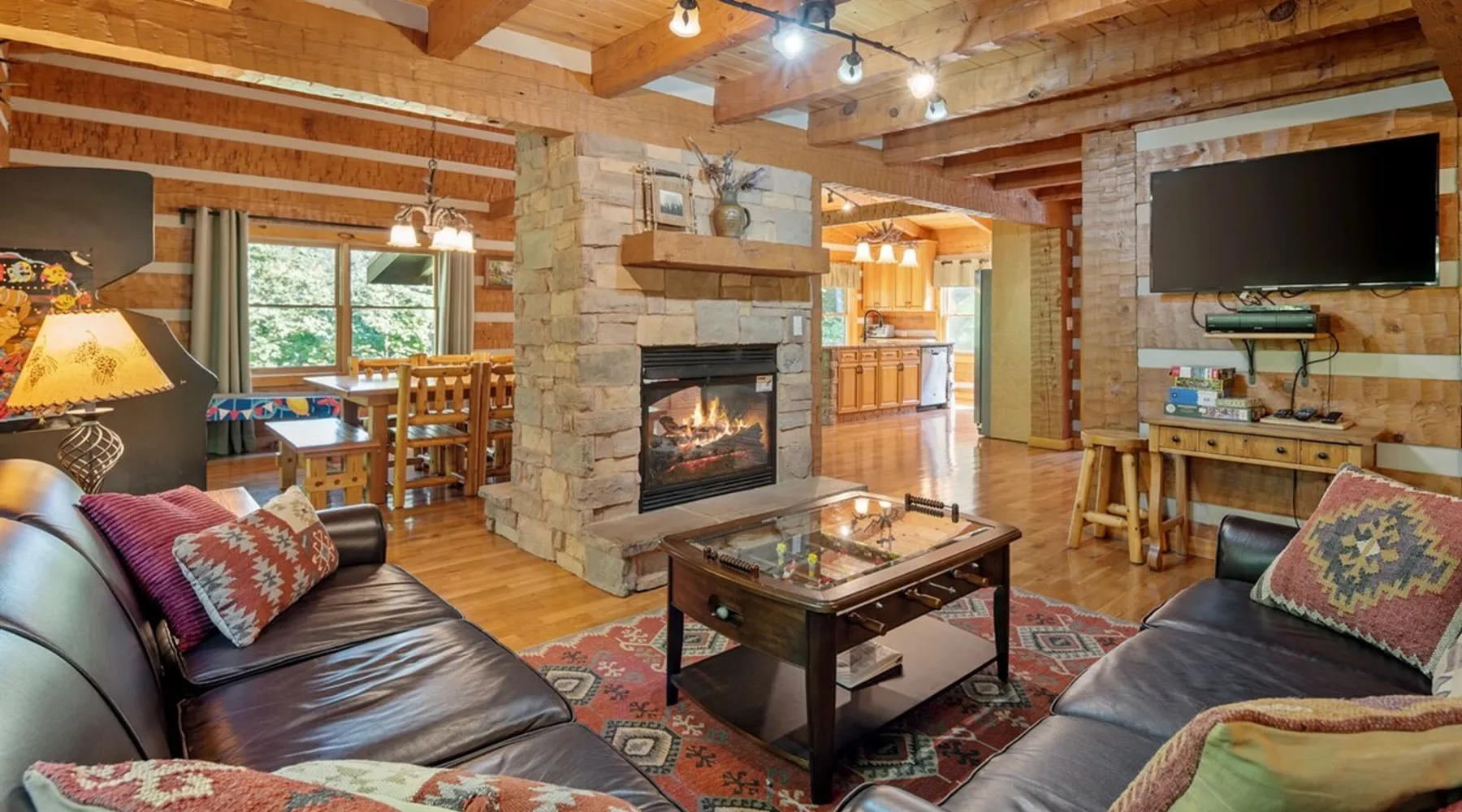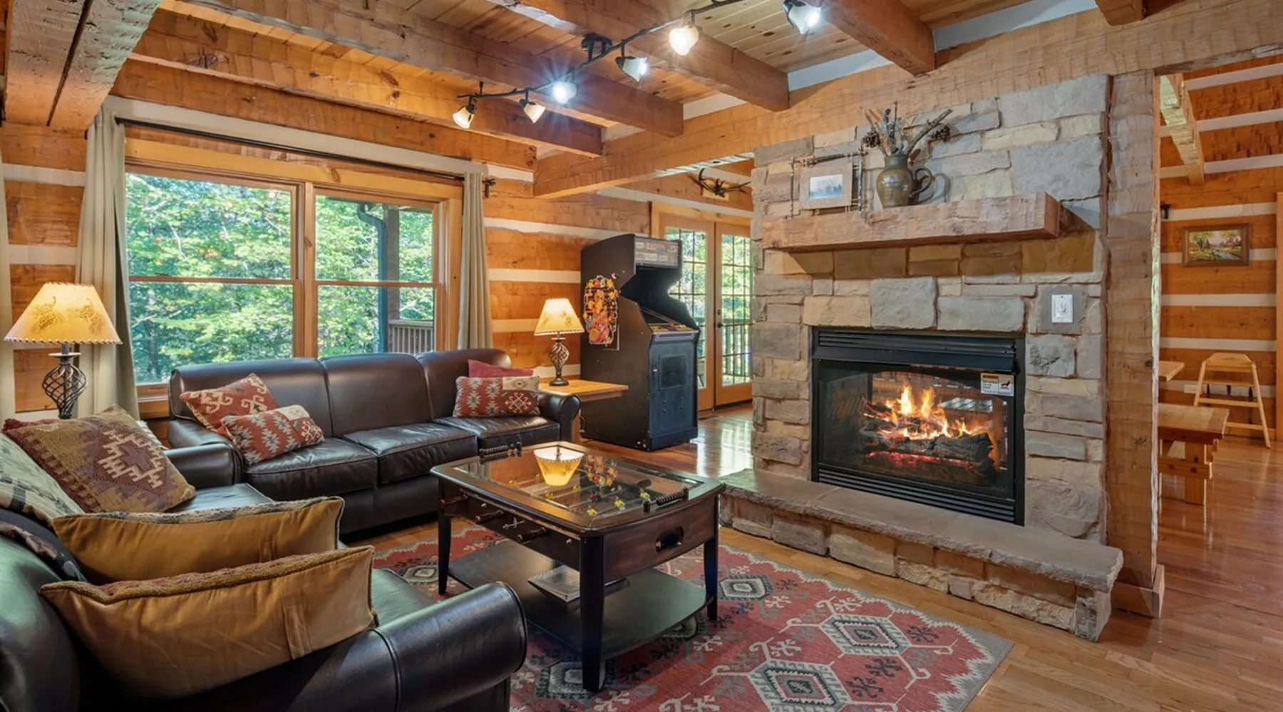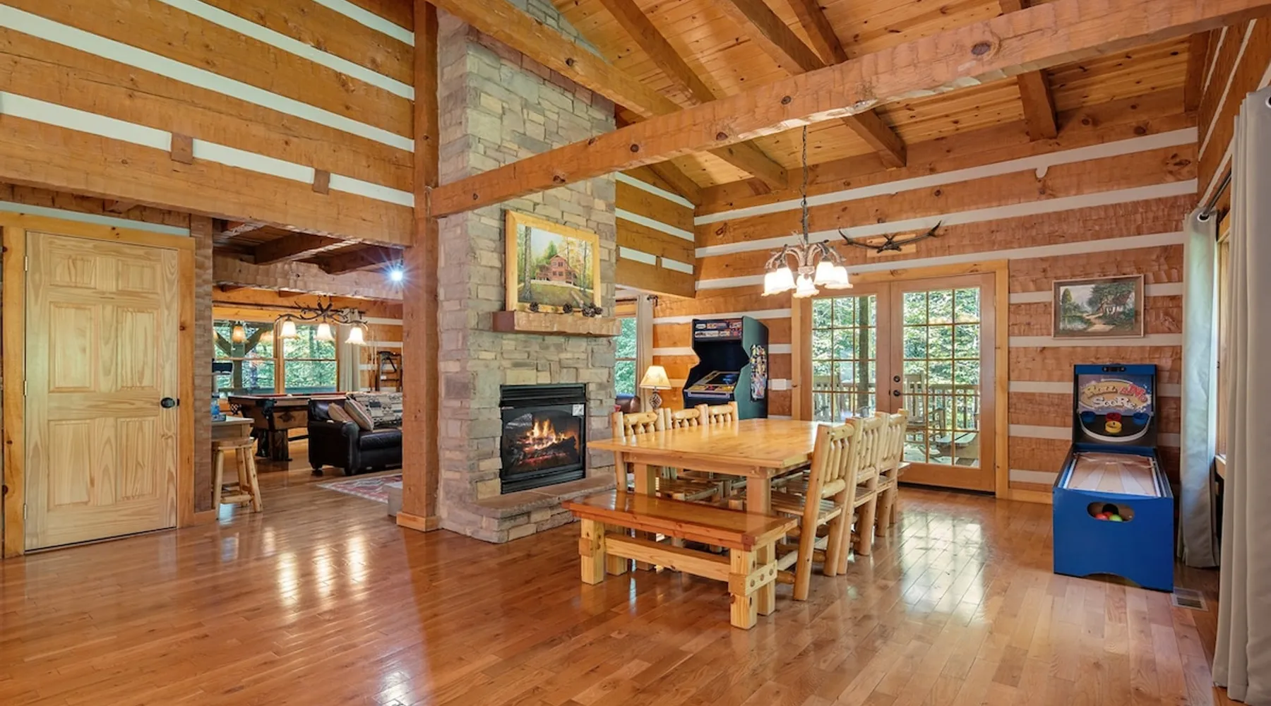 Appalachian Escape Cabin is a classic "log cabin in the woods" set on 3 acres of nature in Sevier County, TN. Near Gatlinburg, the Arts & Crafts loop, and easy access to Pigeon Forge, too. Peaceful wooded view, privacy, & seclusion. Covered porches, hot tub, ample back yard, firepit. It's like camping in the Smoky Mountains but with all the comforts of home. All wood interior blends warm, cozy charm with modern amenities. The space Our guests give us 5-star reviews on privacy, comfort, and attention to detail: ★ ★ ★ ★ ★ 𝘉𝘦𝘢𝘶𝘵𝘪𝘧𝘶𝘭 𝘤𝘢𝘣𝘪𝘯/𝘭𝘰𝘤𝘢𝘵𝘪𝘰𝘯 𝘸𝘪𝘵𝘩 𝘭𝘰𝘵𝘴 & 𝘭𝘰𝘵𝘴 𝘰𝘧 𝘳𝘰𝘰𝘮!!! 𝘛𝘩𝘪𝘴 𝘪𝘴 𝘢 𝘨𝘰𝘳𝘨𝘦𝘰𝘶𝘴 𝘤𝘢𝘣𝘪𝘯 𝘪𝘯 𝘵𝘩𝘦 𝘸𝘰𝘰𝘥𝘴 𝘸𝘩𝘦𝘳𝘦 𝘪𝘵'𝘴 𝘷𝘦𝘳𝘺 𝘲𝘶𝘪𝘦𝘵. 𝘛𝘩𝘦 𝘣𝘦𝘥𝘴 𝘸𝘦𝘳𝘦 𝘦𝘹𝘵𝘳𝘦𝘮𝘦𝘭𝘺 𝘤𝘰𝘮𝘧𝘰𝘳𝘵𝘢𝘣𝘭𝘦 𝘢𝘯𝘥 𝘵𝘩𝘦 𝘭𝘪𝘷𝘪𝘯𝘨 𝘢𝘳𝘦𝘢/𝘬𝘪𝘵𝘤𝘩𝘦𝘯 𝘸𝘦𝘳𝘦 𝘏𝘜𝘎𝘌! ★ ★ ★ ★ ★ 𝘛𝘩𝘪𝘴 𝘪𝘴 𝘢 𝘣𝘦𝘢𝘶𝘵𝘪𝘧𝘶𝘭 𝘤𝘢𝘣𝘪𝘯 𝘸𝘪𝘵𝘩 𝘴𝘰 𝘮𝘢𝘯𝘺 𝘢𝘮𝘦𝘯𝘪𝘵𝘪𝘦𝘴. 𝘝𝘦𝘳𝘺 𝘧𝘢𝘮𝘪𝘭𝘺 𝘧𝘳𝘪𝘦𝘯𝘥𝘭𝘺 𝘢𝘯𝘥 𝘵𝘩𝘦𝘳𝘦 𝘪𝘴 𝘴𝘰 𝘮𝘶𝘤𝘩 𝘵𝘰 𝘥𝘰 𝘪𝘯 𝘵𝘩𝘦 𝘢𝘳𝘦𝘢. 𝘞𝘦 𝘸𝘪𝘭𝘭 𝘥𝘦𝘧𝘪𝘯𝘪𝘵𝘦𝘭𝘺 𝘳𝘦𝘵𝘶𝘳𝘯. ★ ★ ★ ★★ 𝘞𝘦 𝘦𝘯𝘫𝘰𝘺𝘦𝘥 𝘵𝘩𝘦 𝘤𝘢𝘣𝘪𝘯 𝘢𝘴 𝘸𝘦𝘭𝘭 𝘢𝘴 𝘭𝘰𝘤𝘢𝘵𝘪𝘰𝘯 𝘢𝘯𝘥 𝘴𝘦𝘵𝘵𝘪𝘯𝘨. 𝘛𝘩𝘦 𝘤𝘢𝘣𝘪𝘯 𝘪𝘴 𝘸𝘦𝘭𝘭 𝘮𝘢𝘪𝘯𝘵𝘢𝘪𝘯𝘦𝘥 𝘢𝘯𝘥 𝘩𝘢𝘥 𝘦𝘷𝘦𝘳𝘺𝘵𝘩𝘪𝘯𝘨 𝘵𝘩𝘢𝘵 𝘸𝘦 𝘯𝘦𝘦𝘥𝘦𝘥. 𝘎𝘳𝘦𝘢𝘵 𝘤𝘰𝘮𝘮𝘶𝘯𝘪𝘤𝘢𝘵𝘪𝘰𝘯 𝘢𝘯𝘥 𝘢 𝘴𝘶𝘱𝘦𝘳 𝘦𝘢𝘴𝘺 𝘤𝘩𝘦𝘤𝘬 𝘪𝘯/𝘤𝘩𝘦𝘤𝘬 𝘰𝘶𝘵 𝘱𝘳𝘰𝘤𝘦𝘴𝘴. 𝘞𝘰𝘶𝘭𝘥 𝘯𝘰𝘵 𝘩𝘦𝘴𝘪𝘵𝘢𝘵𝘦 𝘵𝘰 𝘣𝘰𝘰𝘬 𝘢𝘨𝘢𝘪𝘯. 𝘞𝘦 𝘳𝘦𝘢𝘭𝘭𝘺 𝘦𝘯𝘫𝘰𝘺𝘦𝘥 𝘰𝘶𝘳 𝘴𝘵𝘢𝘺. 𝘛𝘩𝘢𝘯𝘬 𝘺𝘰𝘶! ★ ★ ★★ ★ 𝘛𝘩𝘦 𝘤𝘢𝘣𝘪𝘯 𝘸𝘢𝘴 𝘣𝘦𝘢𝘶𝘵𝘪𝘧𝘶𝘭, 𝘸𝘪𝘵𝘩 𝘢𝘭𝘰𝘵 𝘰𝘧 𝘢𝘵𝘵𝘦𝘯𝘵𝘪𝘰𝘯 𝘵𝘰 𝘥𝘦𝘵𝘢𝘪𝘭 𝘪𝘯 𝘦𝘷𝘦𝘳𝘺 𝘳𝘰𝘰𝘮 𝘢𝘯𝘥 𝘰𝘶𝘵𝘴𝘪𝘥𝘦 𝘢𝘴 𝘸𝘦𝘭𝘭. 𝘞𝘦 𝘭𝘰𝘷𝘦𝘥 𝘵𝘩𝘦 𝘱𝘳𝘪𝘷𝘢𝘤𝘺, 𝘦𝘯𝘫𝘰𝘺𝘦𝘥 𝘵𝘩𝘦 𝘩𝘰𝘵 𝘵𝘶𝘣, 𝘢𝘯𝘥 𝘵𝘩𝘦 𝘣𝘦𝘥𝘴 𝘸𝘦𝘳𝘦 𝘴𝘶𝘱𝘦𝘳 𝘤𝘰𝘮𝘧𝘰𝘳𝘵𝘢𝘣𝘭𝘦. 𝘛𝘩𝘦 𝘩𝘰𝘴𝘵𝘴 𝘸𝘦𝘳𝘦 𝘢𝘭𝘴𝘰 𝘲𝘶𝘪𝘤𝘬 𝘵𝘰 𝘳𝘦𝘴𝘱𝘰𝘯𝘥. 𝘞𝘰𝘶𝘭𝘥 𝘥𝘦𝘧𝘪𝘯𝘪𝘵𝘦𝘭𝘺 𝘴𝘵𝘢𝘺 𝘩𝘦𝘳𝘦 𝘢𝘨𝘢𝘪𝘯! 𝟯 𝗔𝗖𝗥𝗘𝗦 𝗢𝗙 𝗡𝗔𝗧𝗨𝗥𝗘, 𝗪𝗢𝗢𝗗𝗘𝗗 𝗩𝗜𝗘𝗪𝗦, 𝗬𝗔𝗥𝗗 𝘄/𝗙𝗜𝗥𝗘𝗣𝗜𝗧, 𝗖𝗢𝗩𝗘𝗥𝗘𝗗 𝗣𝗢𝗥𝗖𝗛𝗘𝗦, 𝗛𝗢𝗧 𝗧𝗨𝗕, 𝗣𝗢𝗢𝗟 𝗧𝗔𝗕𝗟𝗘, 𝗜𝗡𝗗𝗢𝗢𝗥 𝗝𝗘𝗧𝗧𝗘𝗗 𝗧𝗨𝗕, 𝗪𝗜𝗙𝗜 ✓ great location between Pigeon Forge and Gatlinburg, accessible by ALL PAVED roads ✓ paved flat parking for up to 6 cars (a rarity in these parts) ✓ free WIFI via Starlink internet (we cannot guarantee the speed at all times) ✓ PRIVATE and SECLUDED on a large WOODED property with a backyard (Yard is NOT fenced - make sure to supervise small children) ✓ fire pit (we do not supply firewood) ✓ hot tub ✓ "little log cabin" PLAYHOUSE for the kids ✓ covered porches with rocking chairs ✓ charcoal grill and picnic table (it's like having a picnic in a park) ✓ whirlpool tub in upstairs bath (both baths have walk-in showers too) ✓ heated floors in bathrooms (winter only) ✓ KING bedroom on the 1st floor (for those not too keen on climbing stairs) ✓ gas log double-sided fireplace in the family room/dining room (operates Oct-end of Mar) ✓ modern kitchen with granite, stainless appliances, and a large island ✓ Smart TVs with 100+ channels in all rooms ✓ tile and wood floors (no carpet) ✓ all log and wood inside and out with exposed hewn beams (no drywall) ✓ mountain cozy décor (with many handmade pieces) ✓ one of a kind log cabin, NOT in a cookie-cutter PUD or a "resort" with dozens of cookie-cutter cabins mere feet from each other ★ 𝗣𝗥𝗢𝗣𝗘𝗥𝗧𝗬: Custom-built all-log cabin set on several wooded acres. WOODED views, an outdoor FIREPIT (firewood not provided), and a paved driveway that has parking for 4+ cars. Located on a quiet residential street with few homes. Accessible by ALL PAVED roads and driveway, the cabin offers ample off-street parking for 4+ vehicles. With only 5 steps to the front door, your arrival and unpacking will be easy! ★ 𝗜𝗻𝘀𝗶𝗱𝗲 Appalachian Escape Cabin: A thoughtful blend of traditional and modern - hand-hewn hemlock log walls, exposed beams, gleaming hardwood floors throughout, and rustic log furniture are all reminiscent of traditional craftsmanship. Designer pine cone motif light fixtures accent the all-log interior. ★ 𝗠𝗔𝗜𝗡 𝗙𝗟𝗢𝗢𝗥: Floor-to-ceiling, stone-clad two-sided fireplace beckons you in to snuggle into one of the comfy sofas. Watch a movie of your favorite programming on a 