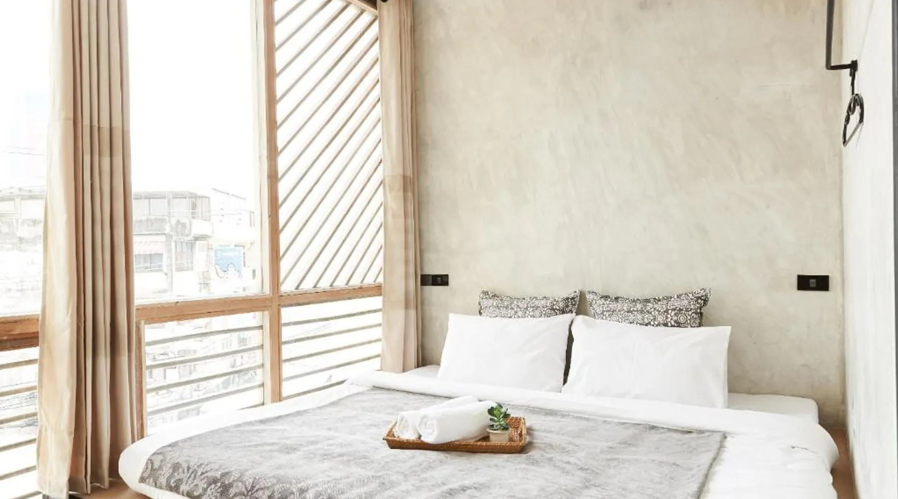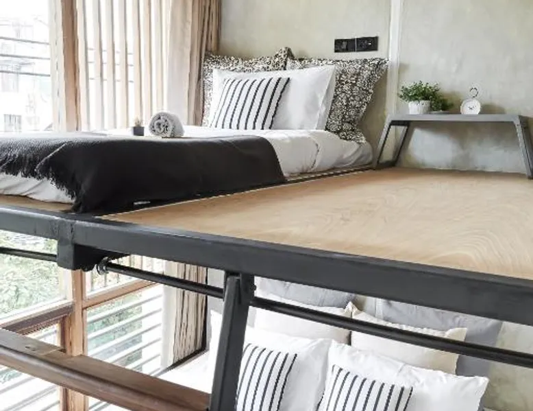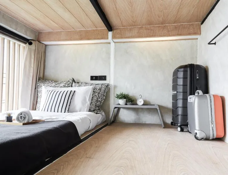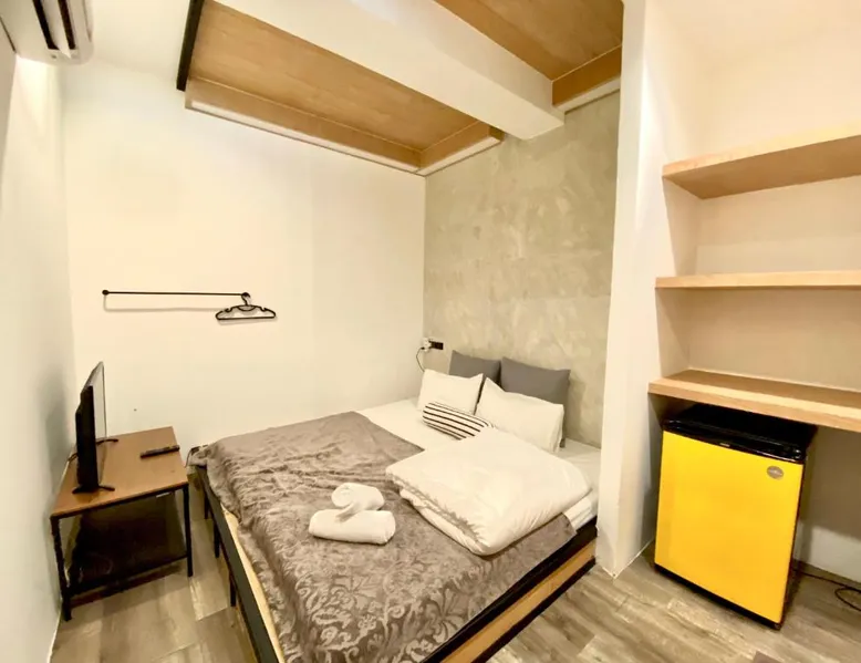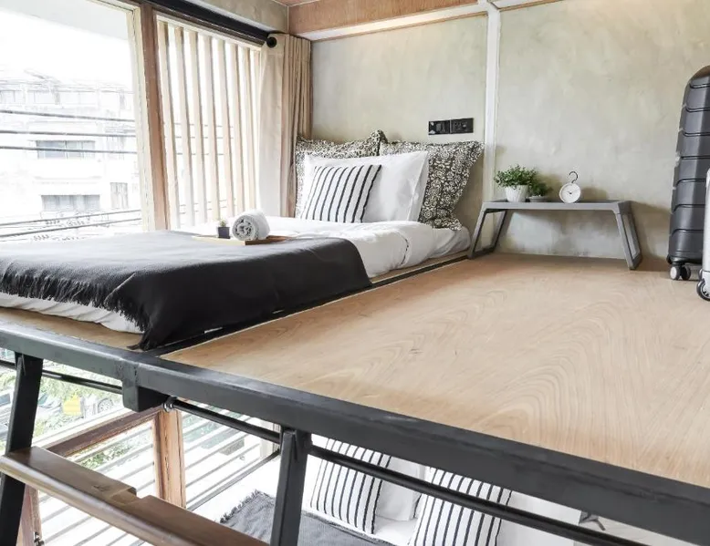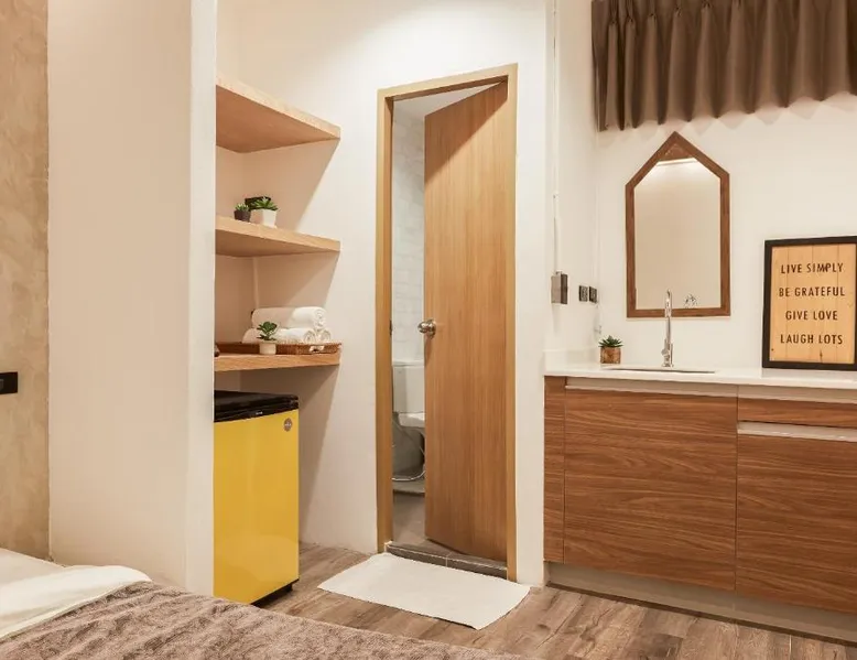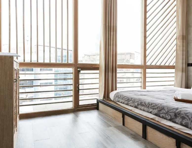 Comfortable Accommodations: Vann Bangkok Boutique House in Bangkok offers air-conditioned rooms with private entrances. Each room includes a shower, private bathroom, and city views. Essential Facilities: Guests enjoy free WiFi, a lounge, coffee shop, and 24-hour front desk. Additional amenities include a hairdryer, refrigerator, TV, and wardrobe, and express check-service. Convenient Location: Located 19 mi from Don Mueang International Airport, the hostel is near attractions such as Queen Sirikit National Convention Center (3.1 mi), One Bangkok (3.7 mi), and Lumpini Park (4.3 mi). Highly rated for its convenient location. The twin room offers air conditioning, a private entrance, as well as a shared bathroom boasting a shower and a hairdryer. The unit has 2 beds.