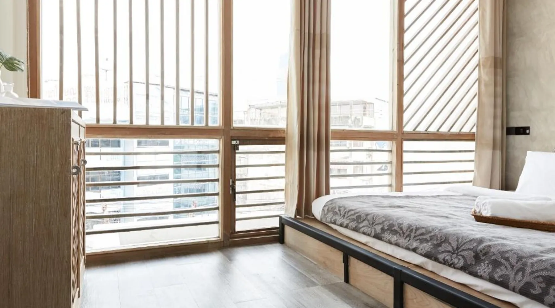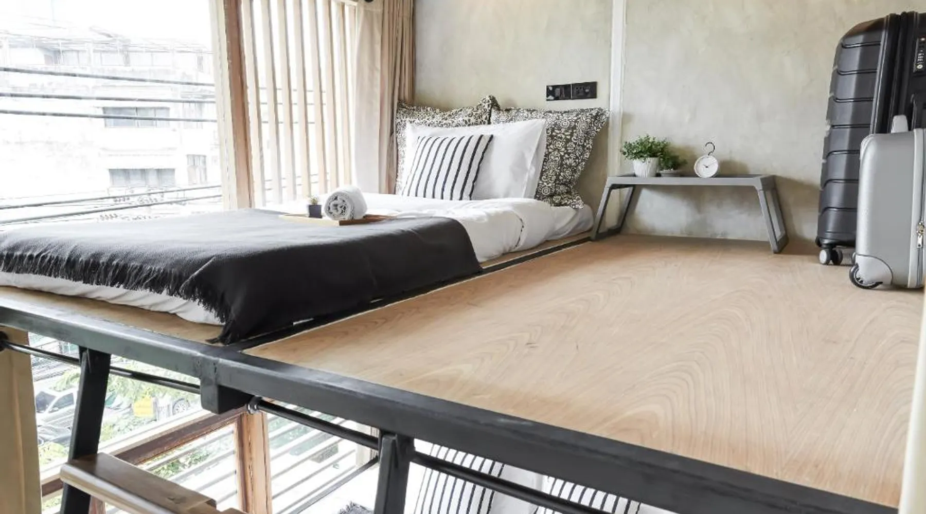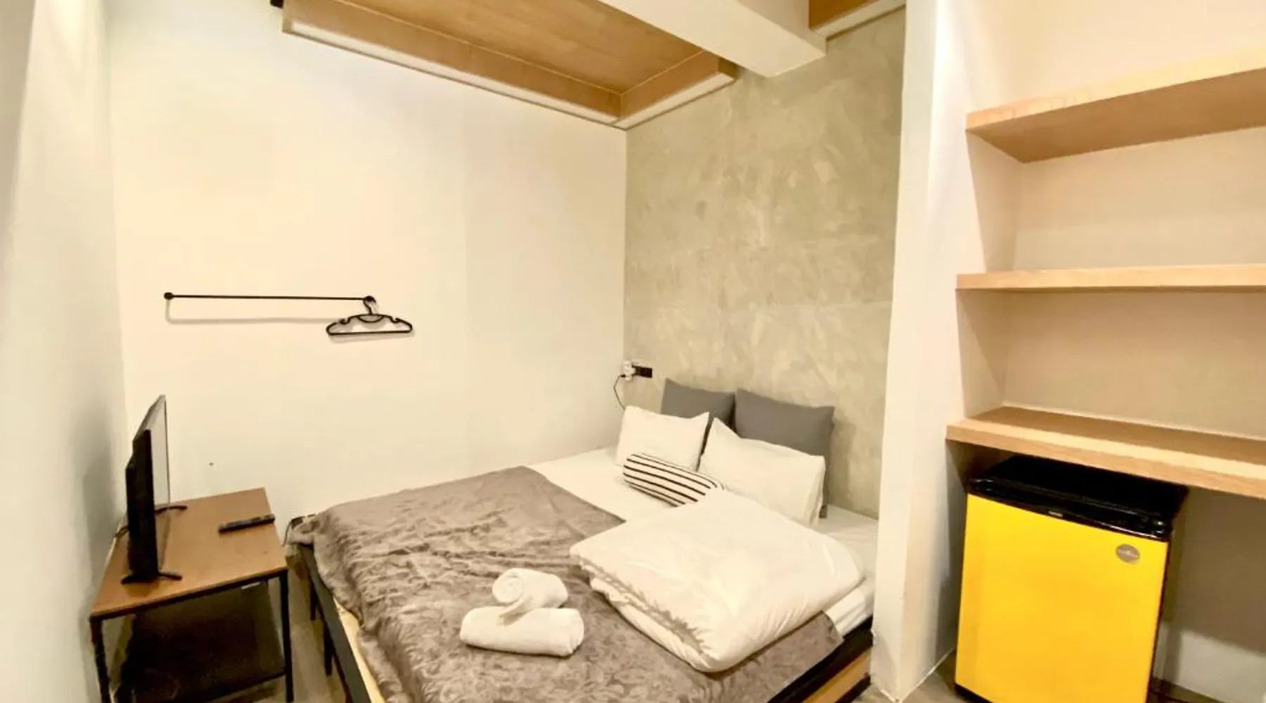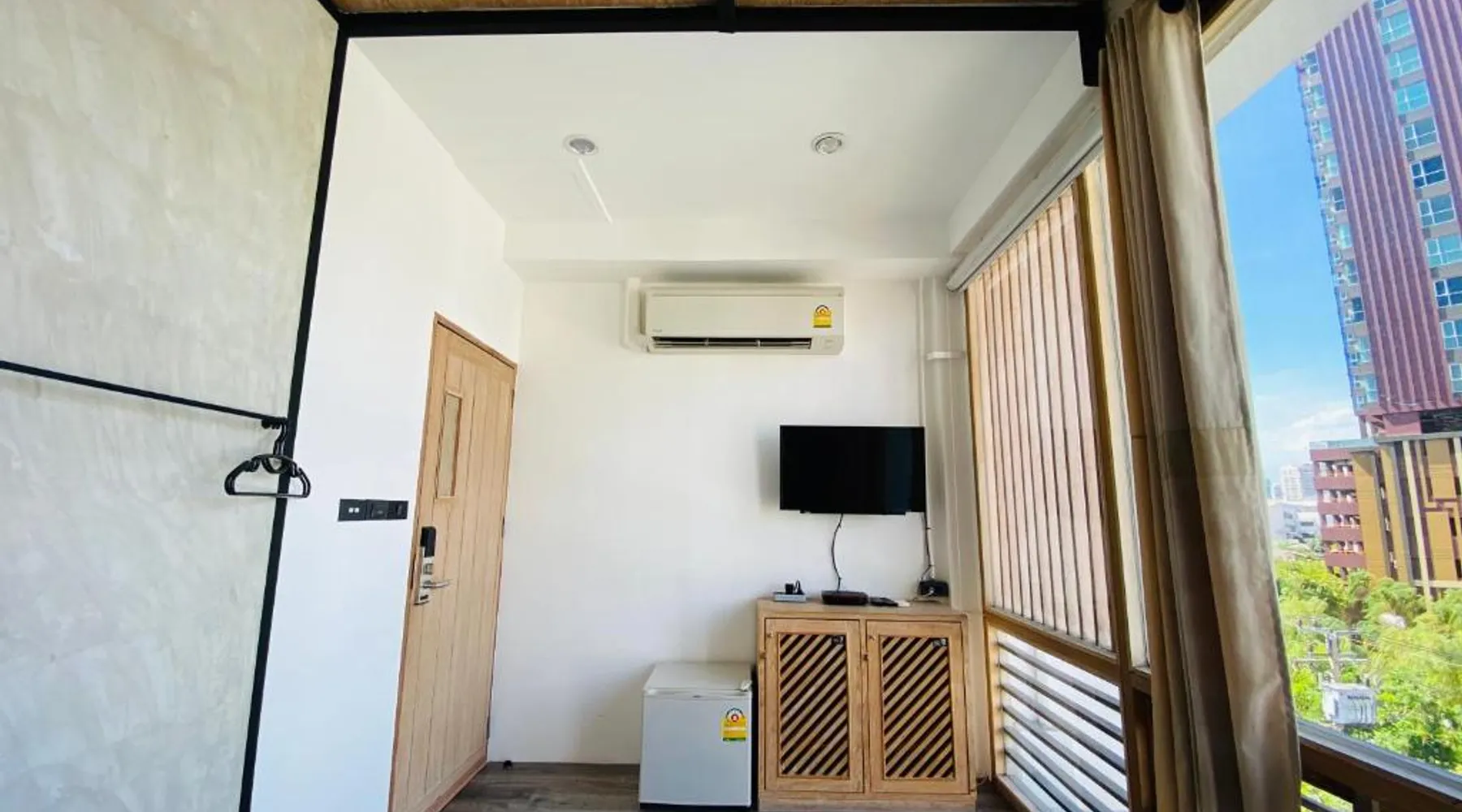 Comfortable Accommodations: Vann Bangkok Boutique House in Bangkok offers air-conditioned rooms with private entrances. Each room includes a shower, private bathroom, and city views. Essential Facilities: Guests enjoy free WiFi, a lounge, coffee shop, and 24-hour front desk. Additional amenities include a hairdryer, refrigerator, TV, and wardrobe, and express check-service. Convenient Location: Located 19 mi from Don Mueang International Airport, the hostel is near attractions such as Queen Sirikit National Convention Center (3.1 mi), One Bangkok (3.7 mi), and Lumpini Park (4.3 mi). Highly rated for its convenient location. The twin room offers air conditioning, a private entrance, as well as a shared bathroom boasting a shower and a hairdryer. The unit has 2 beds.