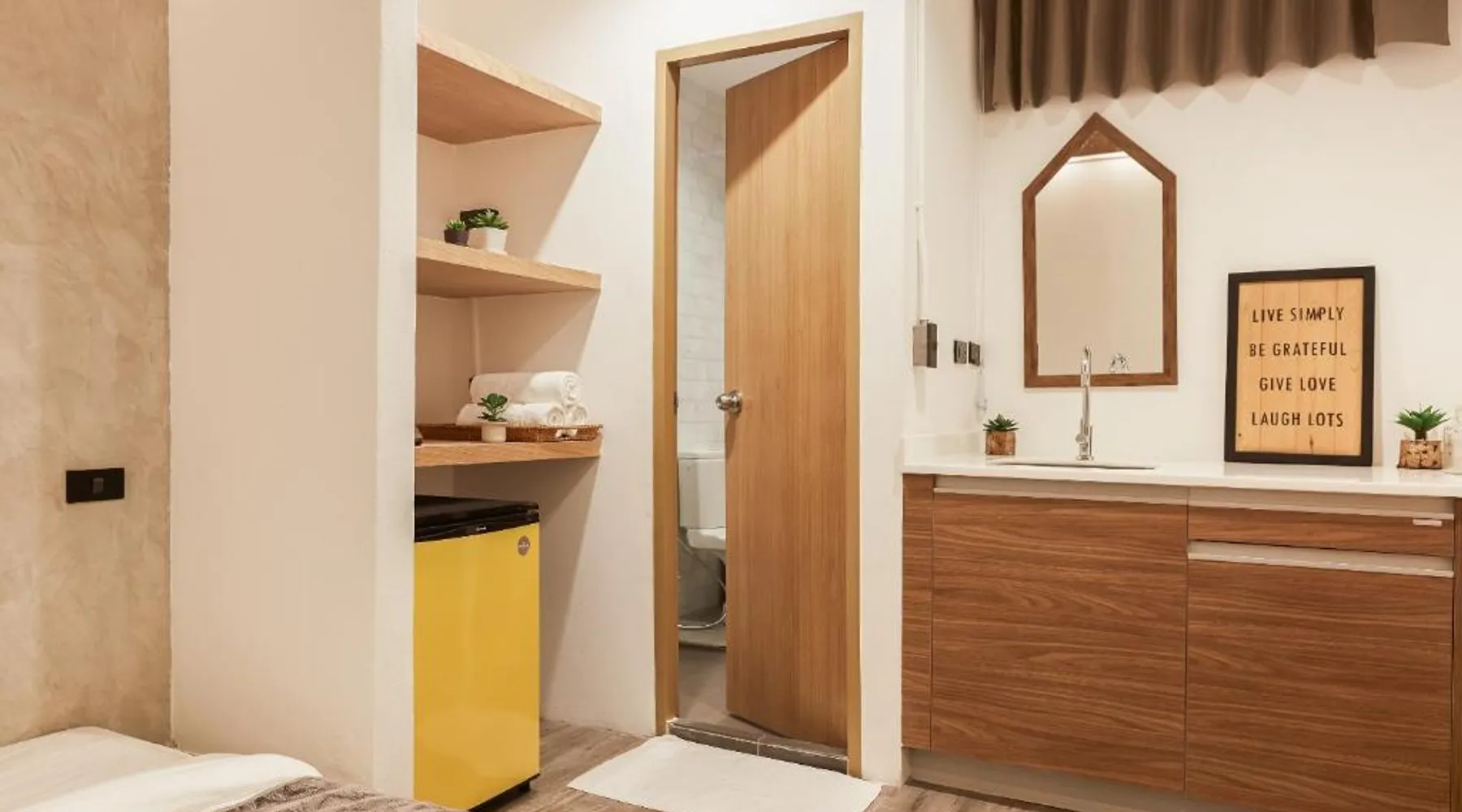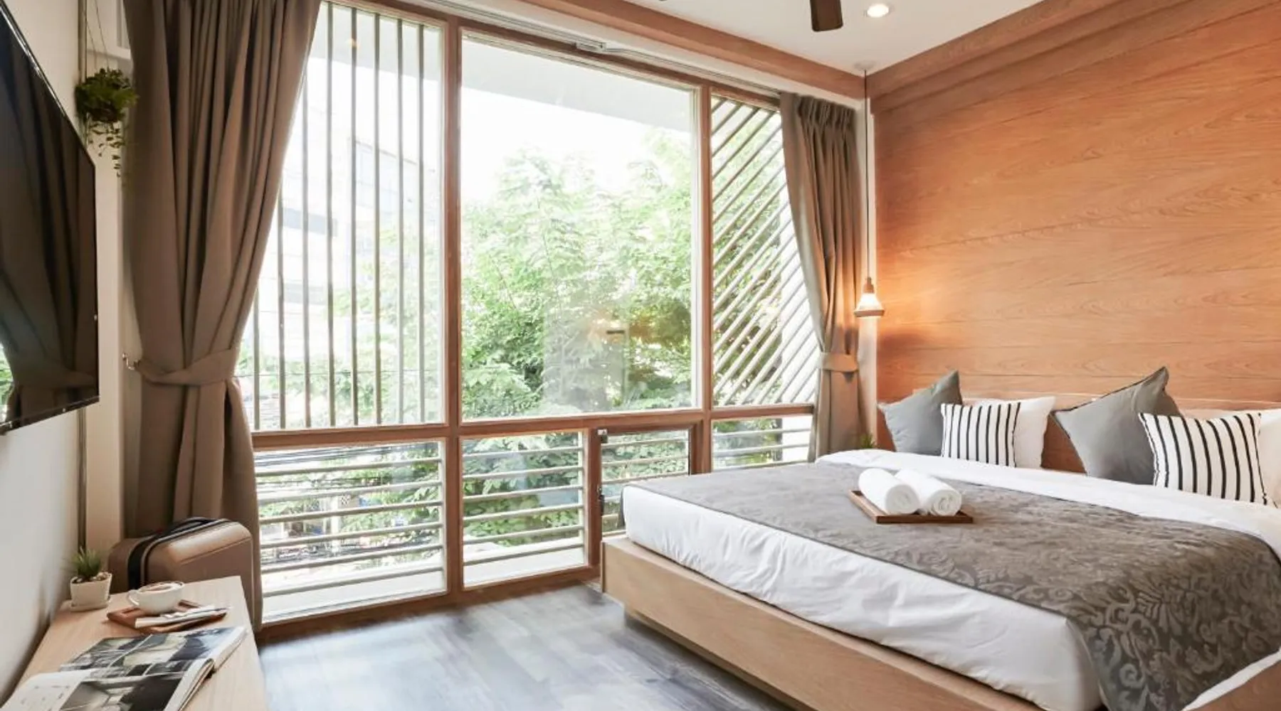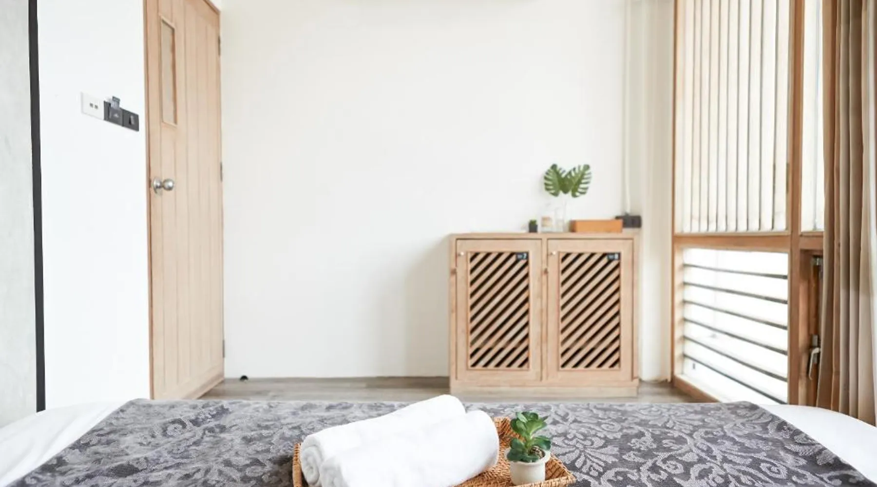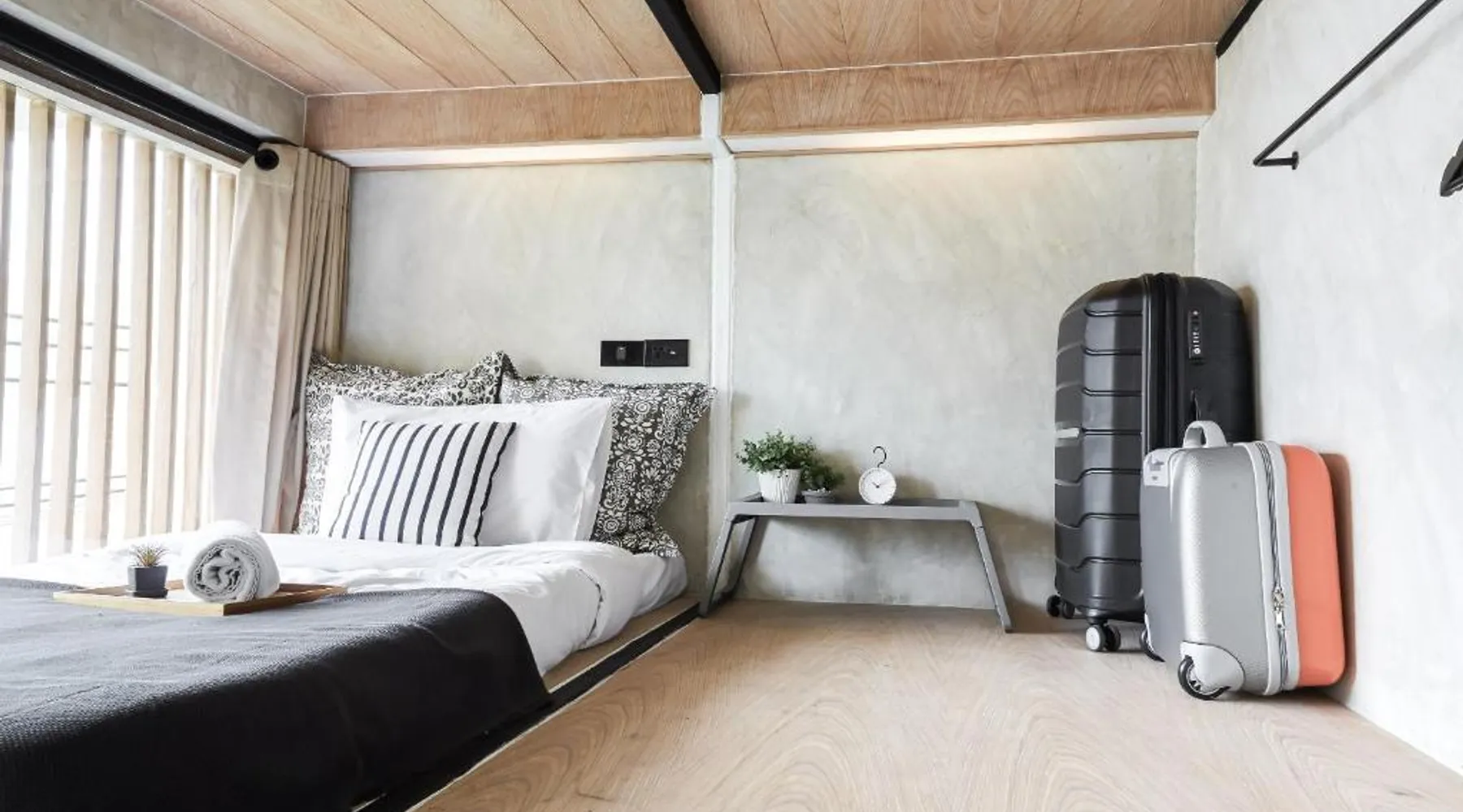 Comfortable Accommodations: Vann Bangkok Boutique House in Bangkok offers air-conditioned rooms with private entrances. Each room includes a shower, private bathroom, and city views. Essential Facilities: Guests enjoy free WiFi, a lounge, coffee shop, and 24-hour front desk. Additional amenities include a hairdryer, refrigerator, TV, and wardrobe, and express check-service. Convenient Location: Located 19 mi from Don Mueang International Airport, the hostel is near attractions such as Queen Sirikit National Convention Center (3.1 mi), One Bangkok (3.7 mi), and Lumpini Park (4.3 mi). Highly rated for its convenient location. The twin room offers air conditioning, a private entrance, as well as a shared bathroom boasting a shower and a hairdryer. The unit has 2 beds.