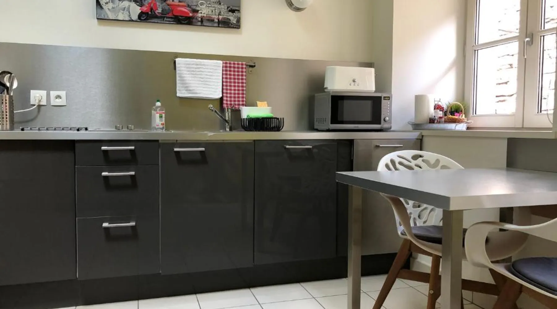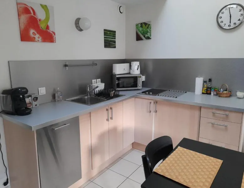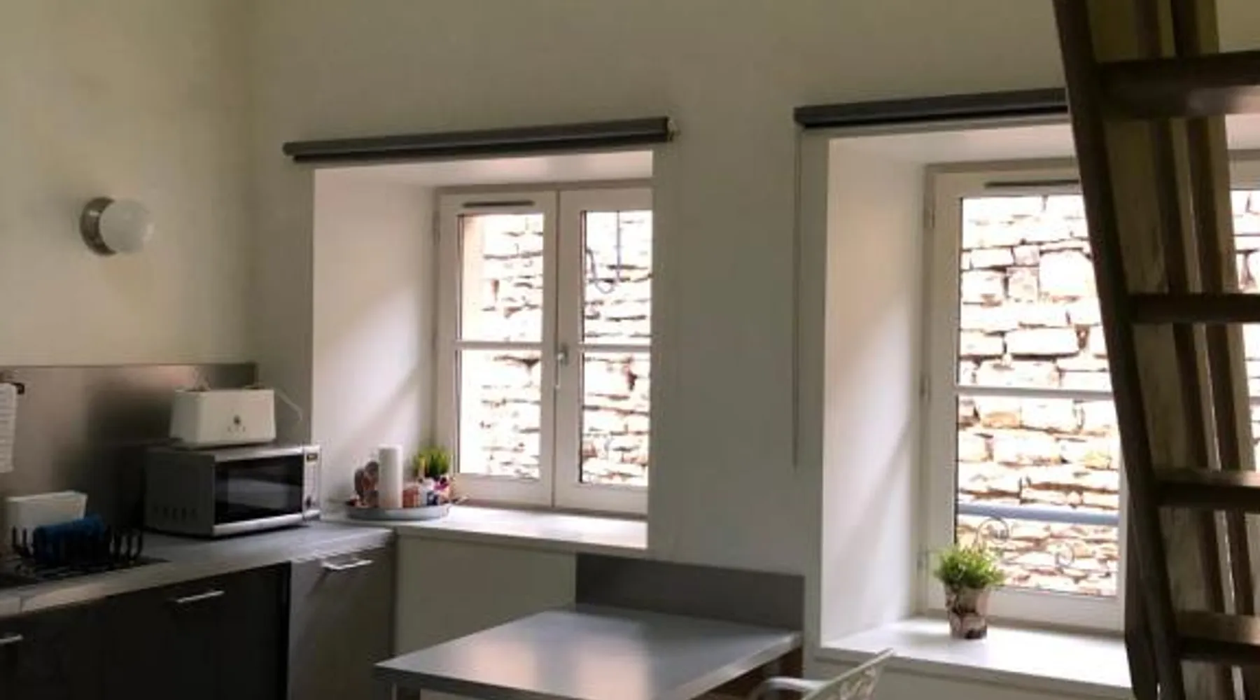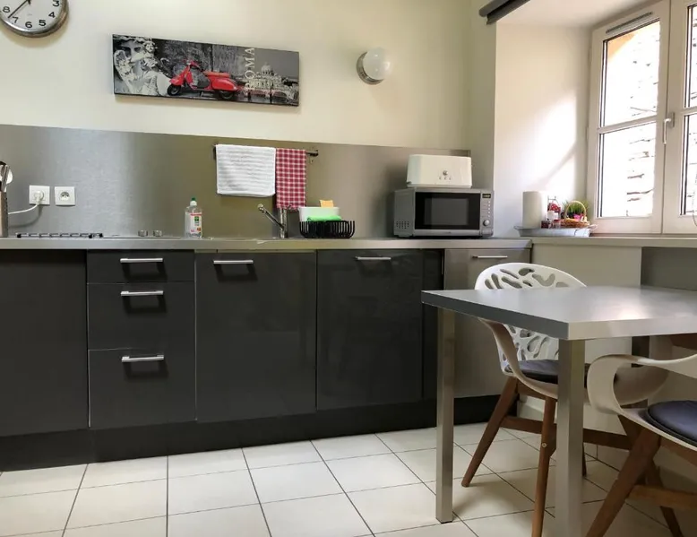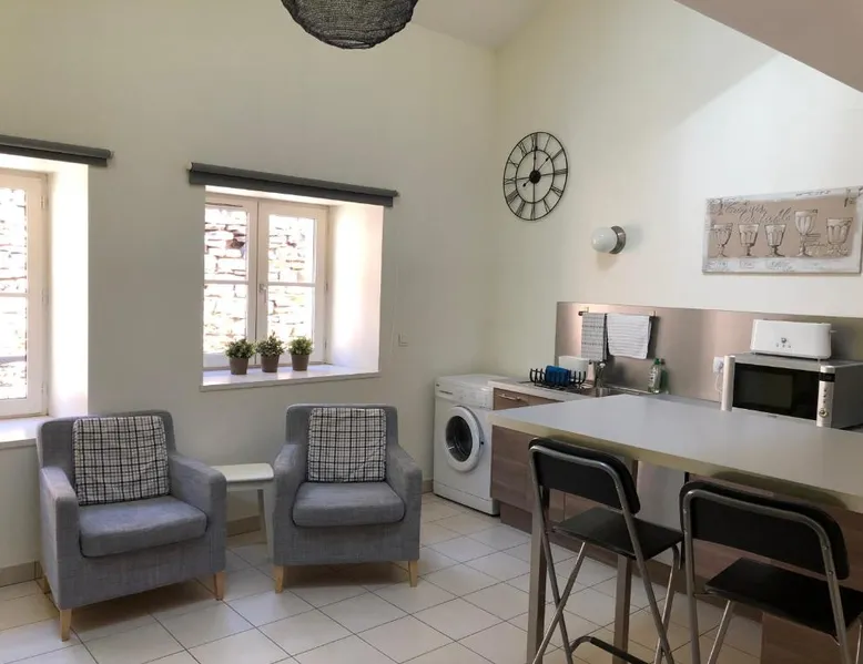 Comfortable Living Space: L' Atelier de la Monnaie in Crémieu offers a 3-star apartment with free WiFi, air-conditioning, and a private bathroom. The kitchen includes a coffee machine, refrigerator, microwave, dishwasher, oven, stovetop, toaster, and electric kettle. Convenient Facilities: Guests can enjoy bicycle parking and paid on-site private parking. Additional amenities include a washing machine, dining area, work desk, and soundproofing. The property features a city view and a quiet street view. Nearby Attractions: Lyon Saint Exupery Airport is 14 mi away. Points of interest include Groupama Stadium (17 mi), LDLC Arena (18 mi), and the Museum of Fine Arts of Lyon (27 mi). The reception staff speak French. Highly rated by guests. Boasting a private entrance, this air-conditioned apartment includes 1 bedroom and 1 bathroom with a shower. In the fully equipped kitchen, guests will find a stovetop, a refrigerator, a dishwasher and kitchenware. The apartment offers a flat-screen TV, a washing machine, soundproof walls, a coffee machine as well as a quiet street view. The unit has 1 bed.