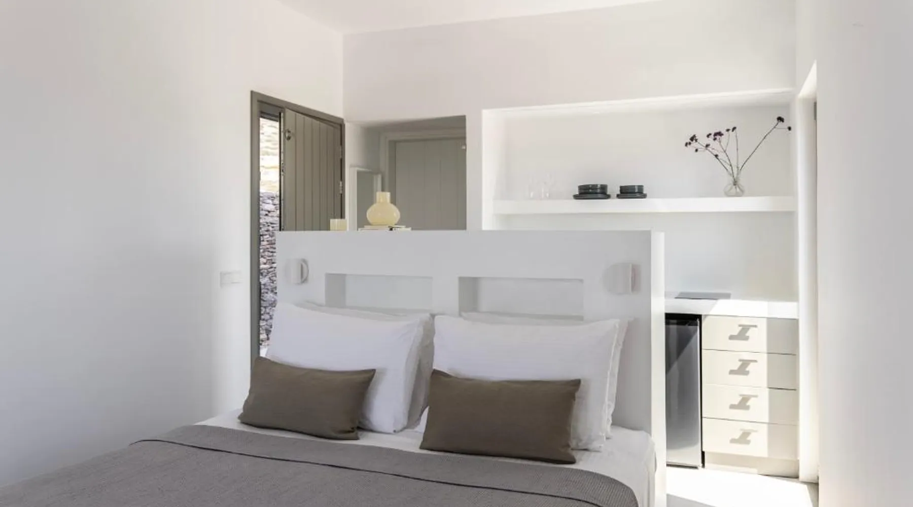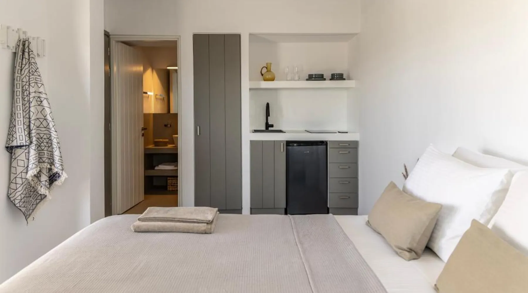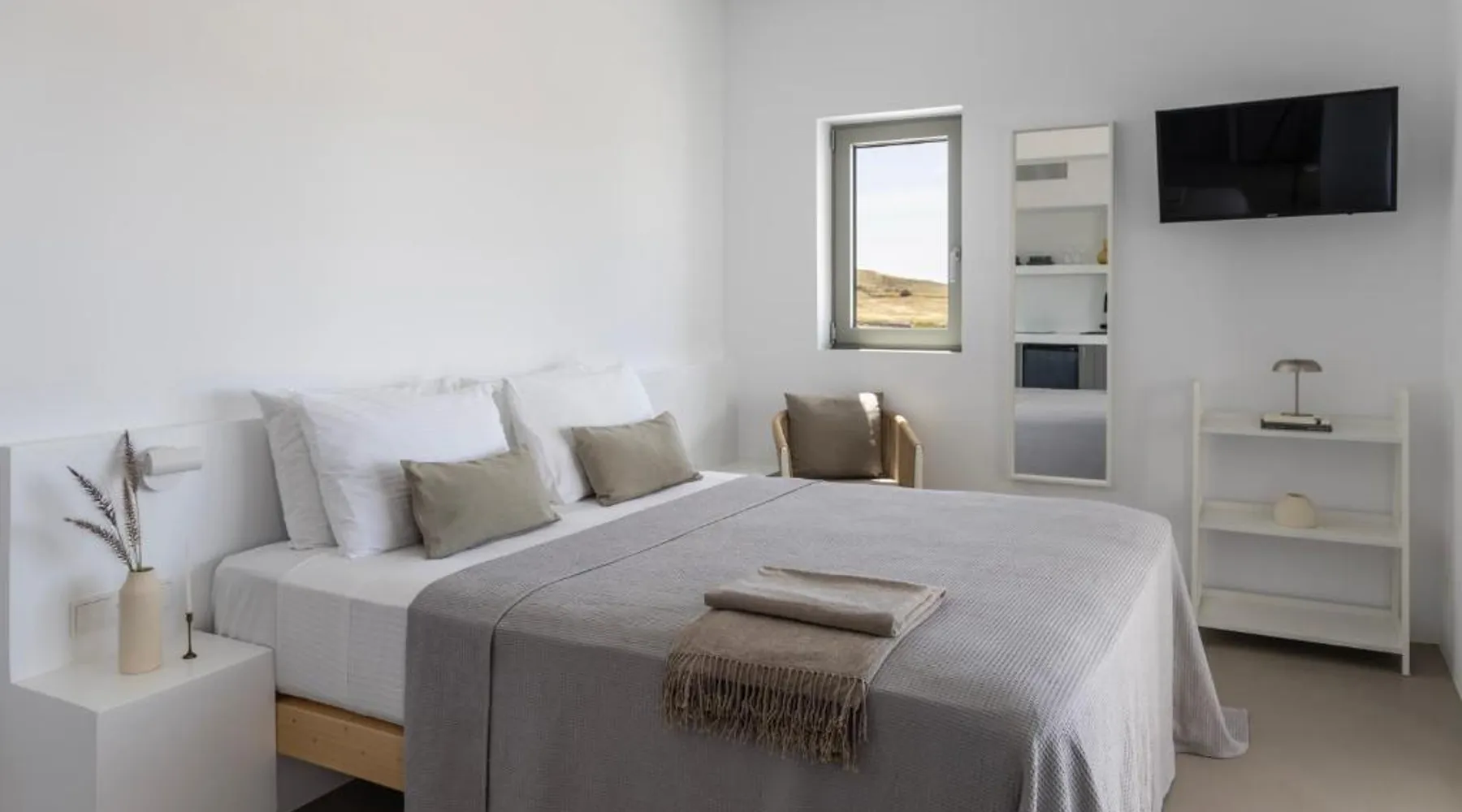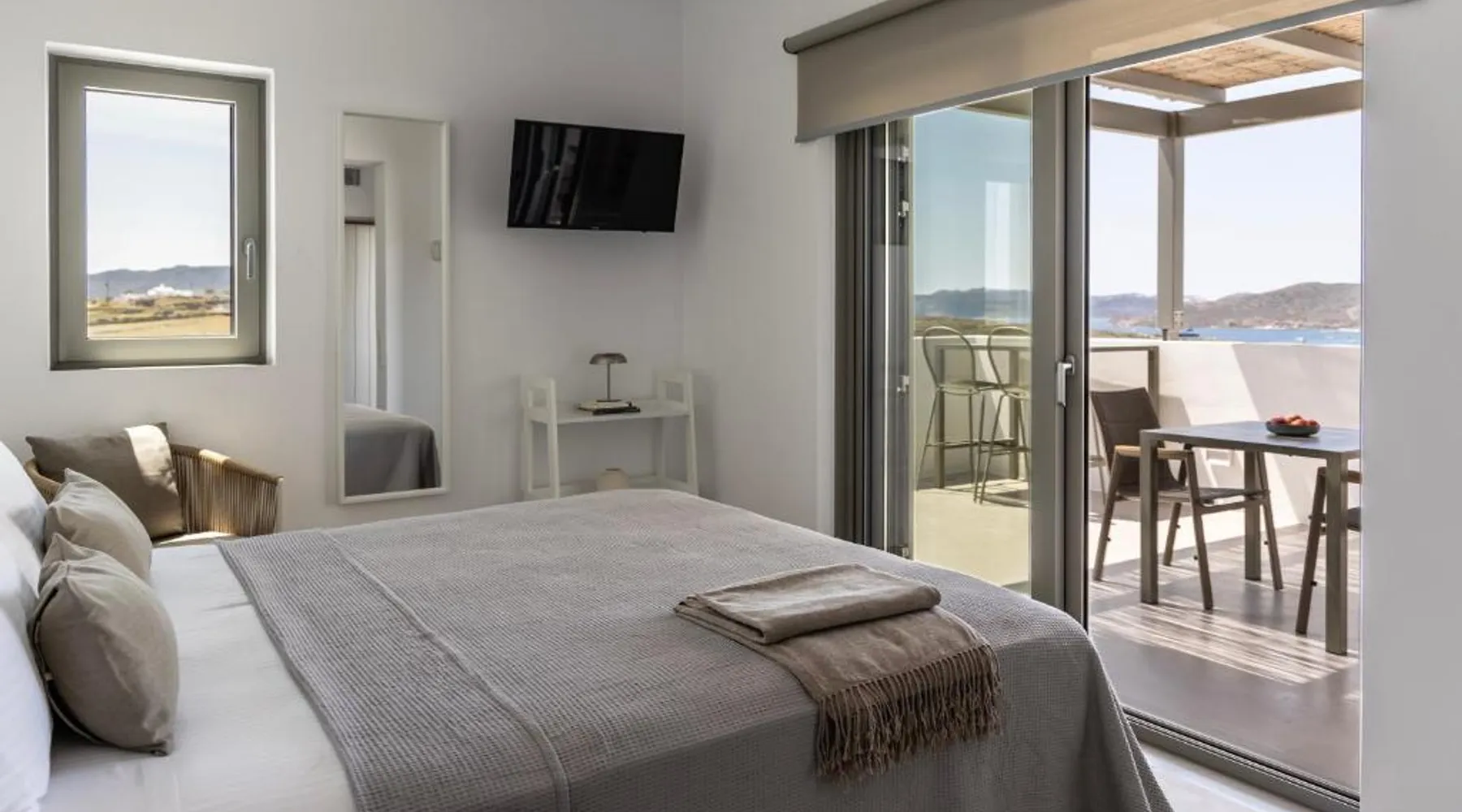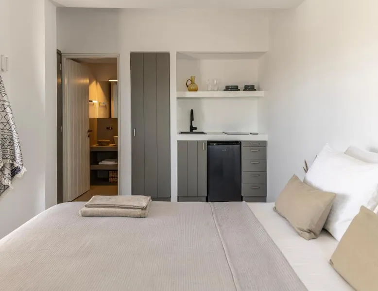 Elegant Accommodations: Korfi de Milo in Adamas offers an aparthotel with a swimming pool boasting stunning views, a sun terrace, and a lush garden. Guests enjoy free WiFi throughout the property. Comfortable Amenities: The aparthotel features private check-in and check-out services, a paid shuttle, daily housekeeping, outdoor seating, picnic areas, bicycle parking, and free on-site private parking. Additional services include breakfast in the room, express check-in and check-out, bike and car hire, tour desk, and luggage storage. Dining Experience: Breakfast includes local specialties, warm dishes, juice, fresh pastries, cheese, and fruits, catering to vegetarian, vegan, and gluten-free diets. Prime Location: Located 1.9 mi from Milos Island National Airport, Korfi de Milo is a 13-minute walk from Papikinou Beach. Nearby attractions include the Catacombs of Milos (4.3 mi) and the Milos Mining Museum (1.4 mi). Featuring a private entrance, this air-conditioned suite consists of a kitchenette, 1 bedroom and 1 bathroom with a shower and a hairdryer. Guests can make meals in the kitchenette that is equipped with a stovetop, a refrigerator, kitchenware and a toaster. The suite provides soundproof walls, a tea and coffee maker, a wardrobe, a flat-screen TV, as well as garden views. The unit offers 1 bed.