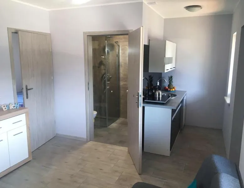 Accommodations Features: Lazurowy Zakątek in Dąbki offers a holiday home with a garden and terrace. The property includes a kitchenette, private bathroom, and garden views. Amenities and Activities: Guests can enjoy an outdoor play area, badminton equipment hire, family rooms, and a children's playground. The property is pet-friendly and provides free on-site private parking. Local Attractions: Bobolin Beach is a 13-minute walk away, while Gdańsk Lech Wałęsa Airport is 103 mi distant. Nearby attractions include Dukes of Pomerania Castle (5.6 mi) and Jaroslawiec Aquapark (18 mi). Guest Highlights: Guests highly rate the children's playground, bike/bicycle, and kitchen facilities. Featuring a private entrance, this holiday home consists of 1 living room, 2 separate bedrooms and 1 bathroom with a shower. The holiday home's kitchenette, which features kitchenware, is available for cooking and storing food. Boasting a terrace with garden views, this holiday home also provides a wardrobe and a flat-screen TV. The unit offers 4 beds.