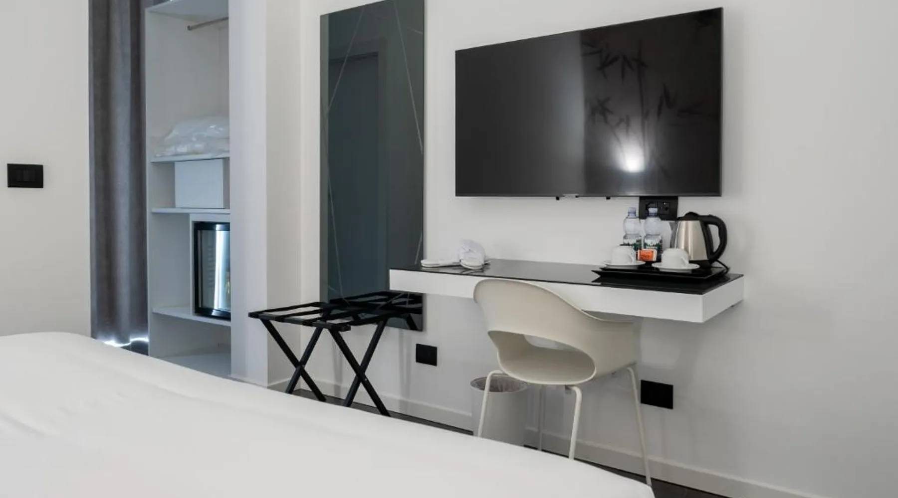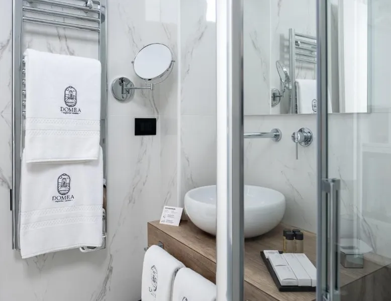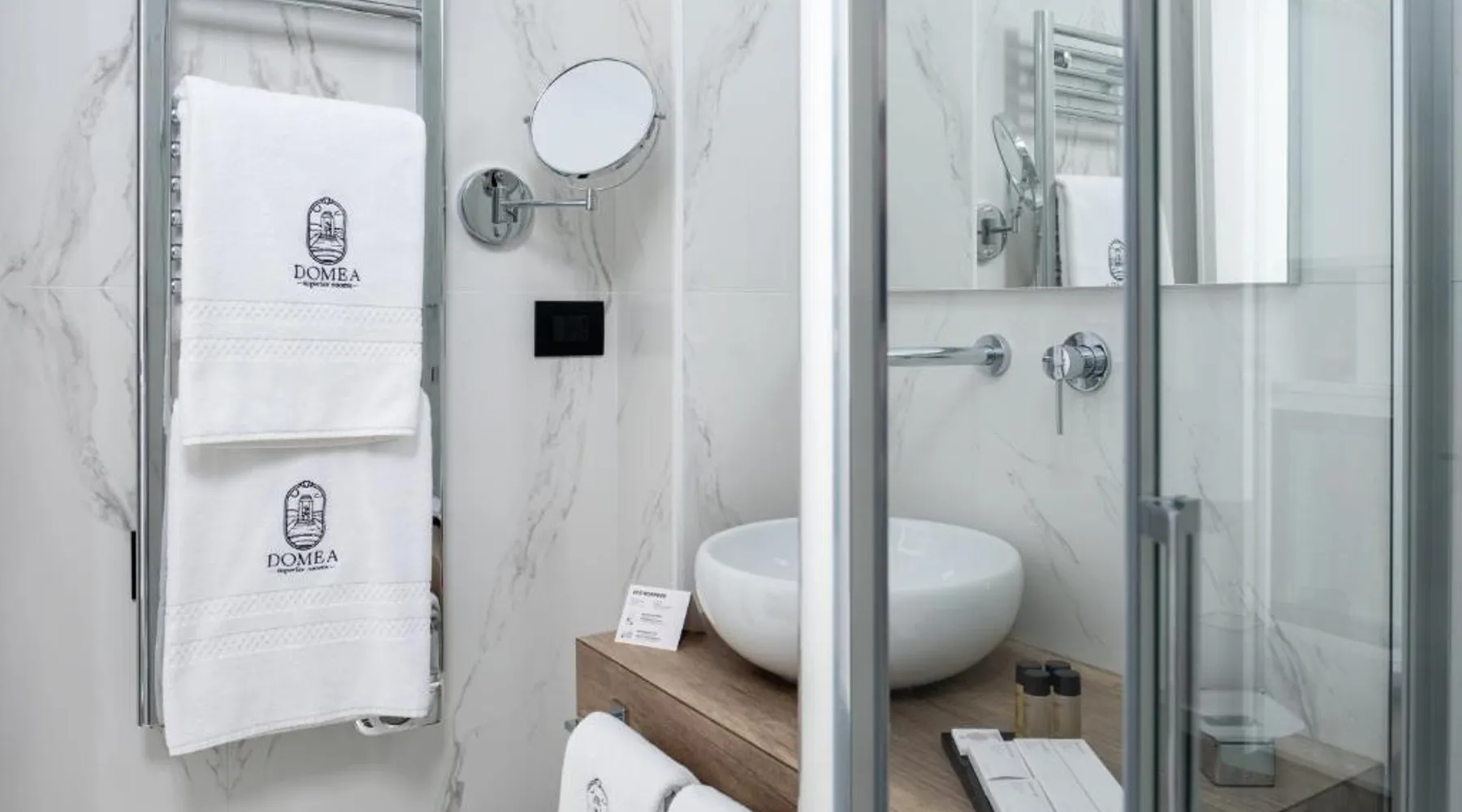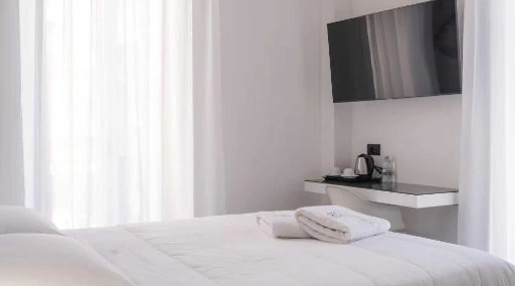 Comfortable Accommodations: Domea Superior Rooms Bed and Breakfast in Reggio Calabria offers recently renovated adults-only rooms with air-conditioning, private bathrooms, and balconies. Each room includes a work desk, free WiFi, and soundproofing for a relaxing stay. Exceptional Facilities: Guests enjoy a terrace, outdoor seating area, and free WiFi. Additional amenities include a lounge, minimarket, hairdresser, and full-day security. Private check-in and check-out, room service, and paid on-site parking enhance convenience. Delicious Breakfast: A continental buffet breakfast with local specialties, fresh pastries, fruits, and juice is served daily. Vegan and gluten-free options are available, ensuring a satisfying start to the day. Prime Location: Located 1.9 mi from Reggio di Calabria Tito Minniti Airport, the property is a short walk from Reggio Calabria Lido and near attractions such as Aragonese Castle and the Archaeological Museum. Highly rated for its attentive host, room cleanliness, and breakfast. The twin/double room provides air conditioning, soundproof walls, a balcony with city views as well as a private bathroom featuring a shower. The unit offers 1 bed.