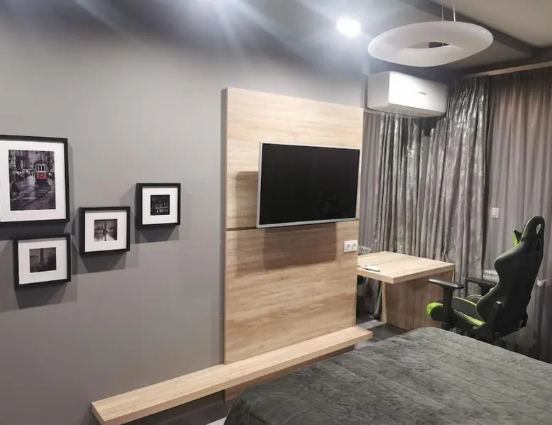 Comfortable Living Space: Апартамент Светли in Vratsa offers a spacious apartment with one bedroom and one bathroom. The terrace provides a relaxing outdoor area, complemented by free WiFi throughout the property. Modern Amenities: The apartment features air-conditioning, a fully equipped kitchen, washing machine, and TV. Guests can enjoy a comfortable stay with all necessary amenities for a pleasant stay. Convenient Location: Located 63 mi from Sofia Airport, the apartment is 9.3 mi from Ledenika Cave and 27 mi from Seven Altars Monastery. Reception staff speak Bulgarian and English, ensuring smooth communication. The apartment's kitchen is available for cooking and storing food. Boasting a terrace, this apartment also offers air conditioning, a washing machine and a flat-screen TV. The unit has 1 bed.
