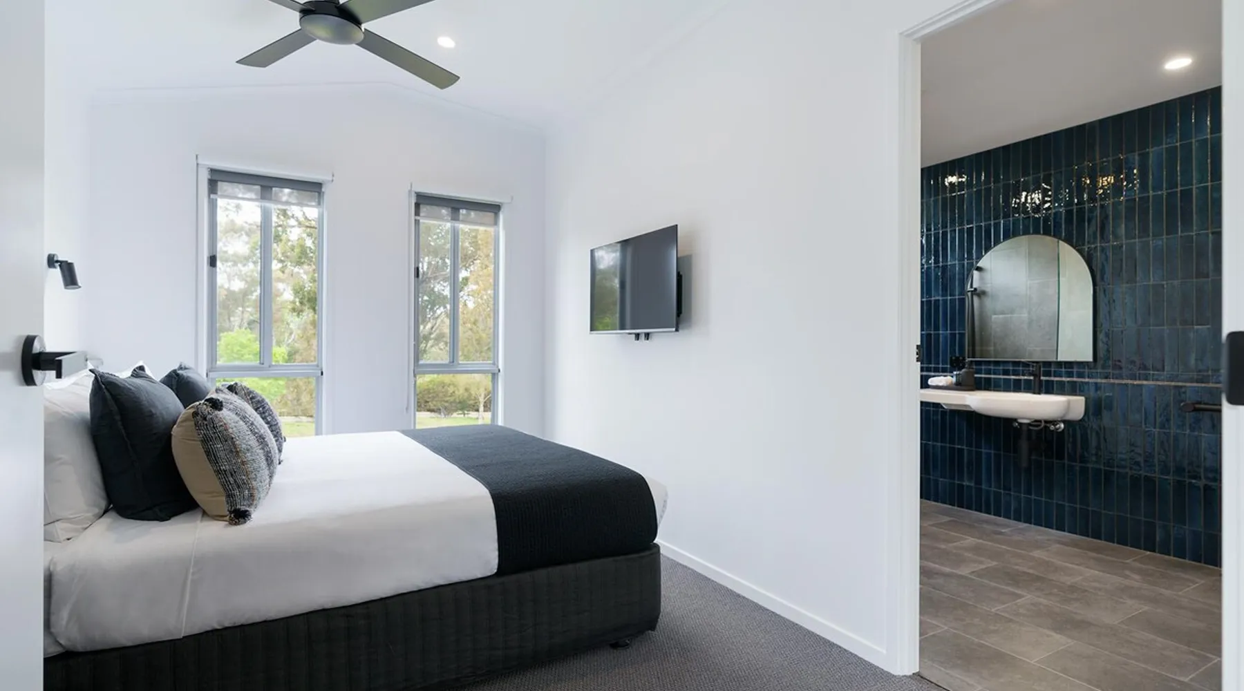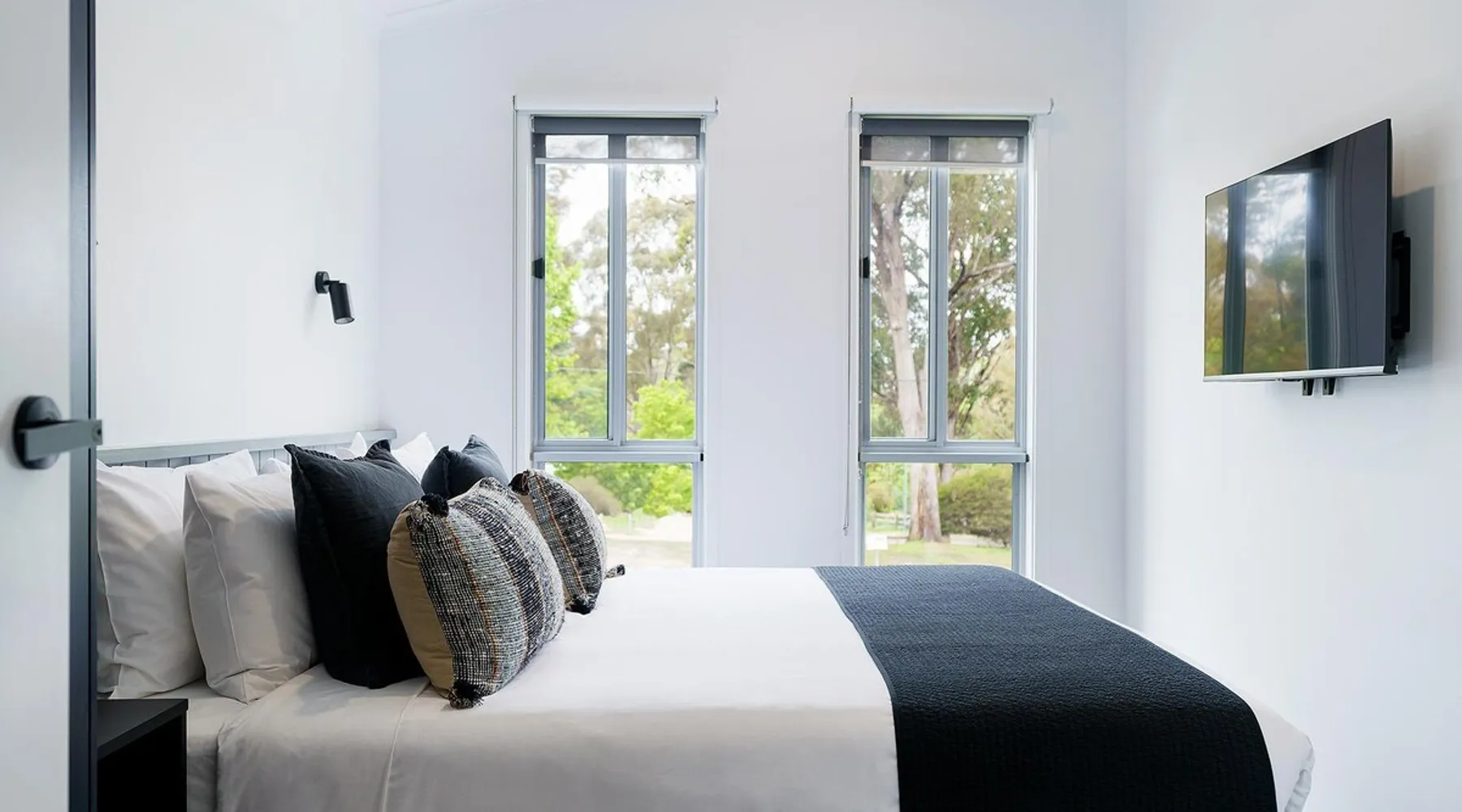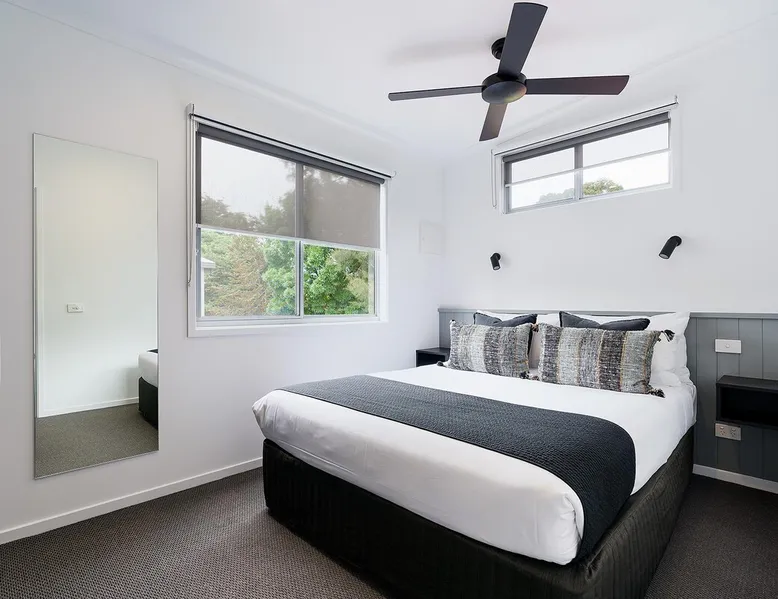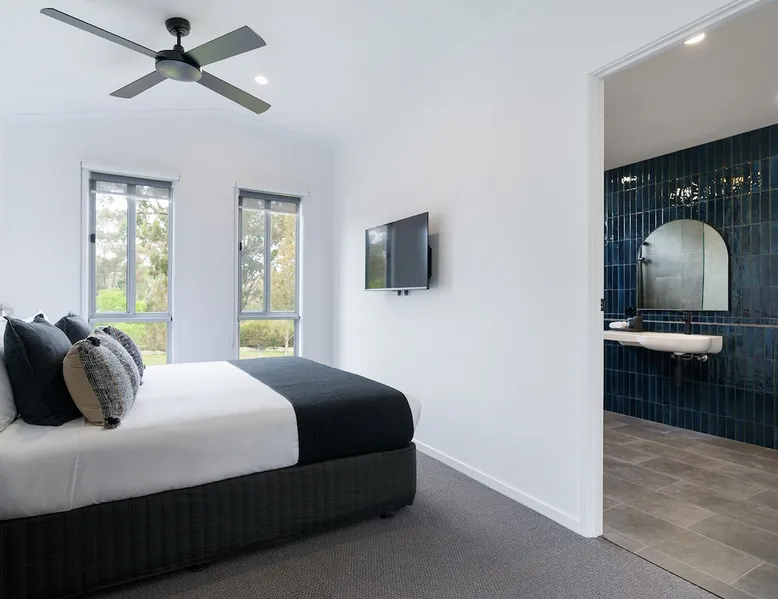 A luxury accessible villa is now available at the peaceful BIG4 Castlemaine Gardens Holiday Park, just 90 minutes from Melbourne. The three-bedroom self-contained villa features an over-size master bedroom suite with extra wide entry for easy wheelchair or mobility aid access, a king-size bed and a huge bathroom with a walk-in or roll-in shower. There is level access from the parking bay to the doors of the villa and space within the living areas to comfortably manoeuvre mobility aids.