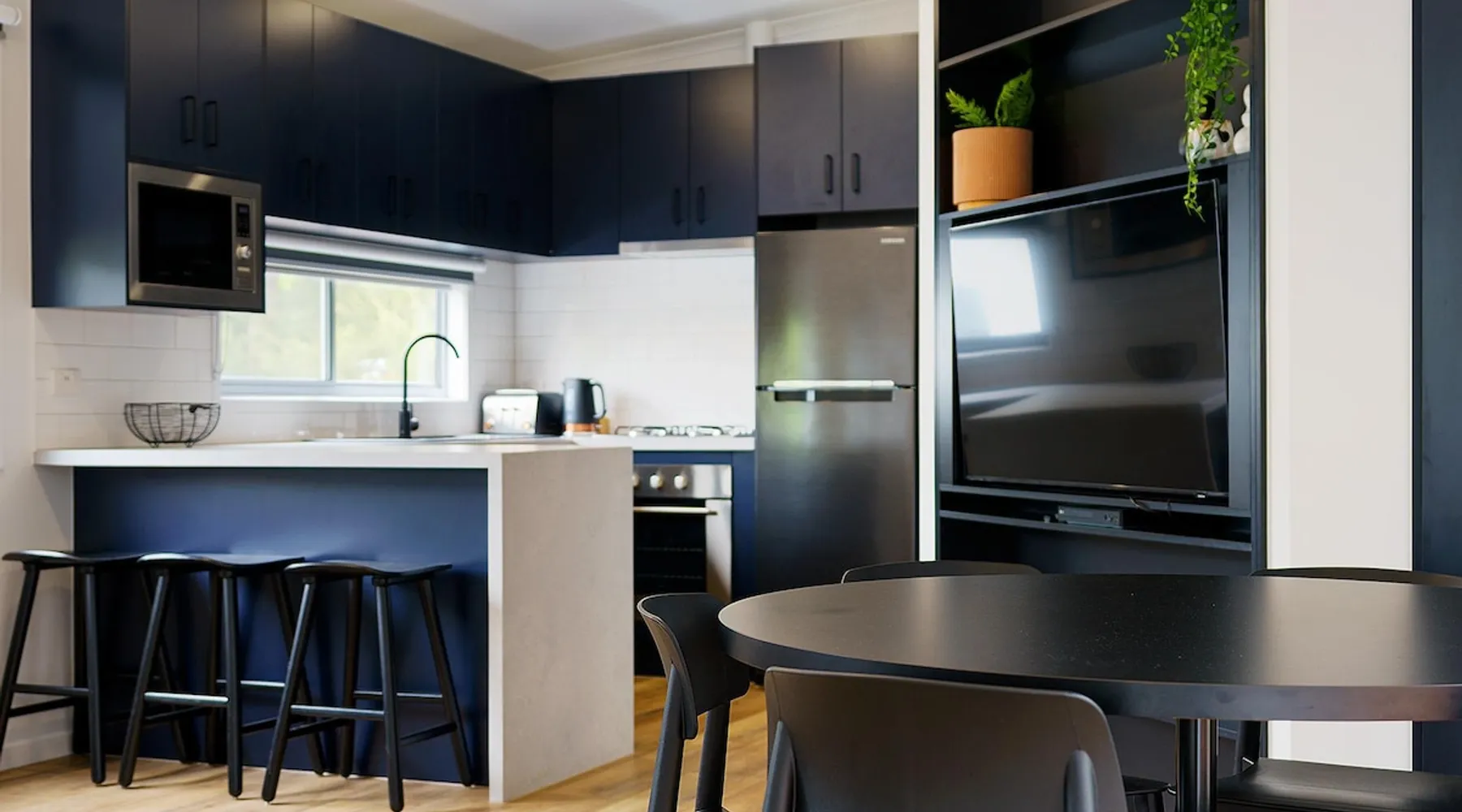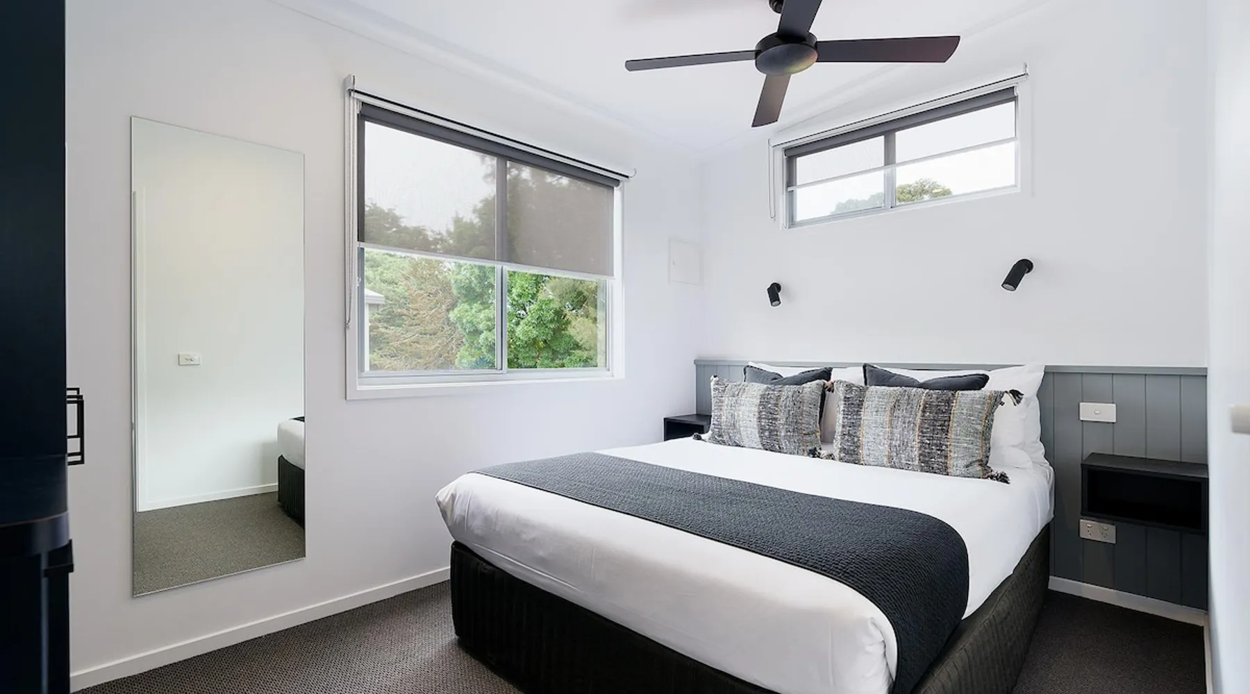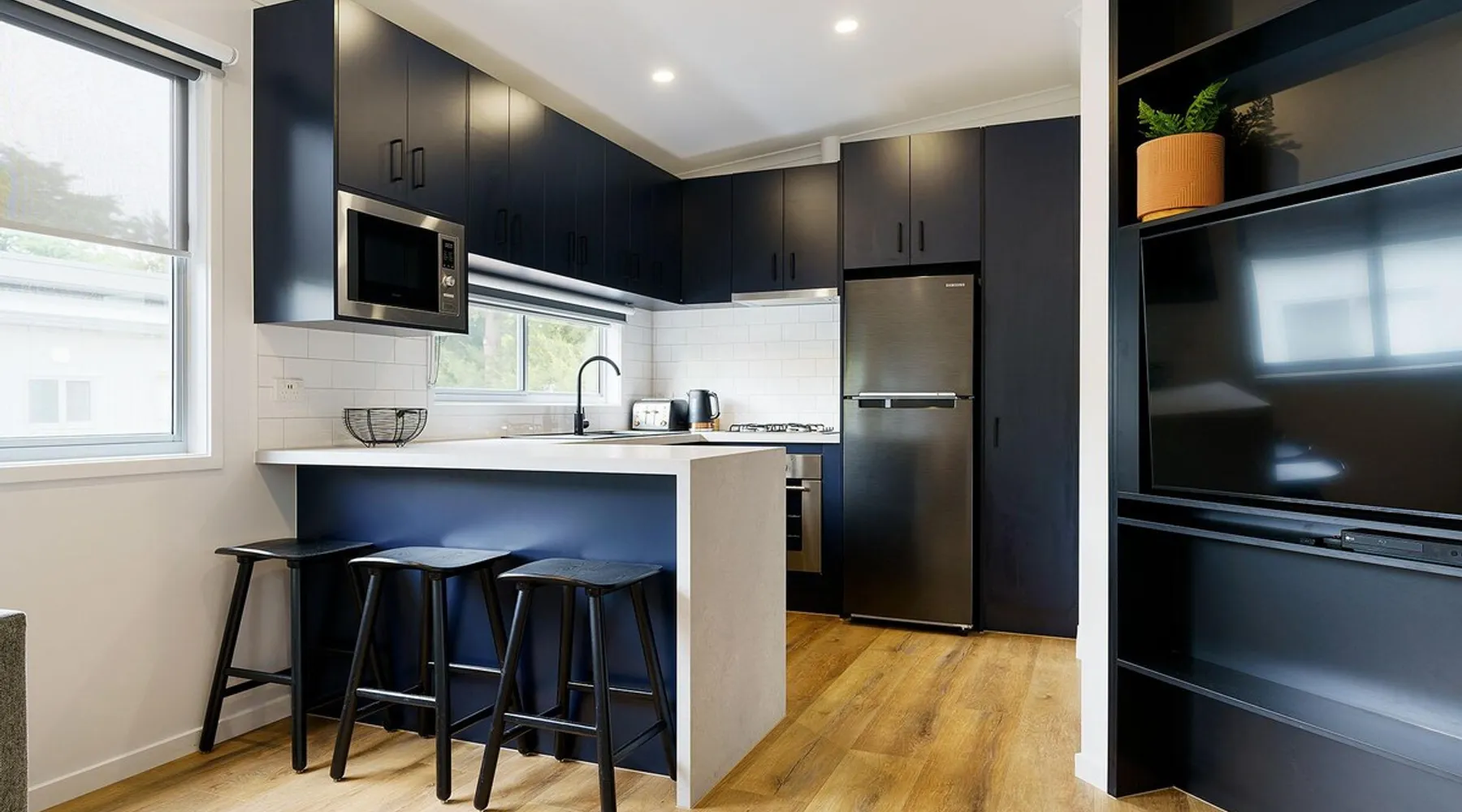 A luxury accessible villa is now available at the peaceful BIG4 Castlemaine Gardens Holiday Park, just 90 minutes from Melbourne. The three-bedroom self-contained villa features an over-size master bedroom suite with extra wide entry for easy wheelchair or mobility aid access, a king-size bed and a huge bathroom with a walk-in or roll-in shower. There is level access from the parking bay to the doors of the villa and space within the living areas to comfortably manoeuvre mobility aids.