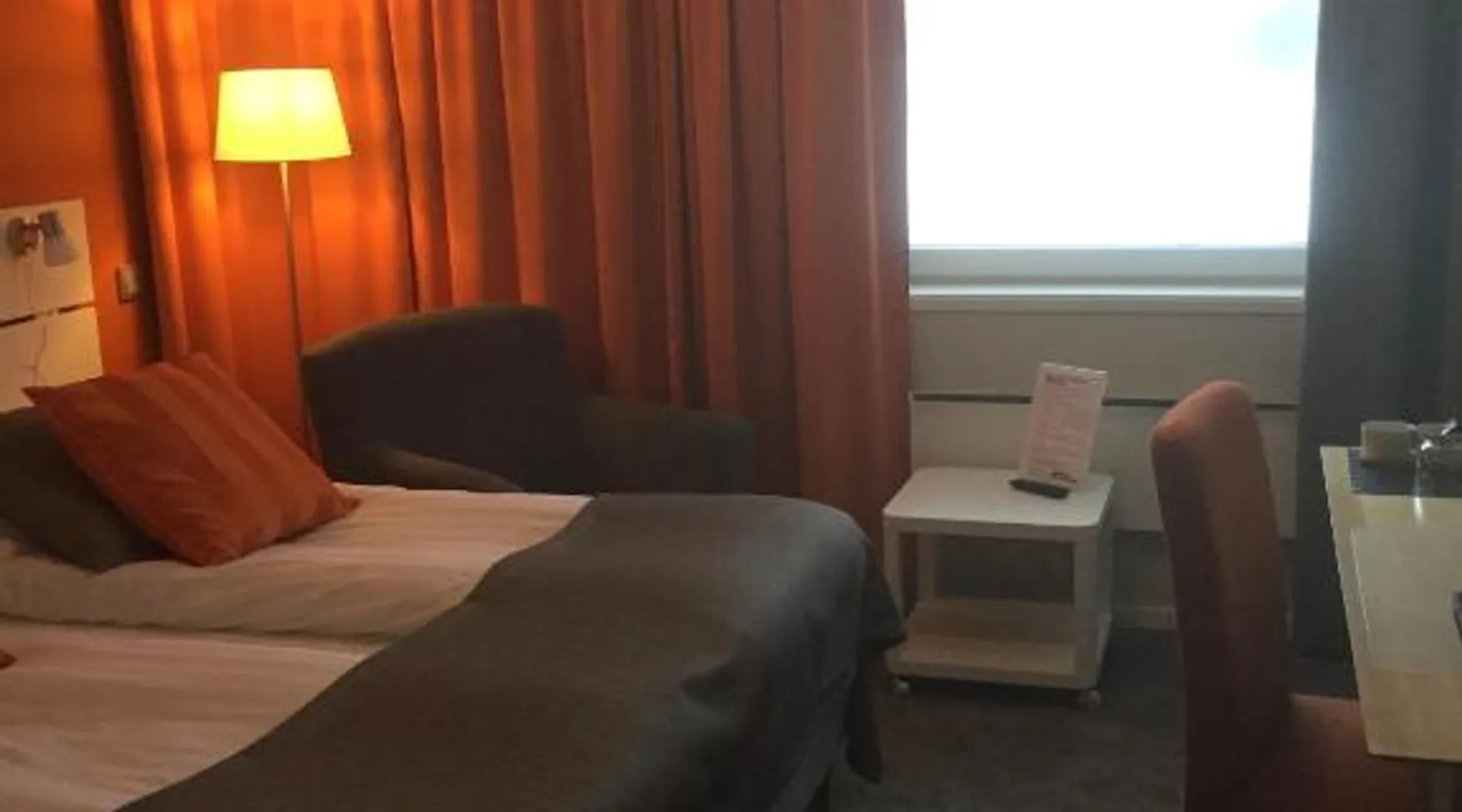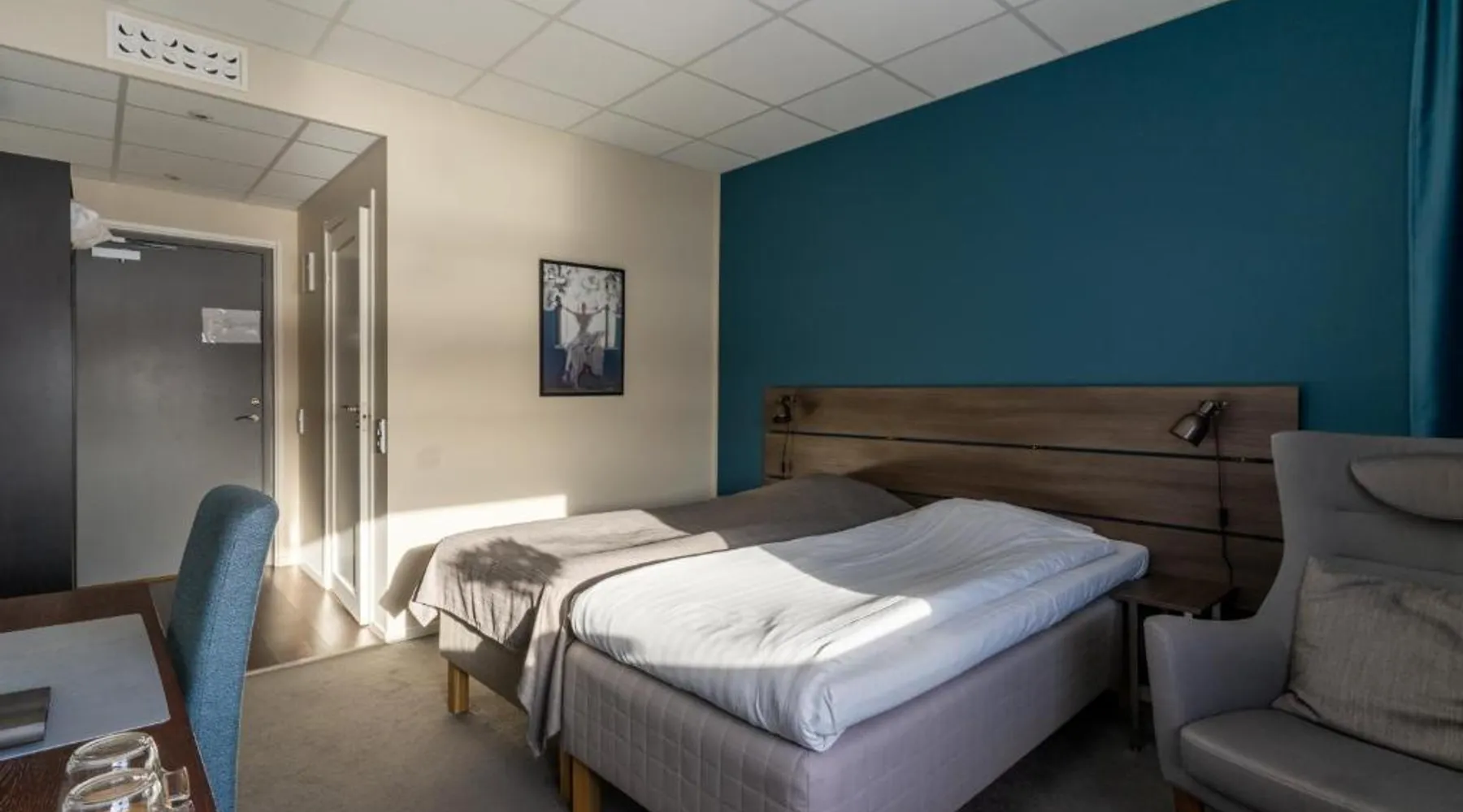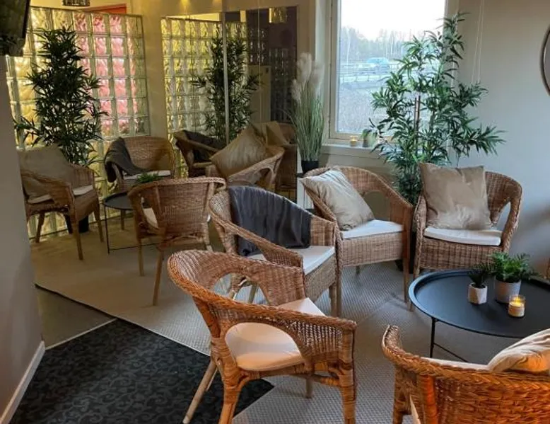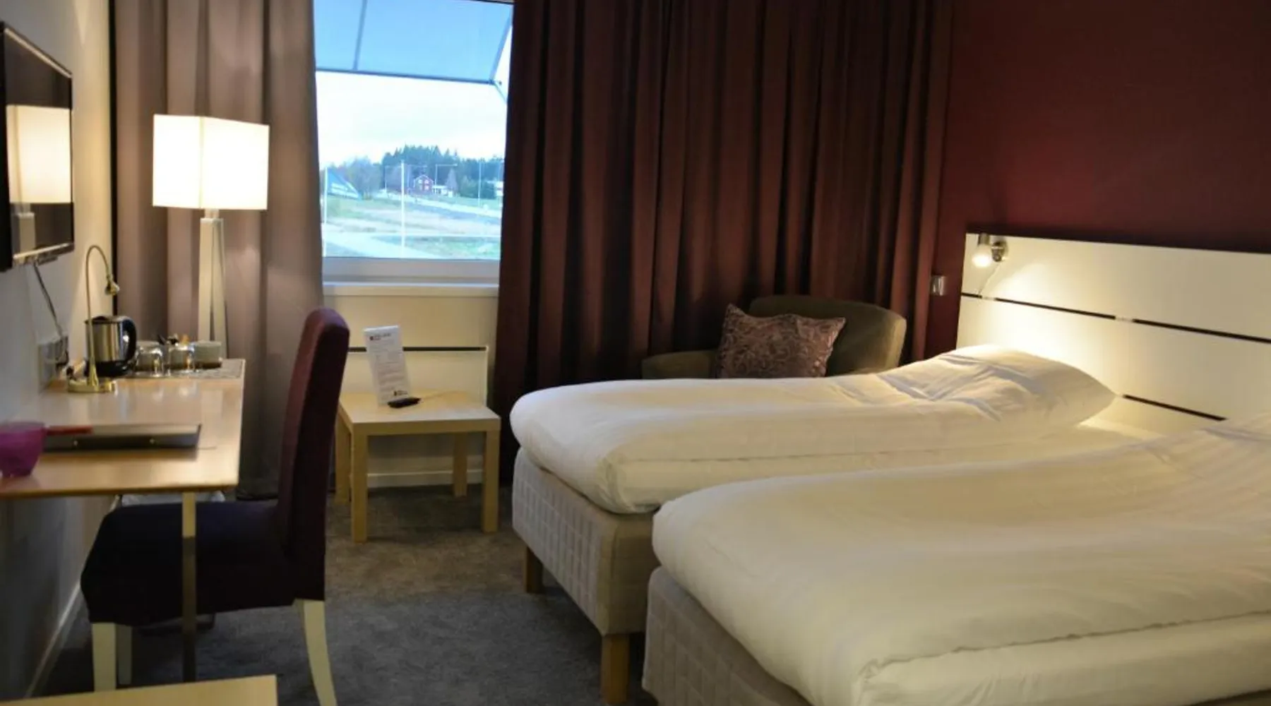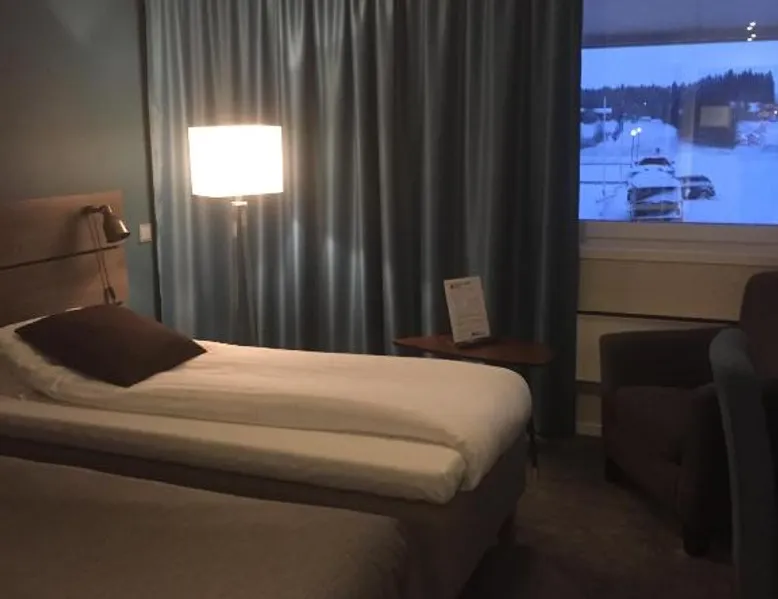 Comfortable Accommodations: Hotell Entré Norr in Umeå offers family rooms with air-conditioning, private bathrooms, and modern amenities. Each room includes a work desk, TV, and soundproofing for a pleasant stay. Exceptional Facilities: Guests can enjoy a sauna, sun terrace, and lush garden. The hotel features a fitness room, indoor and outdoor play areas, and a games room. Free WiFi is available throughout the property. Dining Experience: The family-friendly restaurant serves European cuisine with vegetarian, vegan, gluten-free, and dairy-free options. Breakfast is provided as a buffet, and lunch and dinner are available in a traditional ambiance. Convenient Location: Located 6.8 mi from Umeå Airport, the hotel is near attractions such as Umeå University (4.3 mi) and Norrlands Opera House (5 mi). Winter sports and fishing are available in the surrounding area. The spacious double room features a private bathroom, air conditioning, soundproof walls, as well as a seating area with a flat-screen TV. The double room offers a tea and coffee maker, a sofa, a carpeted floor, heating, as well as a TV. The unit offers 2 beds.